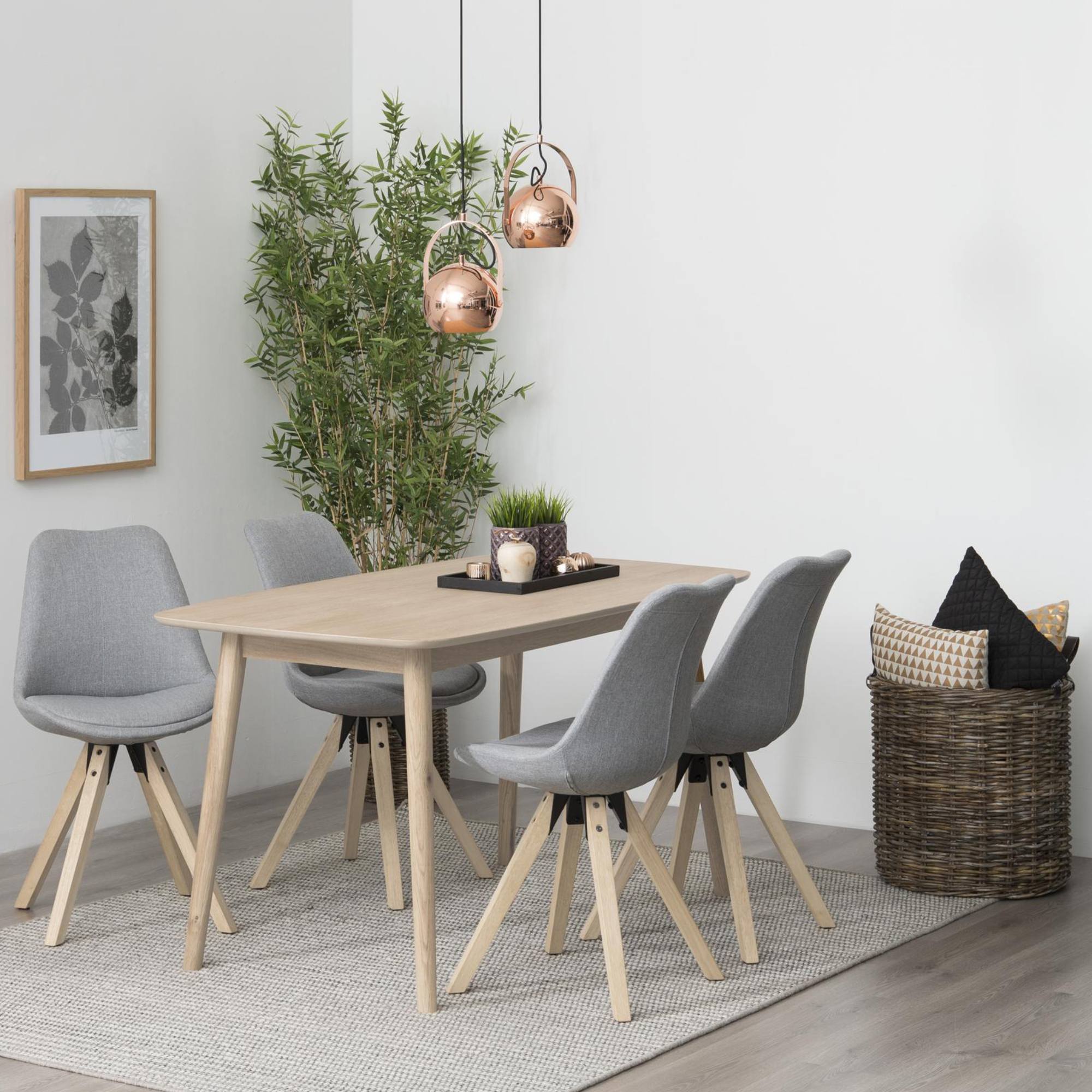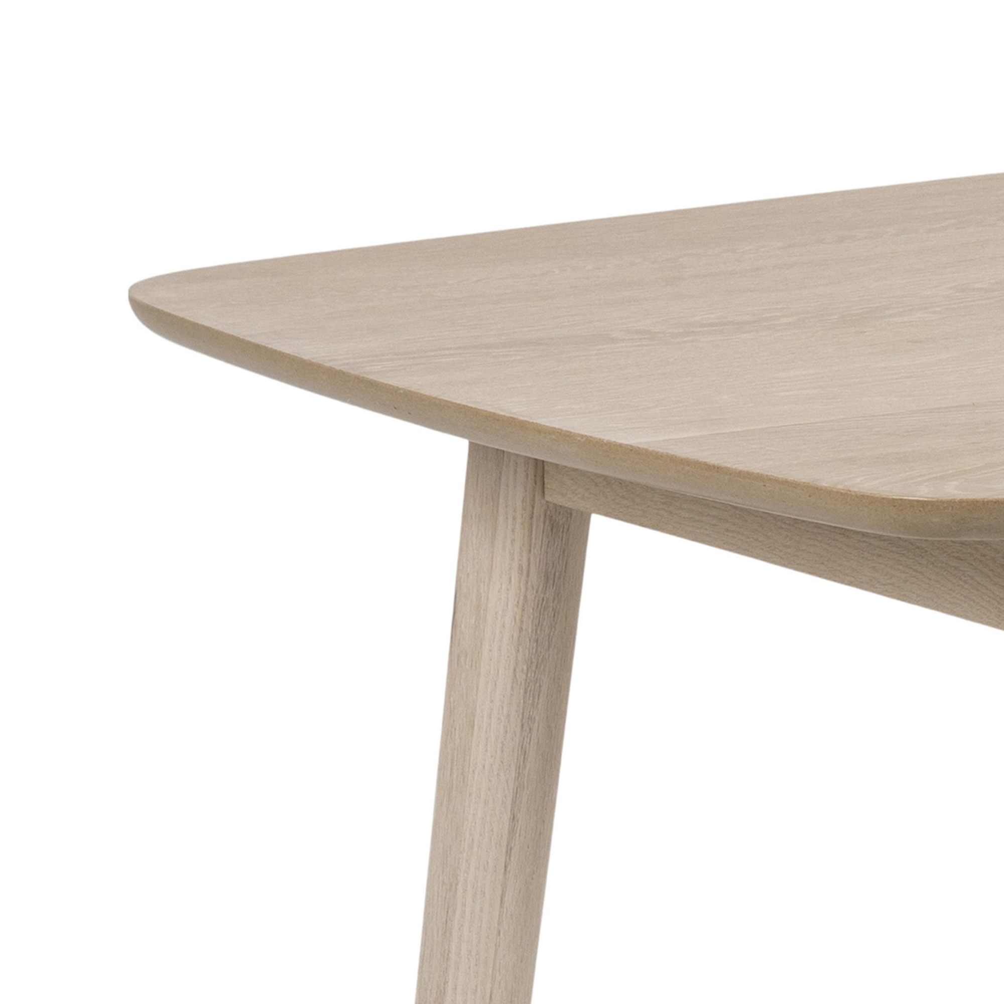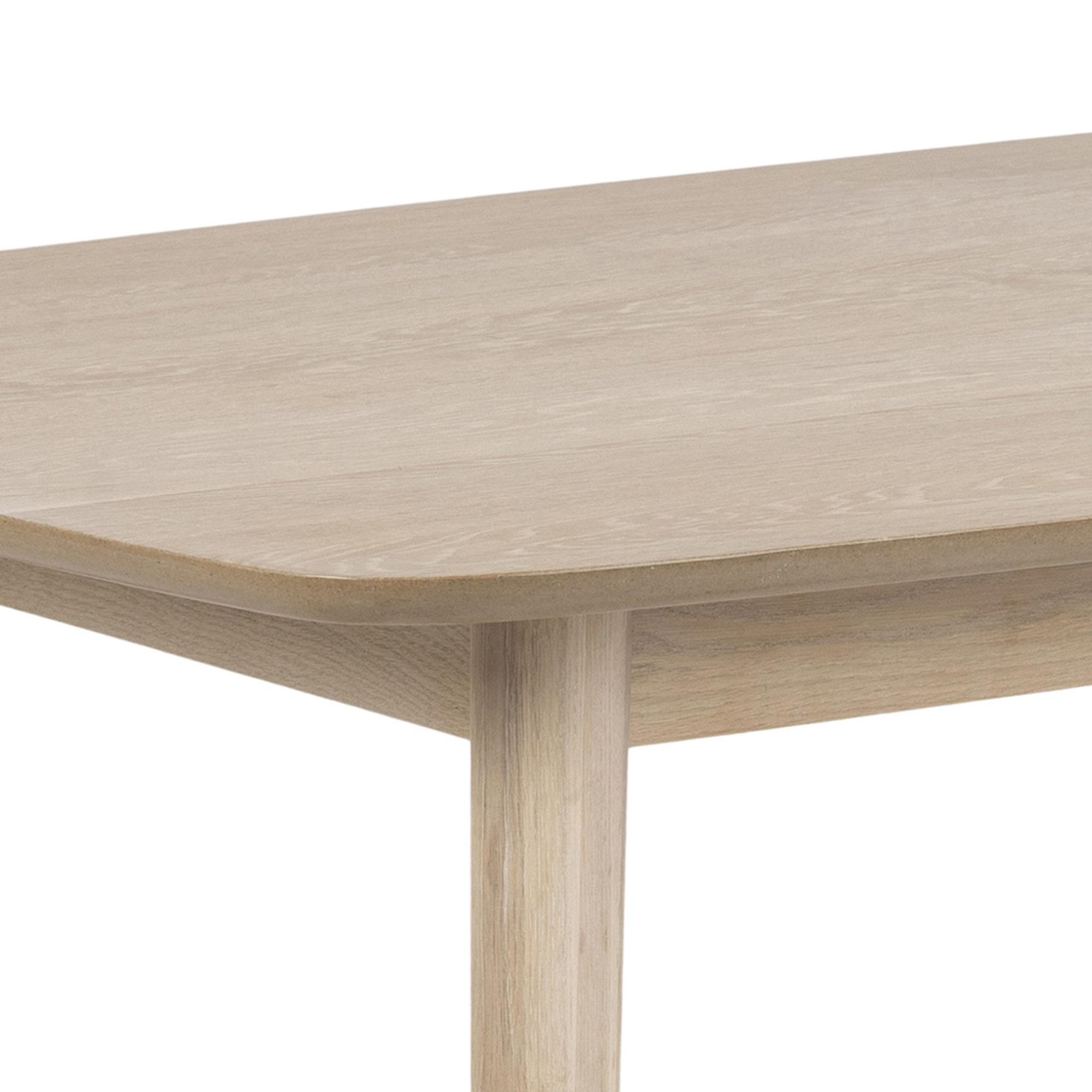 Nohy, ktoré stolu zaisťujú stabilitu, sú vyrobené z masívneho dubového dreva. Horná doska z drevovláknitého materiálu MDF má zaoblené hrany, vďaka čomu stôl pôsobí jemnejšie a elegantnejšie.