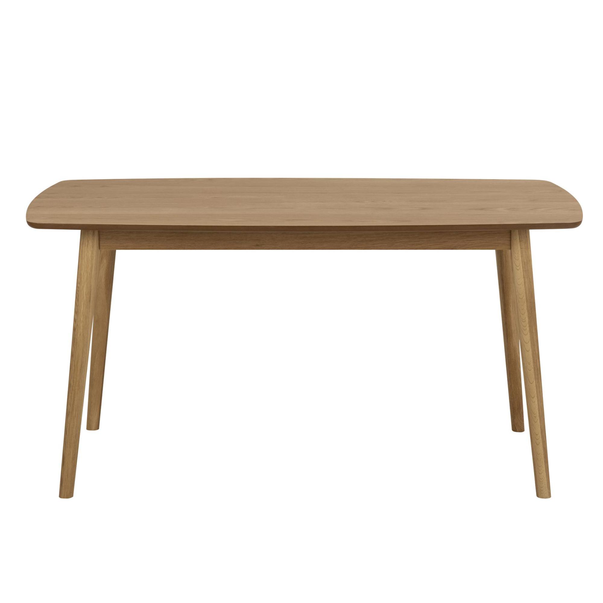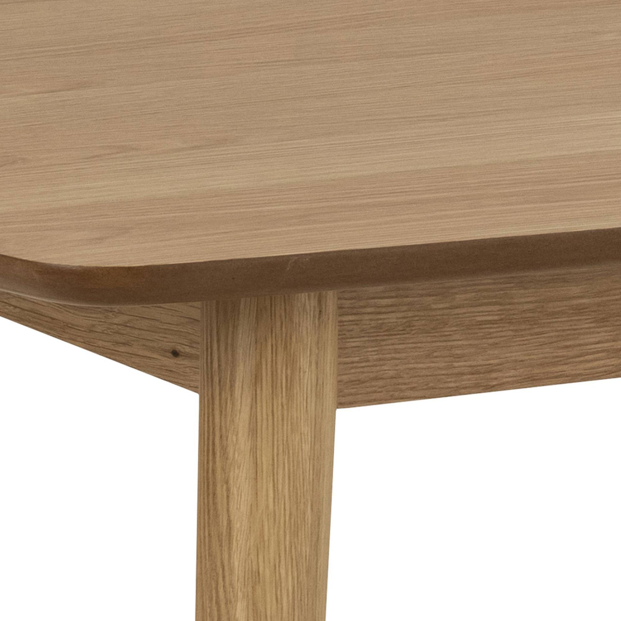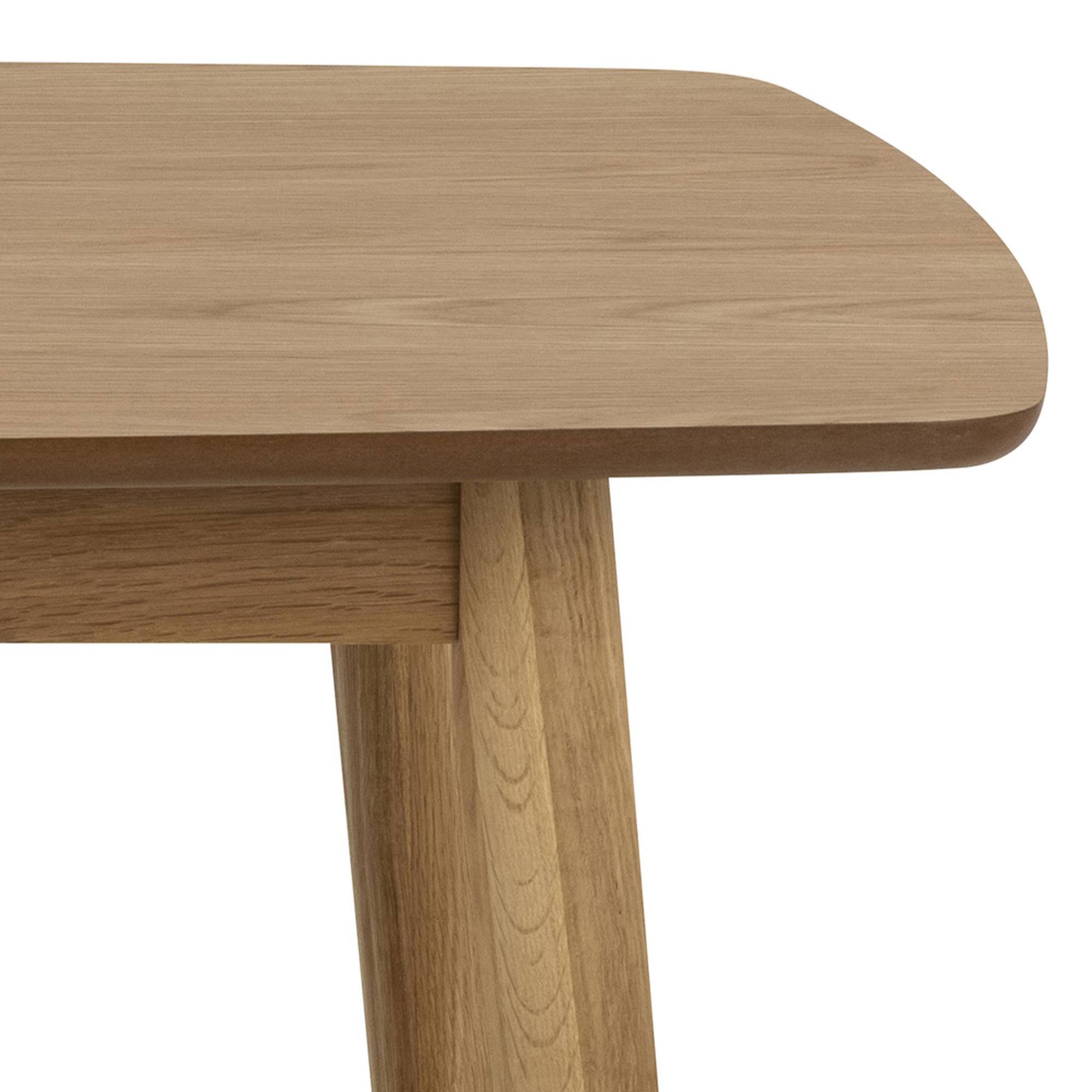 Nohy, ktoré stolu zaisťujú stabilitu, sú vyrobené z masívneho dubového dreva. Horná doska z drevovláknitého materiálu MDF má zaoblené hrany, vďaka čomu stôl pôsobí jemnejšie a elegantnejšie.