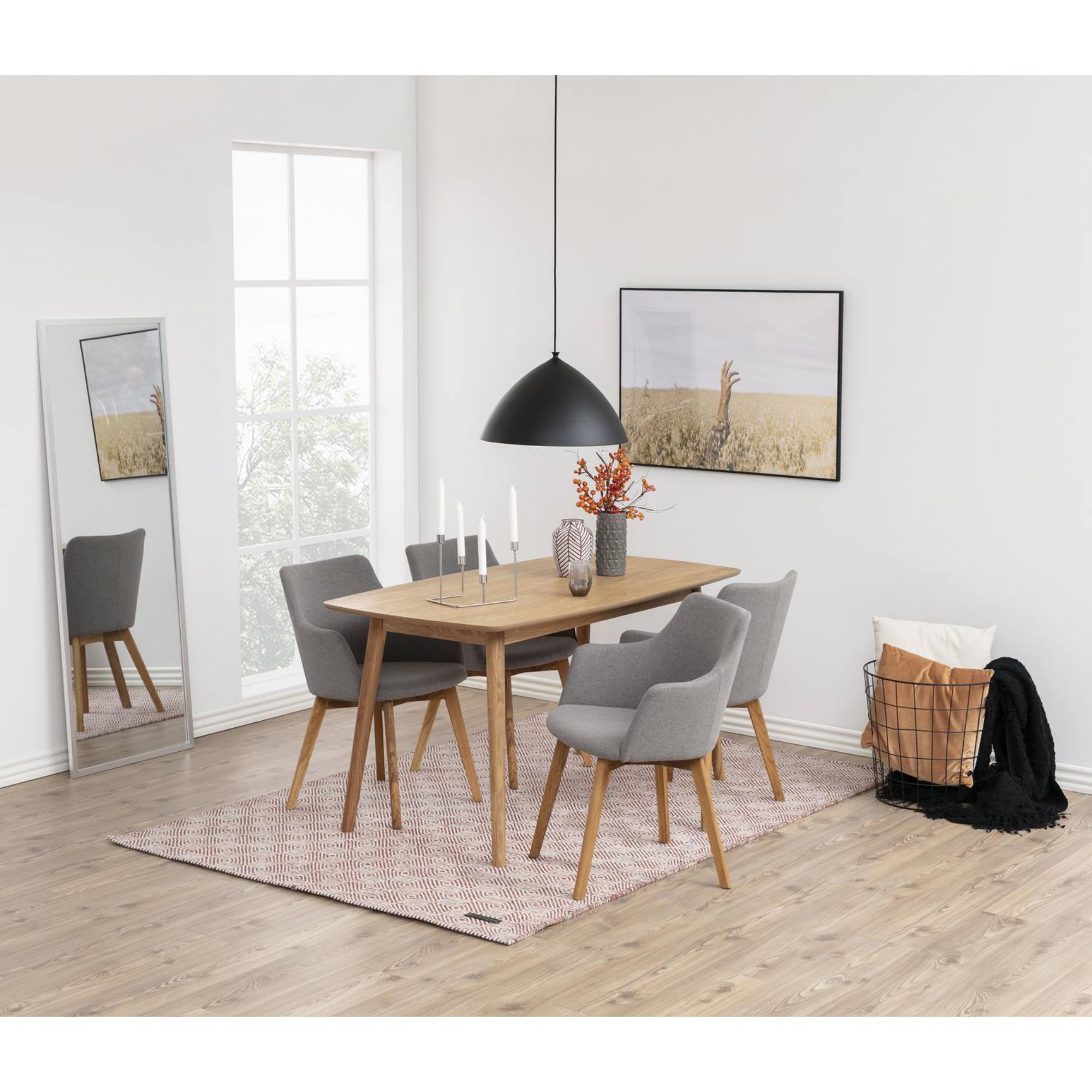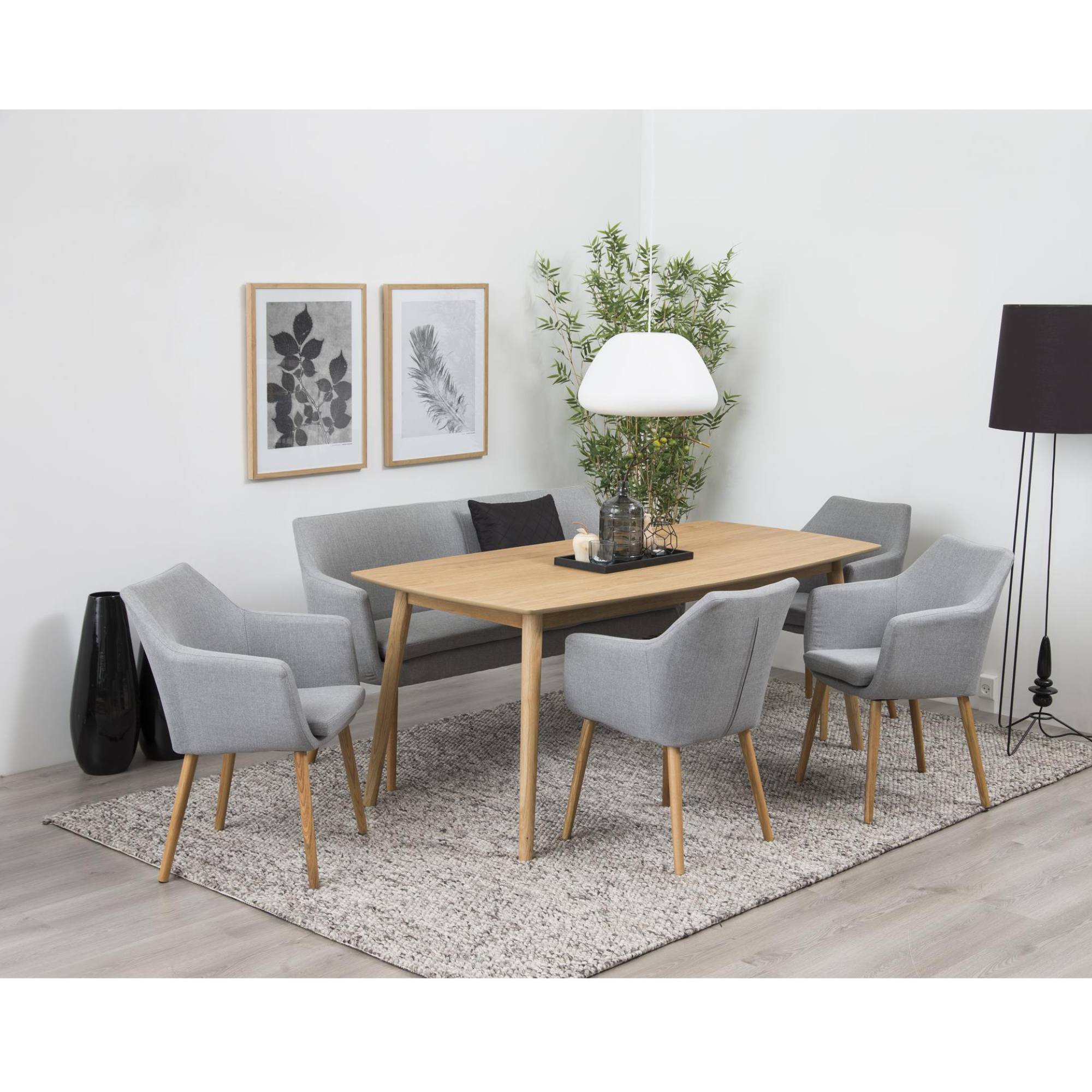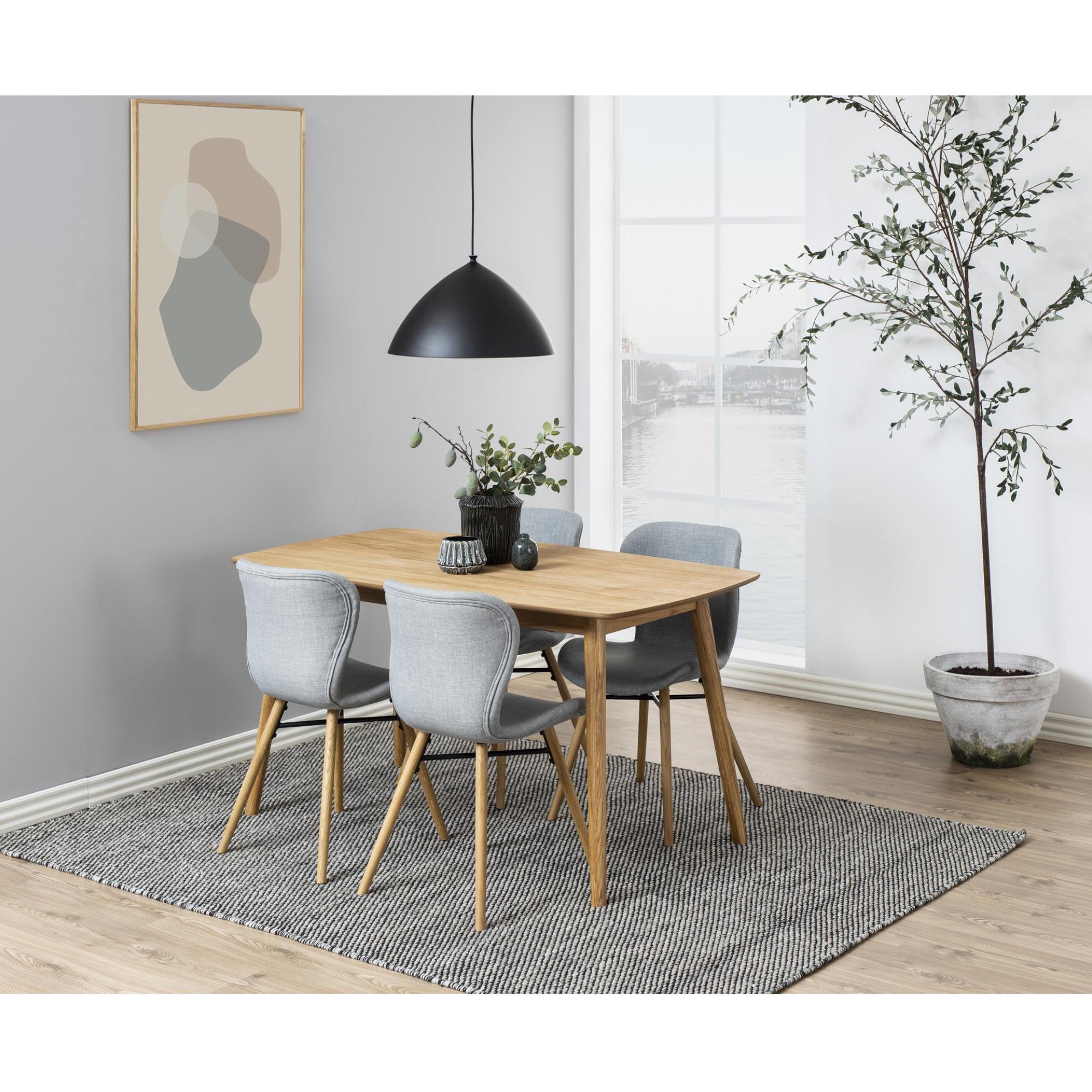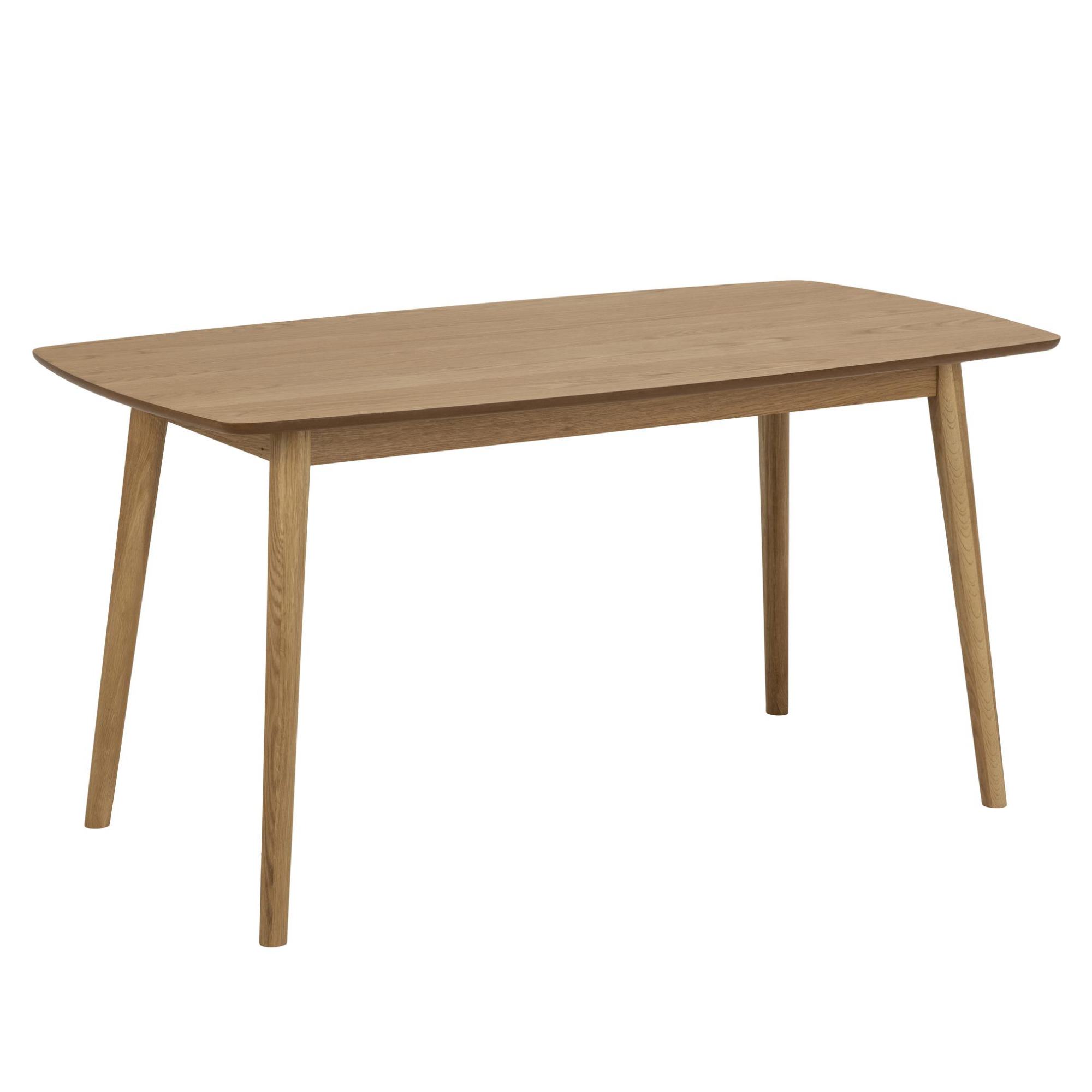 Nohy, ktoré stolu zaisťujú stabilitu, sú vyrobené z masívneho dubového dreva. Horná doska z drevovláknitého materiálu MDF má zaoblené hrany, vďaka čomu stôl pôsobí jemnejšie a elegantnejšie.