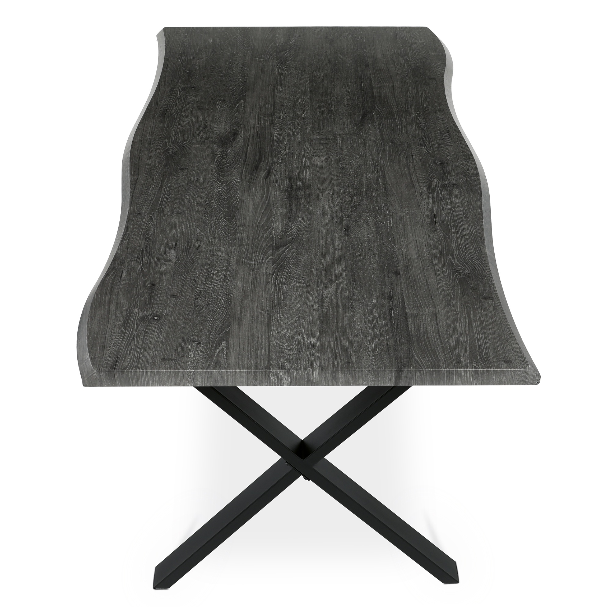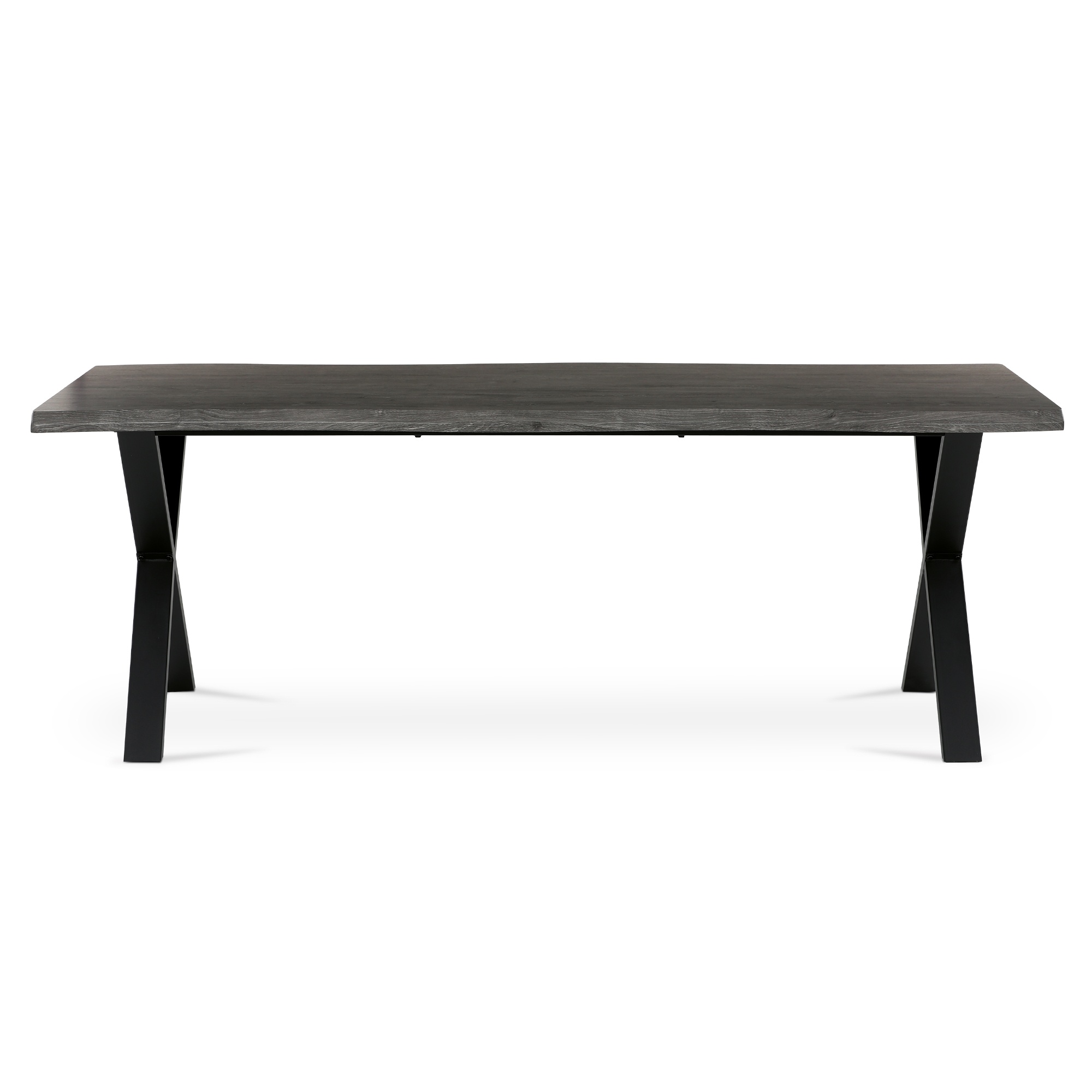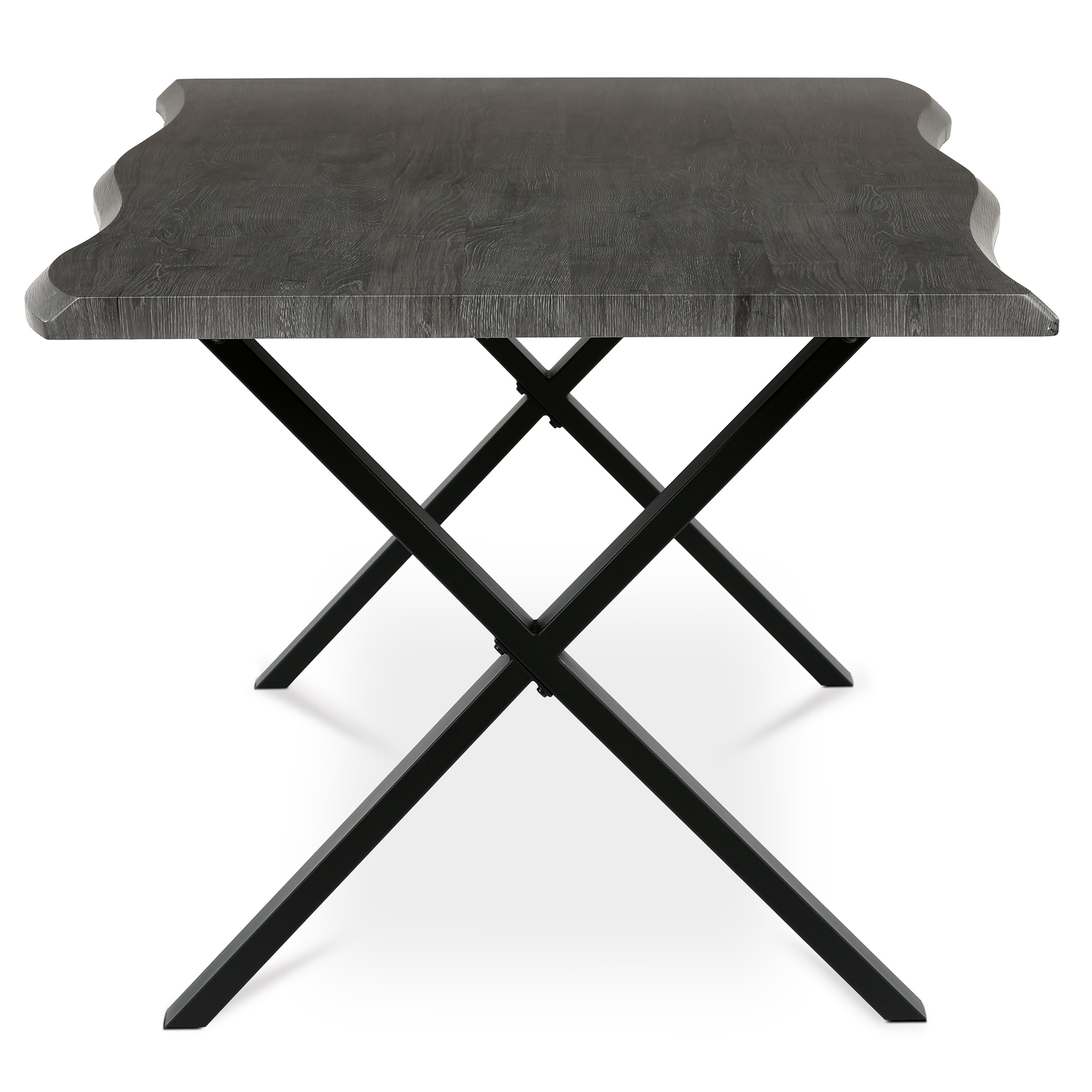 Stabilné prekrížené nohy tohto stola sú vyrobené z kovu. Priestranná horná doska je z drevovláknitej dosky MDF.