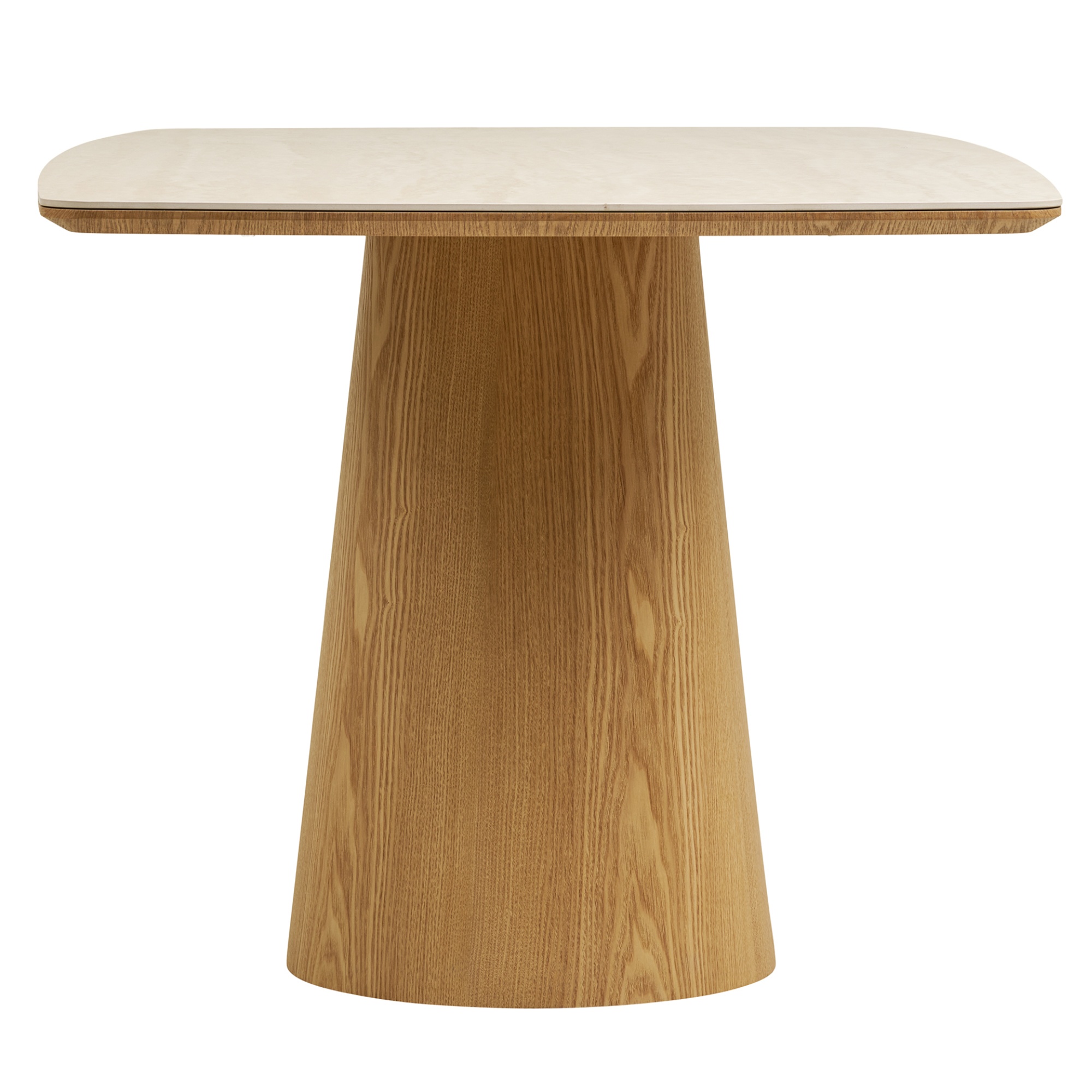 Stôl stojí na pevnej a stabilnej stredovej nohe, ktorá je vyrobená z drevovláknitej dosky MDF. Horná doska je vyrobená z kombinácie jaseňovej dyhy a keramiky. Na týchto materiáloch oceníte nielen nenáročnú udržovateľnosť, ale v prípade správnej starostlivosti aj dlhú životnosť.