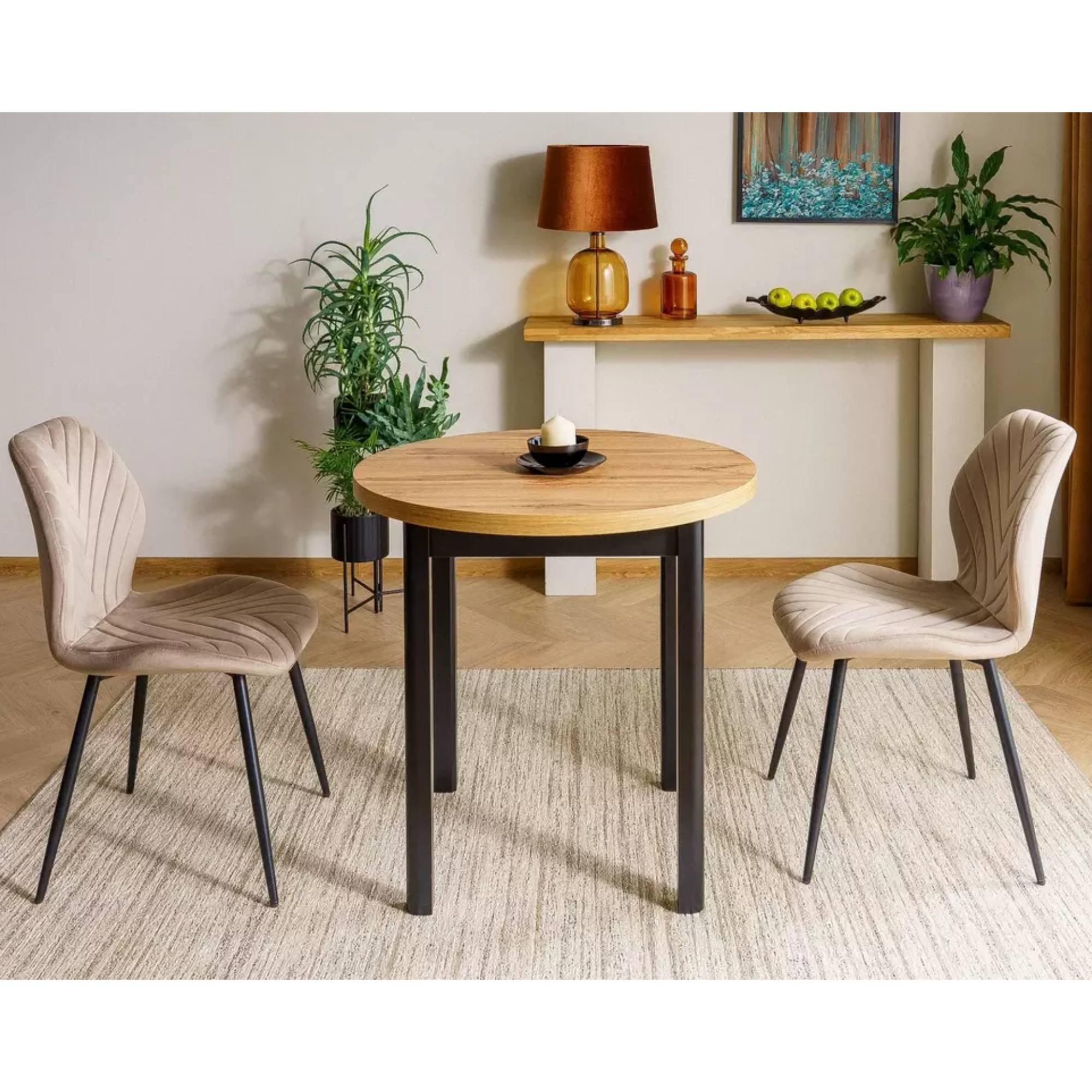 - Tvar stola: Okrúhly