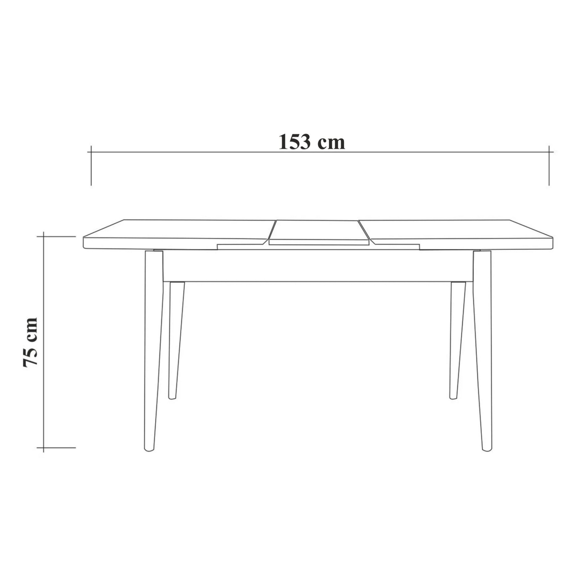 | Nastaviteľná šírka dosky stola v rozmedzí (cm): | 120 - 153 |