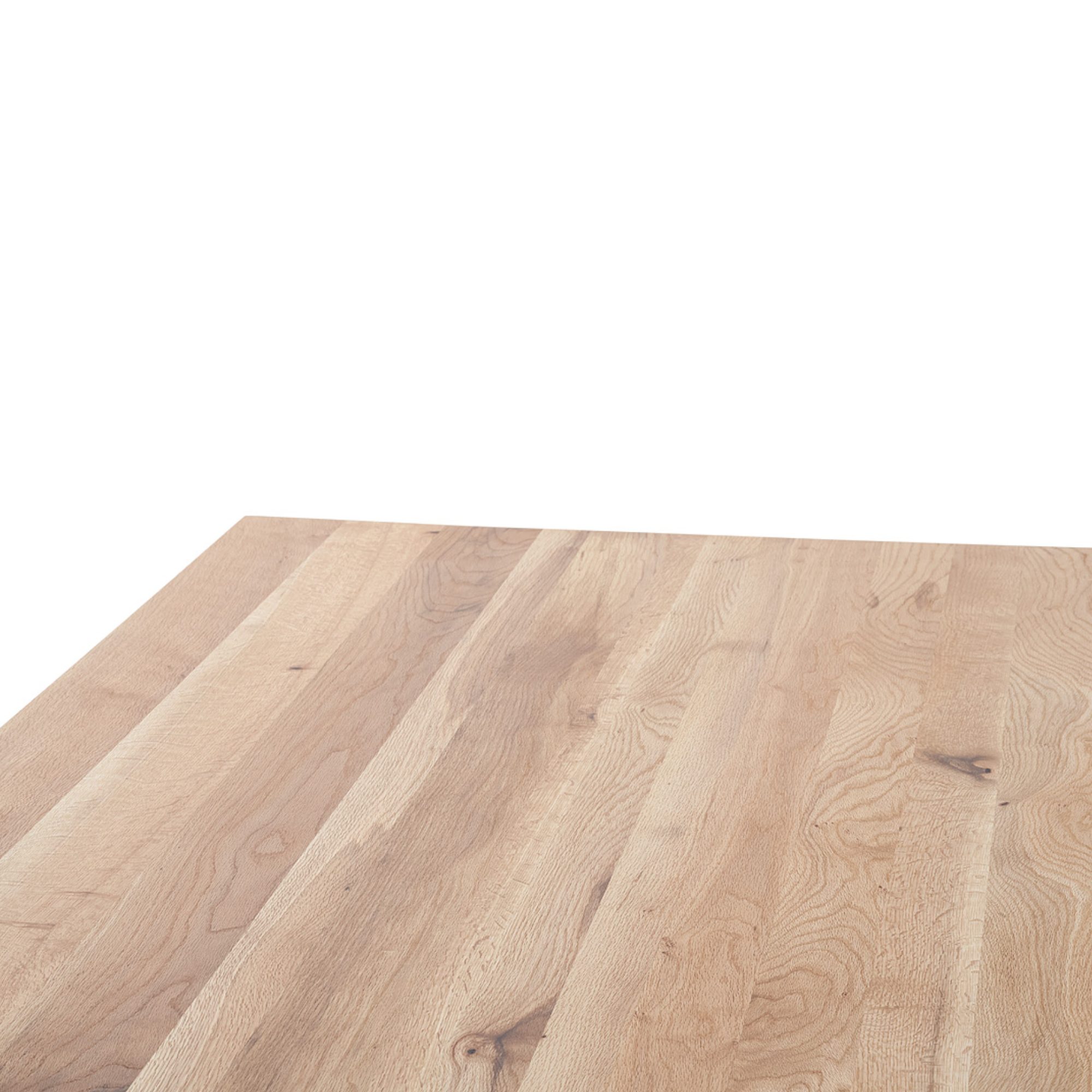 O jeho stabilitu sa starajú pevné lakované nohy z masívneho dubového dreva. Doska stola je vyrobená z rovnakého materiálu a jej povrch je olejovaný.