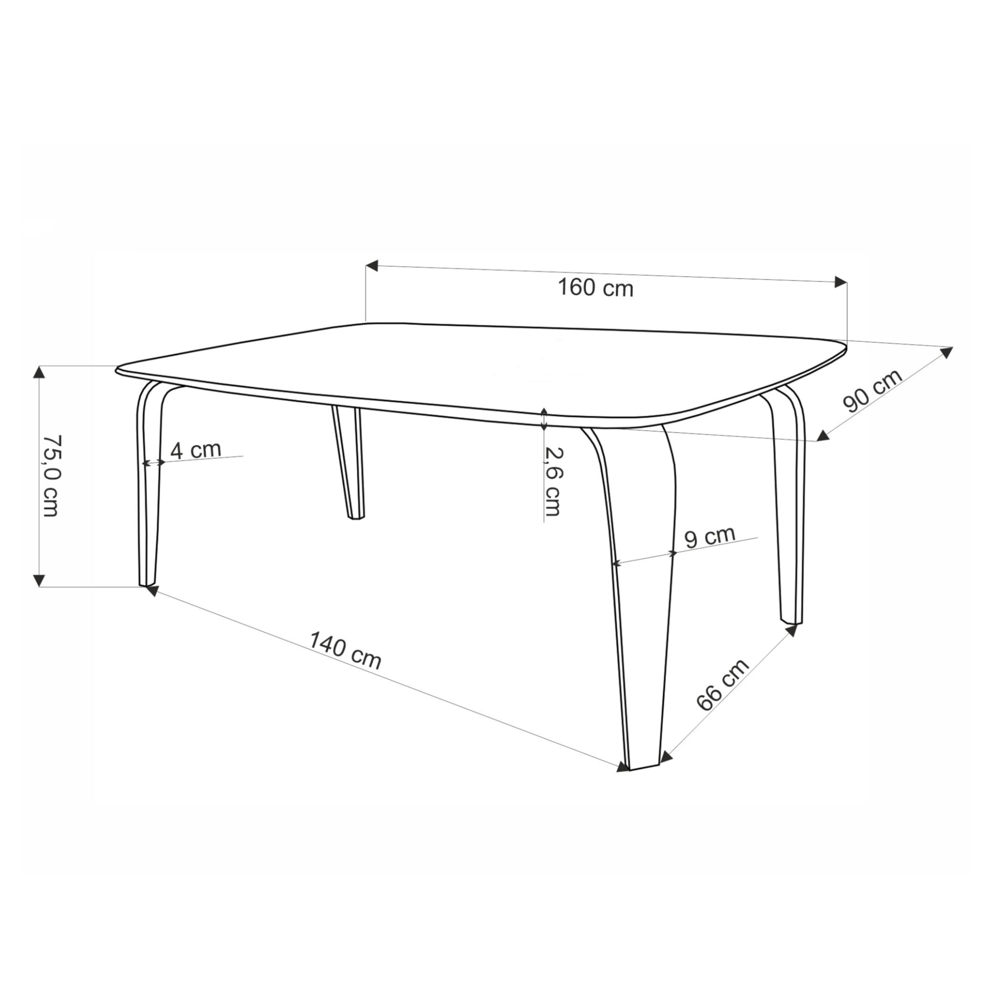 - Tvar stola: Obdĺžnikový