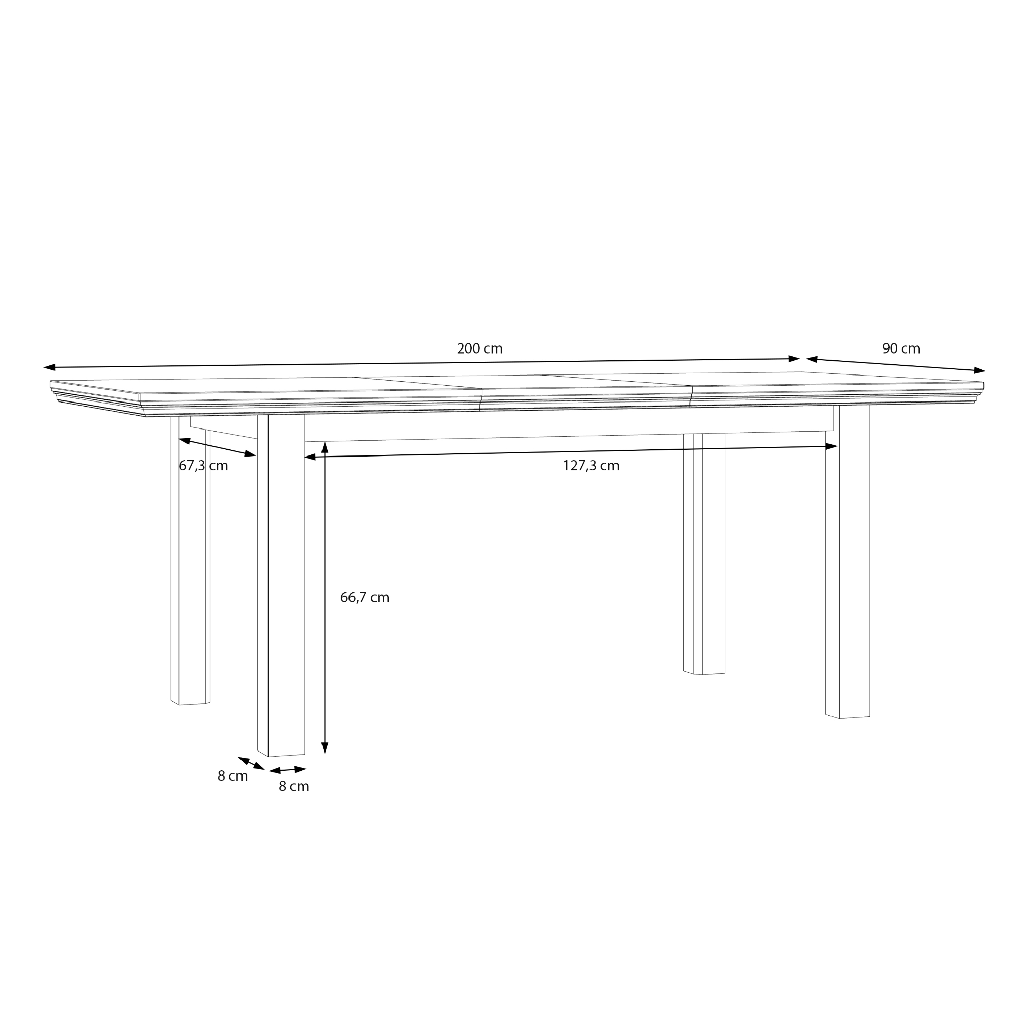 Vďaka rozkladacej funkcii je možné dosku stola zväčšiť zo 150 na 200 cm. Stôl tak poskytne dostatok miesta pre pohodlné stolovanie.