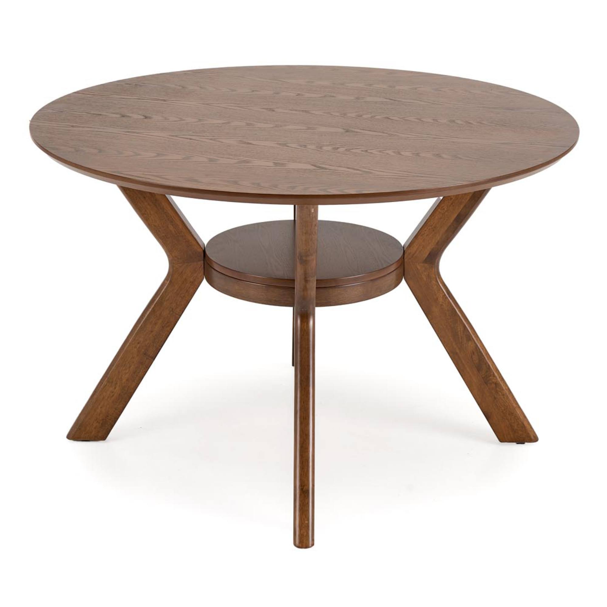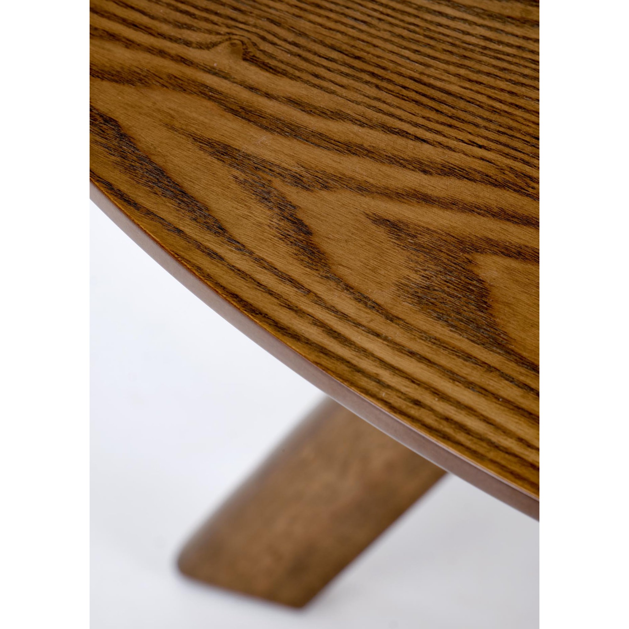 Jeho doska je vyrobená z drevovláknitého materiálu MDF, ktorý je doplnený dyhou. Základ stola tvoria nohy z masívneho kaučukovníkového dreva.
