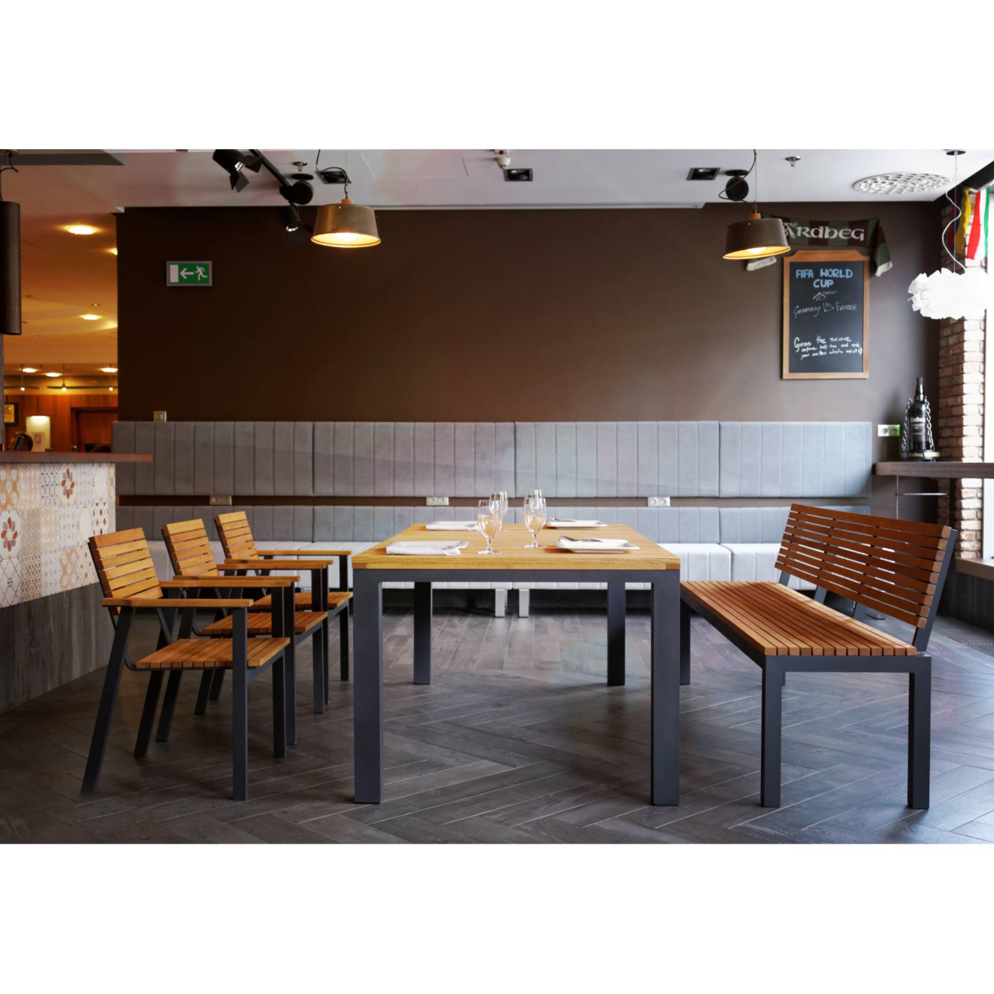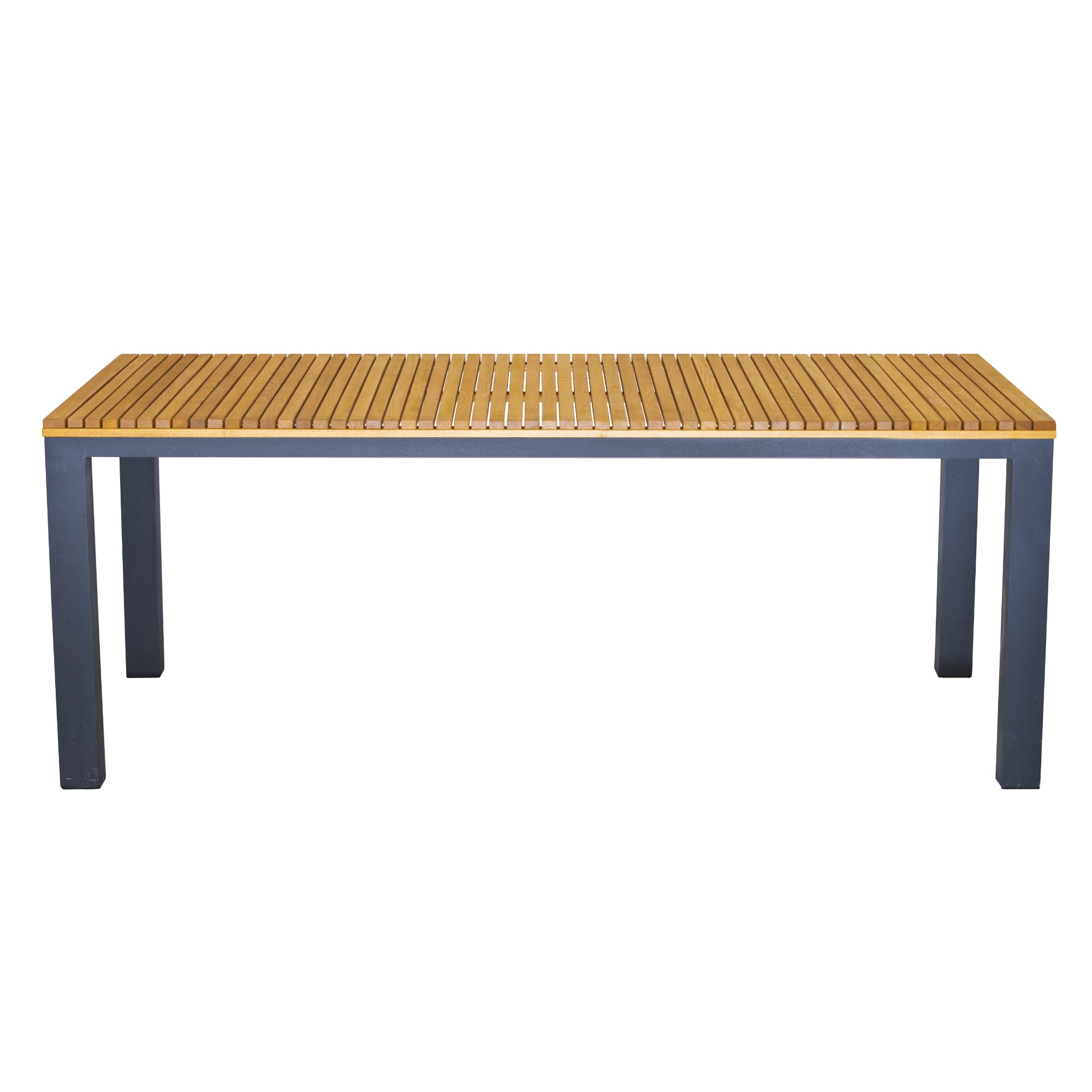 Jeho pevná a stabilná konštrukcia je vyrobená z hliníka. Horná doska z masívneho akáciového dreva robinia je impregnovaná olejom. Nosnosť stola je až 100 kg.