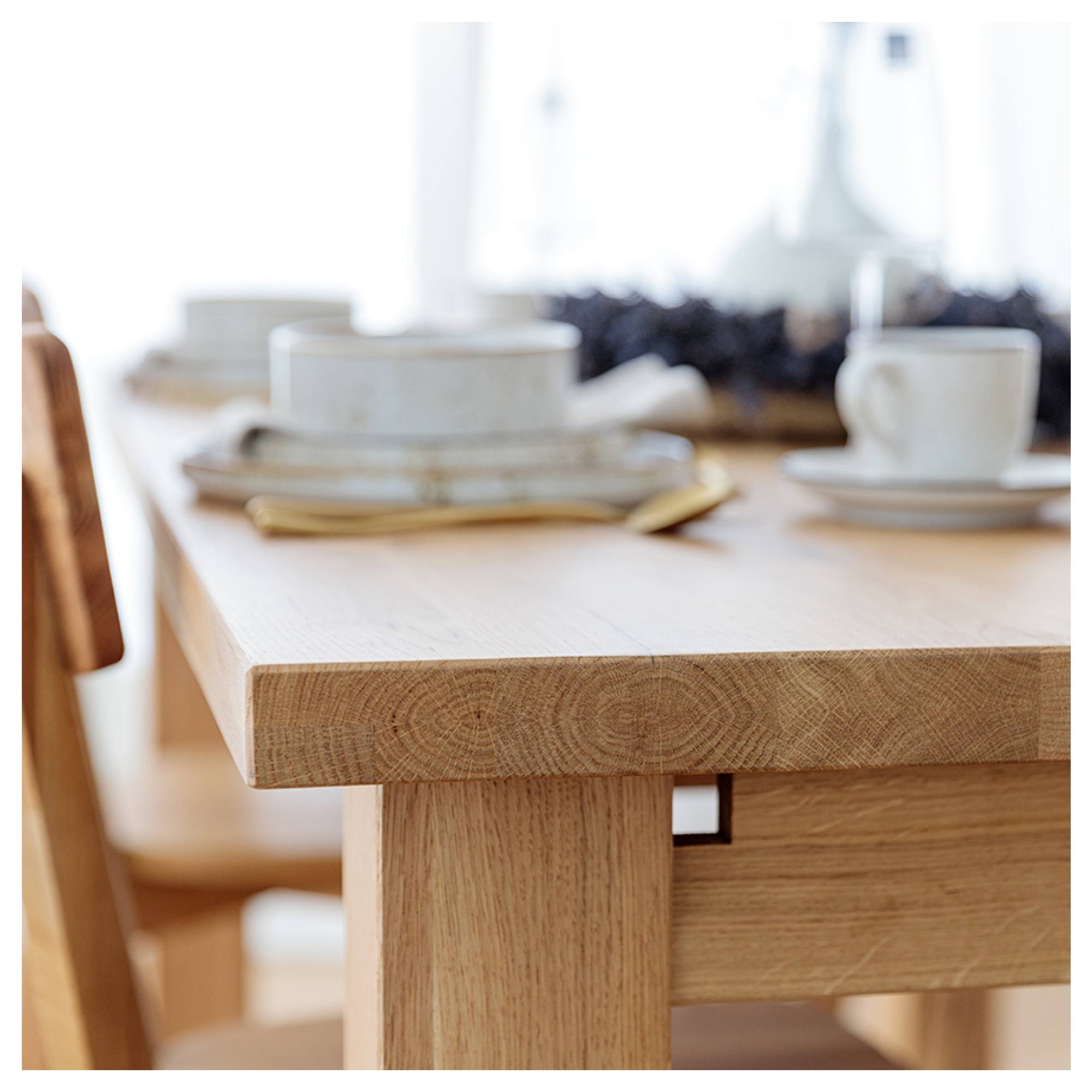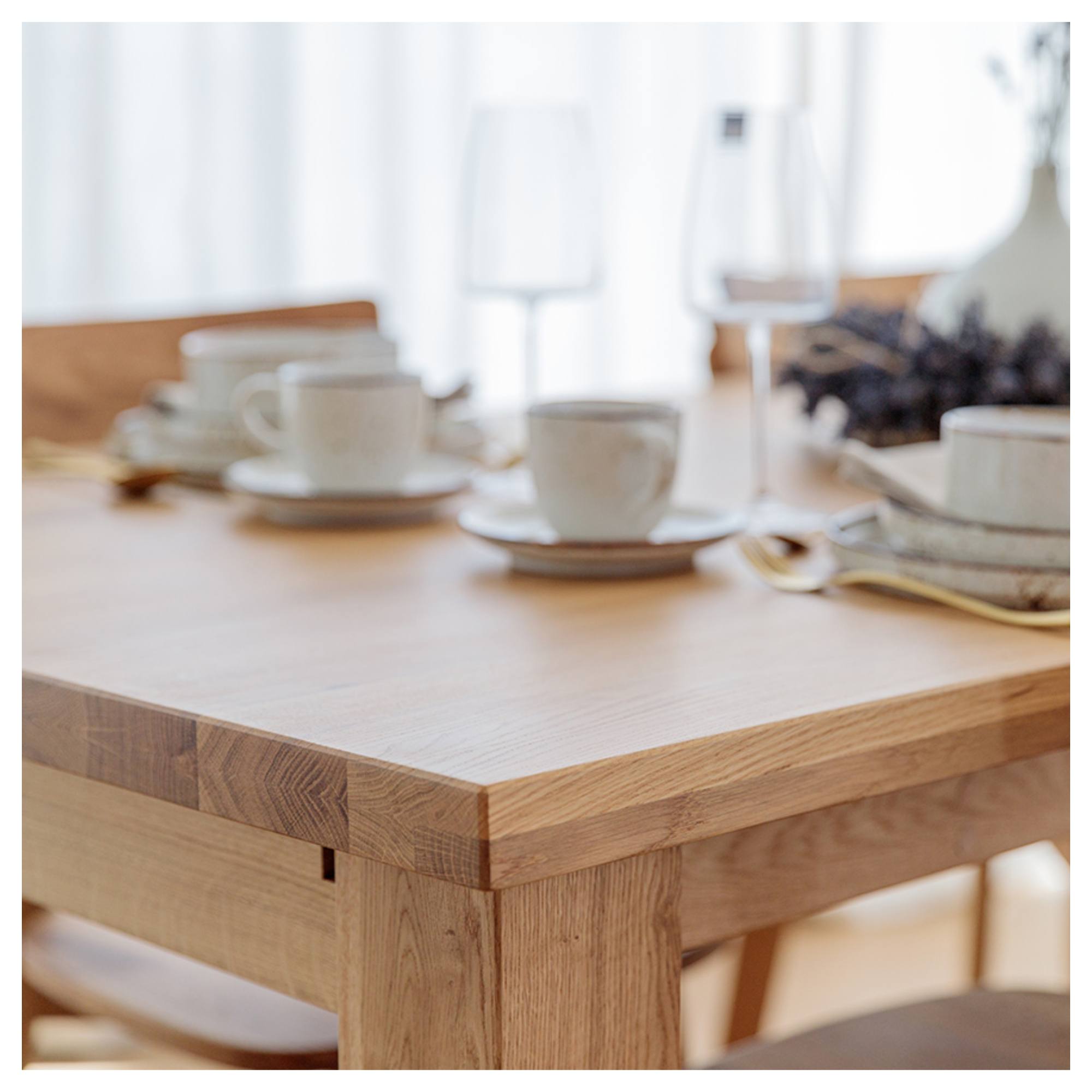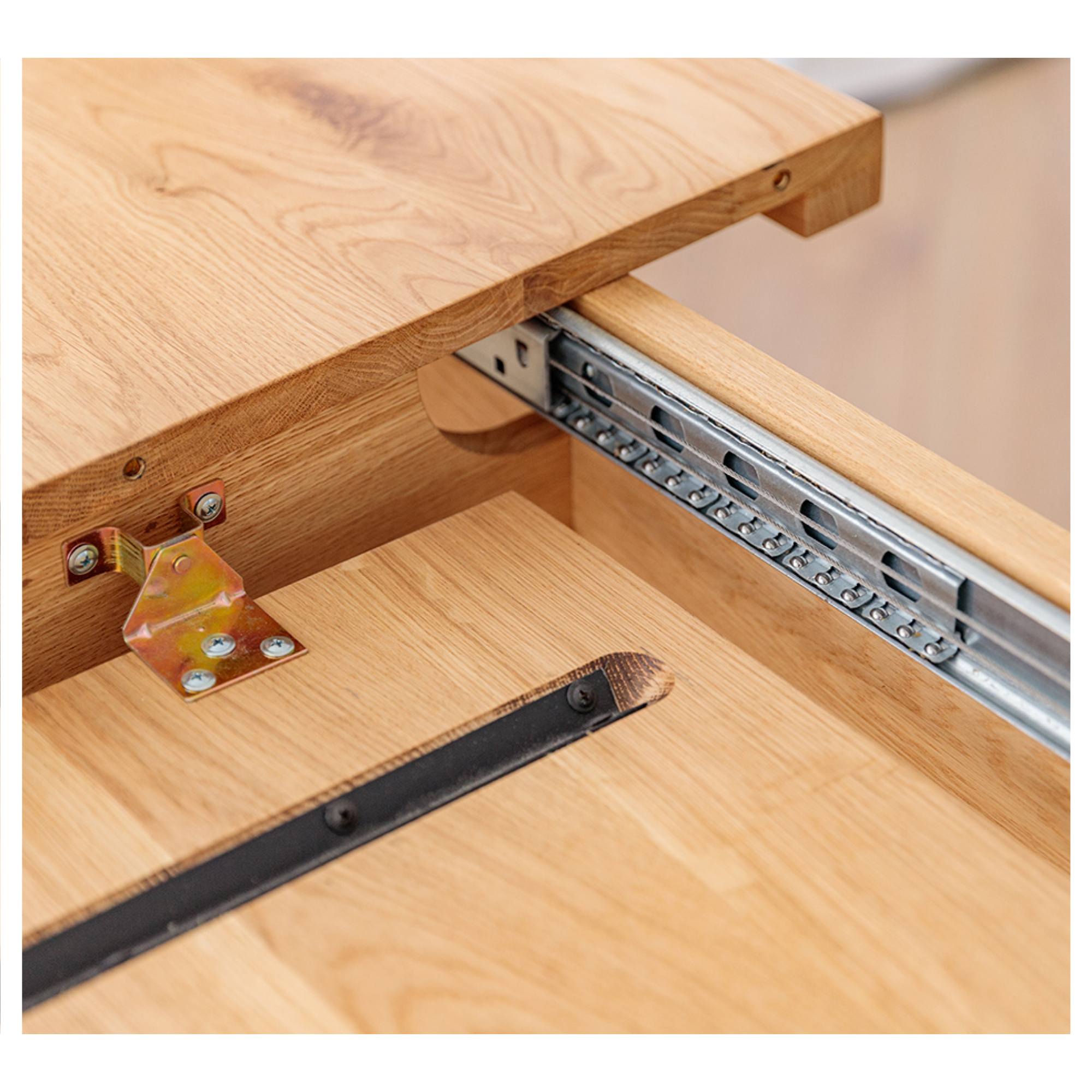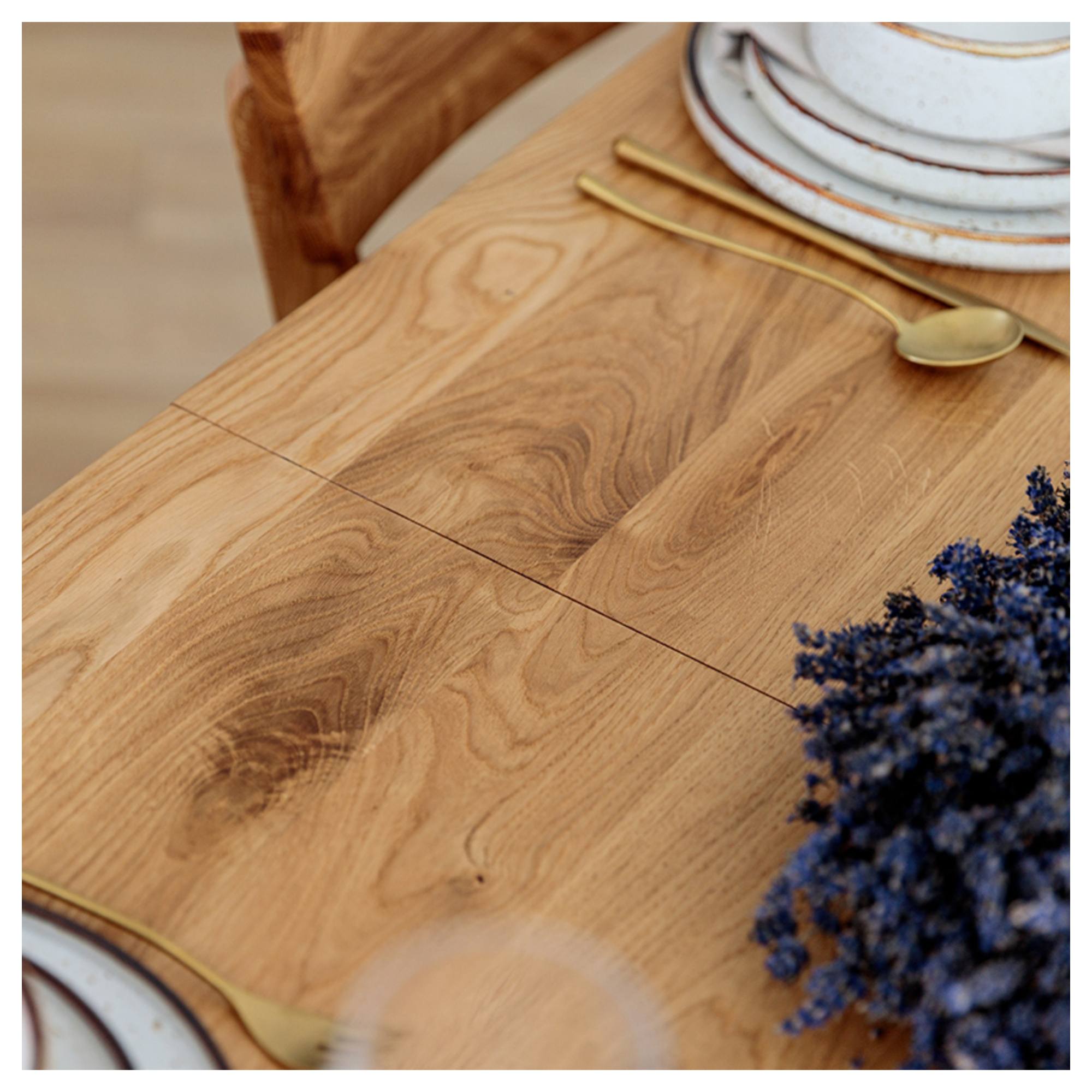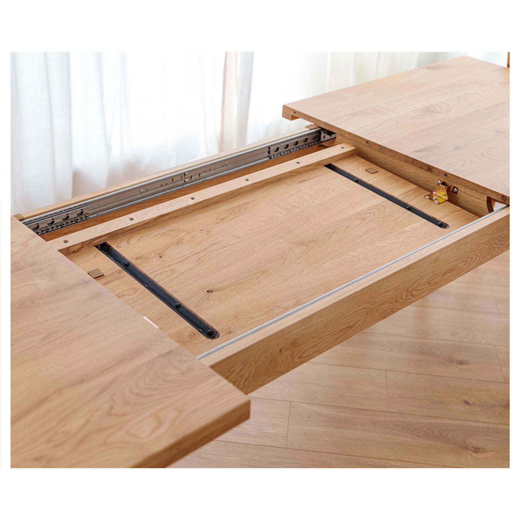 Jeho konštrukcia je vyrobená z masívneho dubového dreva s prirodzenou kresbou, ktorá robí z každého kusa originál. Vďaka olejovanému povrchu vám bude stôl dlho slúžiť aj sa ľahko udržiava v čistote. Priestranná doska je rozkladacia a umožňuje rozšírenie o ďalších 90 cm. Stôl sa tak dokonale prispôsobí vašim potrebám a bez problémov pohostíte aj väčšie skupiny stravníkov. Celkovú stabilitu a pevnosť zaisťujú vysoké, masívne nohy.