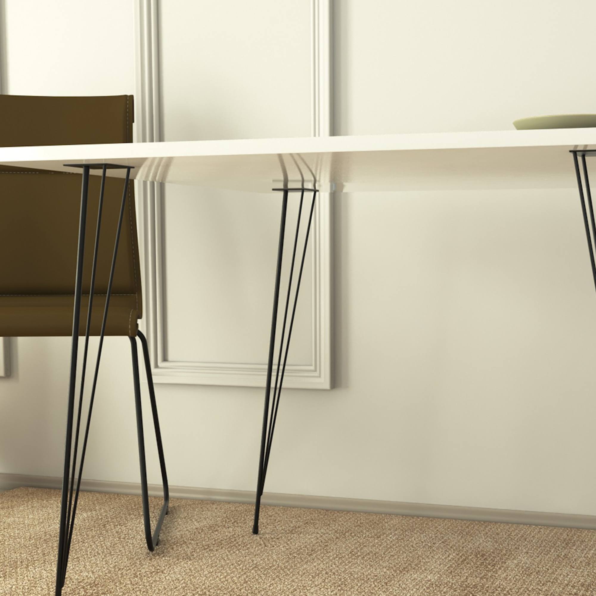 Stabilitu stola zaručujú pevné kovové nohy. Na výrobu hornej dosky bol využitý drevovláknitý materiál MDF.