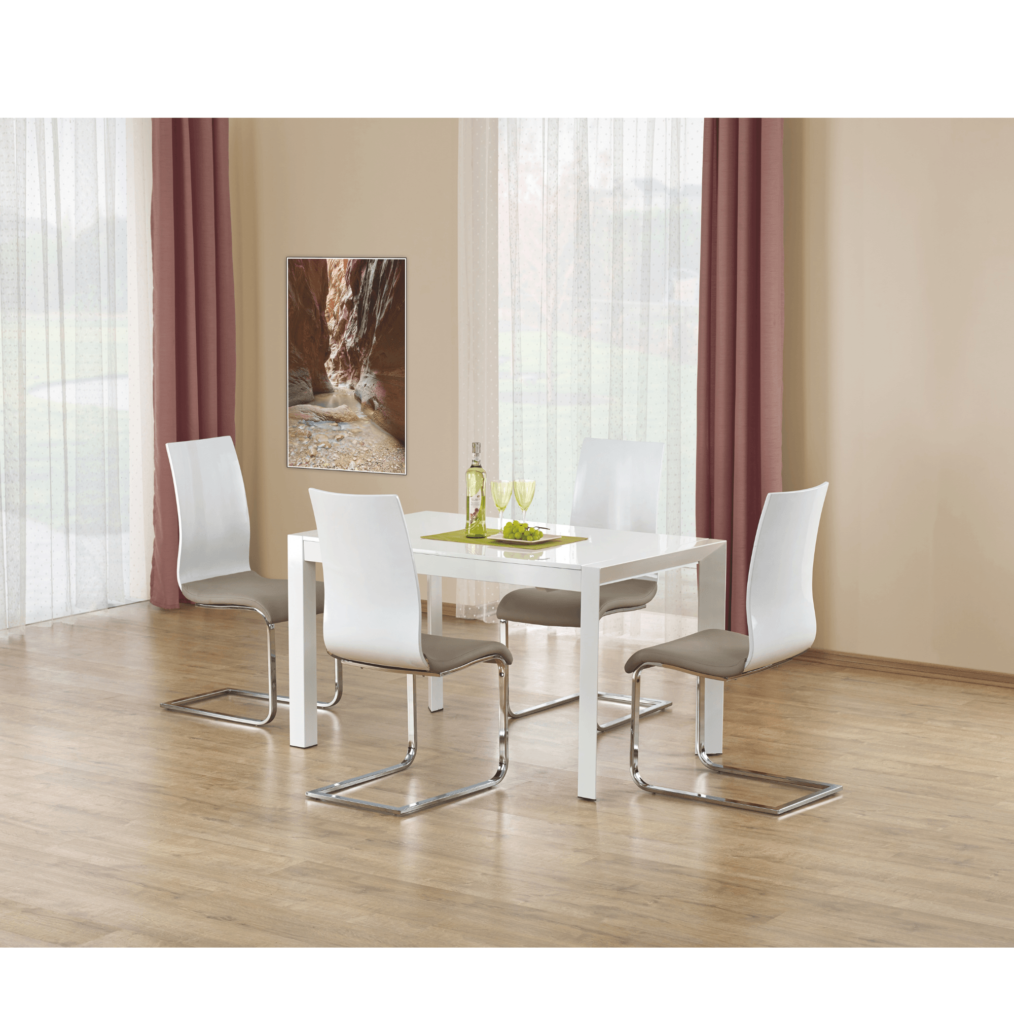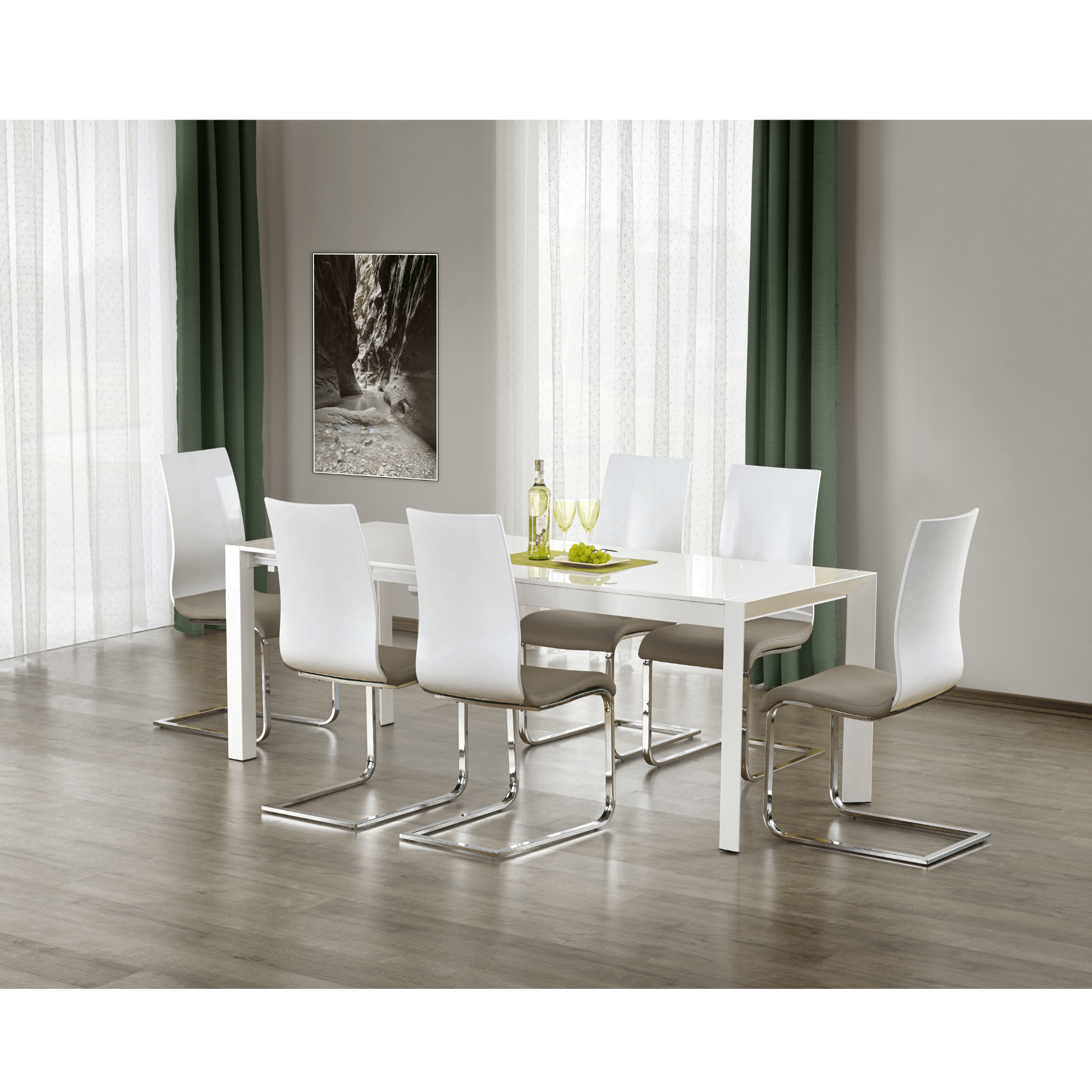 Hlavná doska je vyrobená z drevovláknitého materiálu MDF, ktorý sa vyznačuje ľahkou udržiavateľnosťou a dlhou životnosťou. Maximálnu stabilitu zaisťuje štvorica kovových nôh – tie sú lakované do bielej farby. Komfort stolovania je rozšírený o rozkladaciu funkciu na štedrých 250 cm.