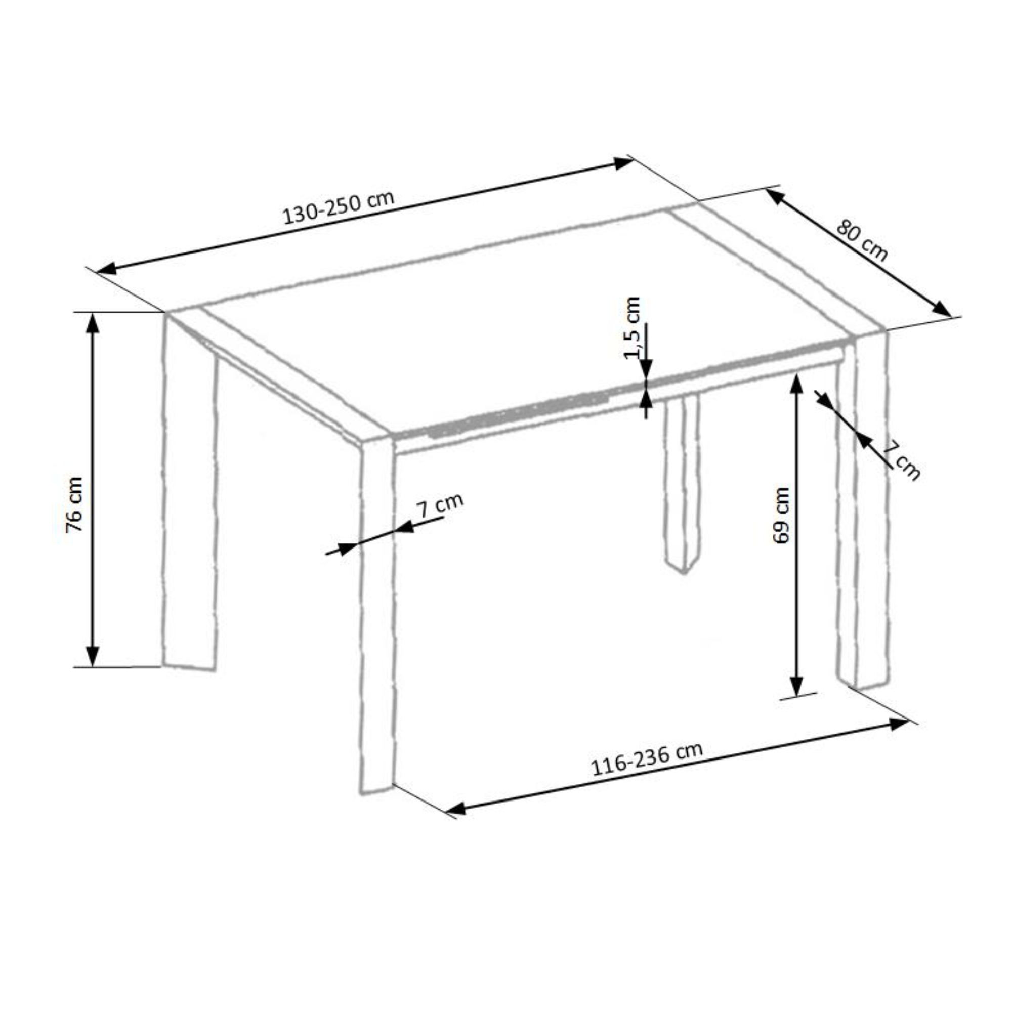 | Nastaviteľná šírka dosky stola v rozmedzí (cm): | 130-250 |