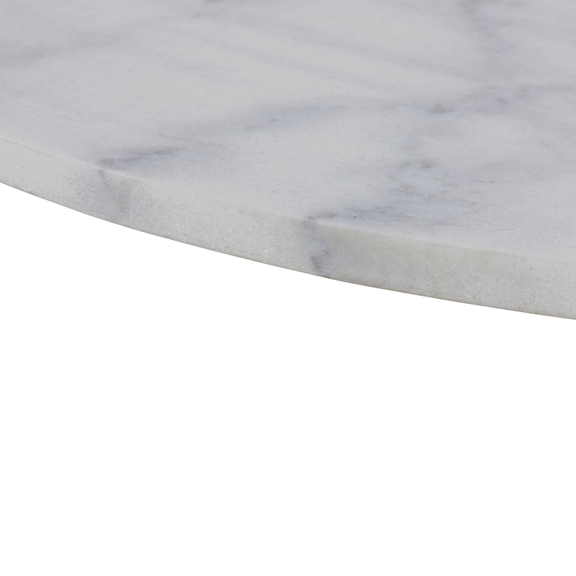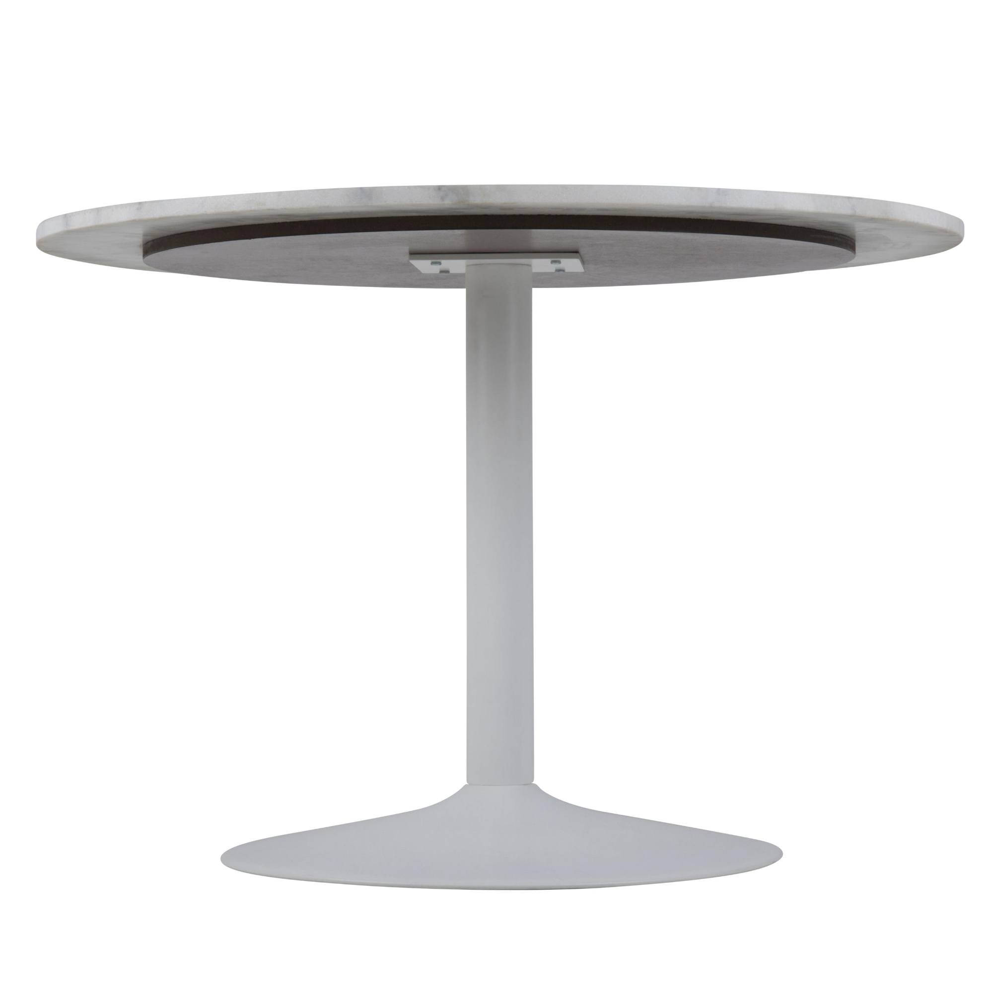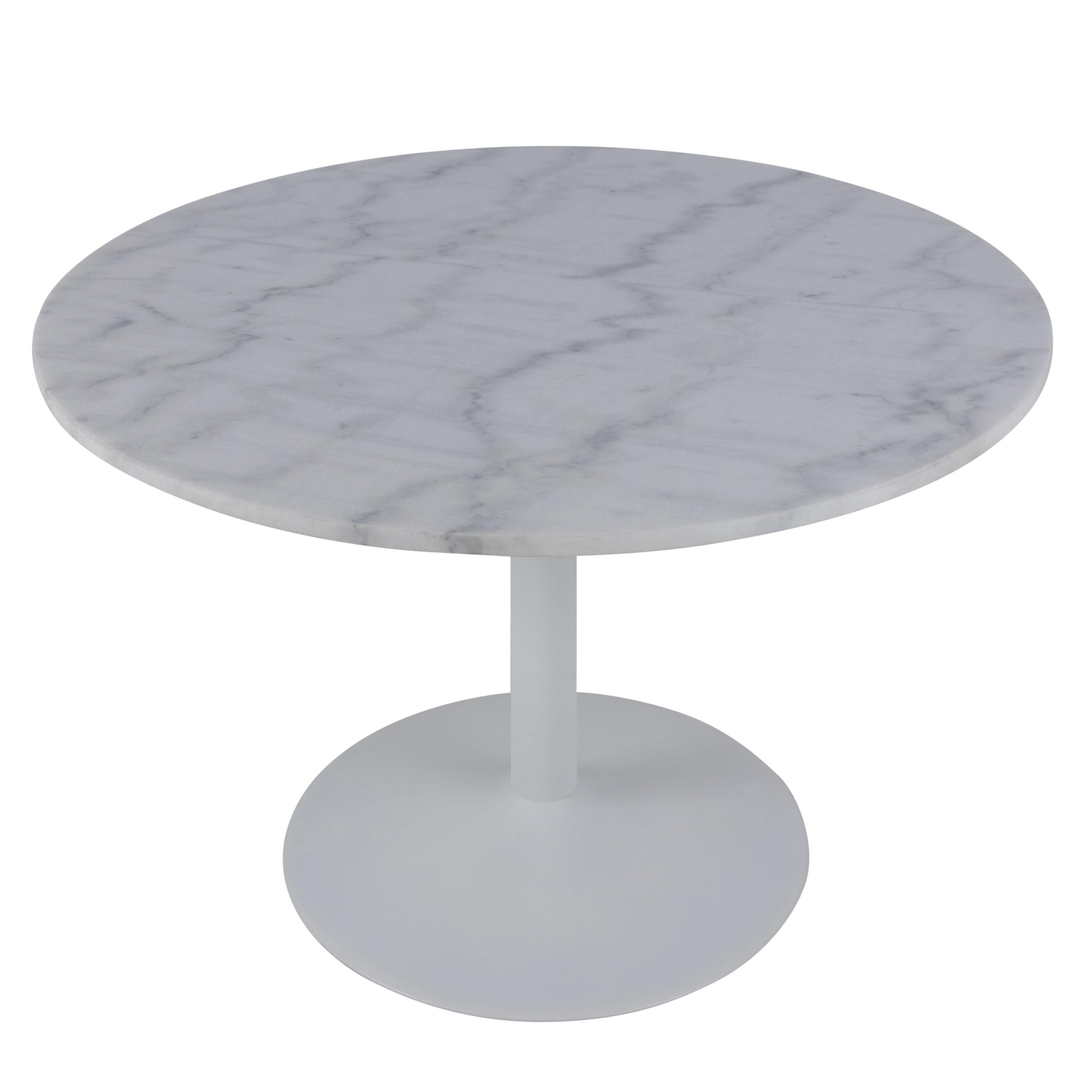 Stôl disponuje pevnou kovovou stredovou nohou, ktorá je zárukou jeho stability. Jeho doska vyrobená z mramoru vyzerá veľmi elegantne, a tak sa stôl nepochybne stane ozdobou vášho interiéru.