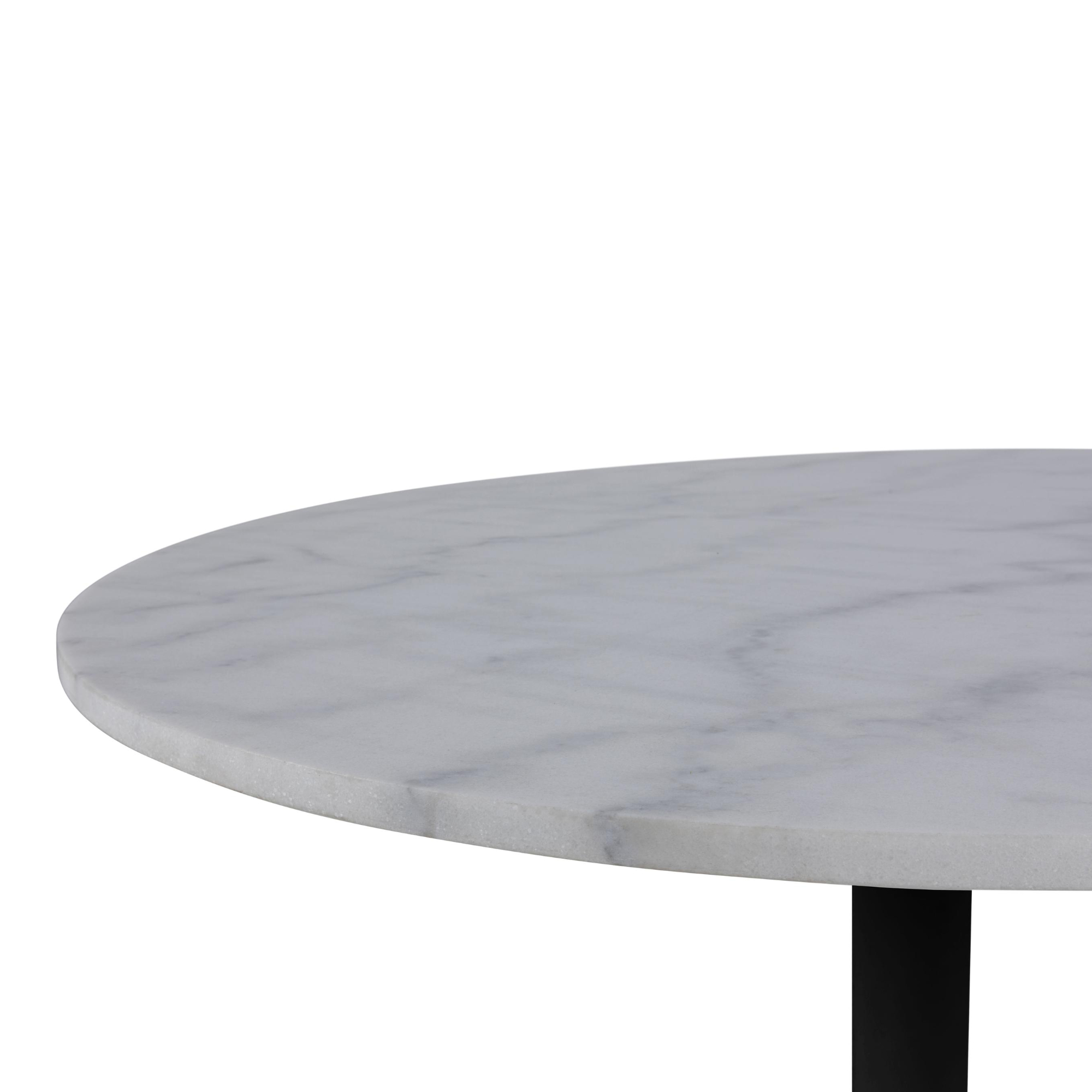 Stôl disponuje pevnou kovovou stredovou nohou, ktorá je zárukou jeho stability. Jeho doska vyrobená z mramoru vyzerá veľmi elegantne, a tak sa stôl nepochybne stane ozdobou vášho interiéru.