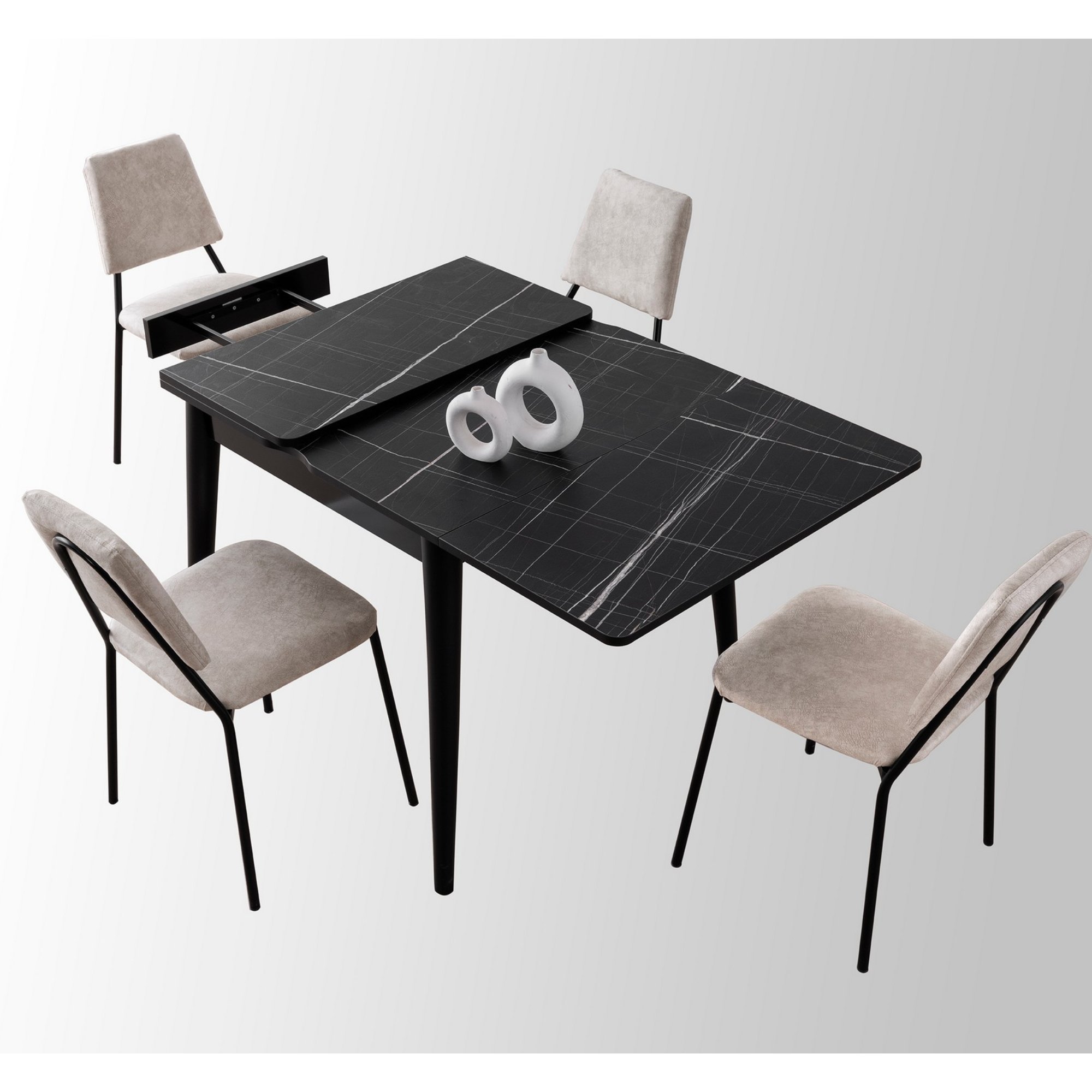 Rozkladacia funkcia umožňuje zväčšiť šírku hornej dosky z 80 na 160 cm, a tak vám stôl TOTEM ponúkne dostatok miesta pre pohodlné stolovanie. Nosnosť stola je až 100 kg.