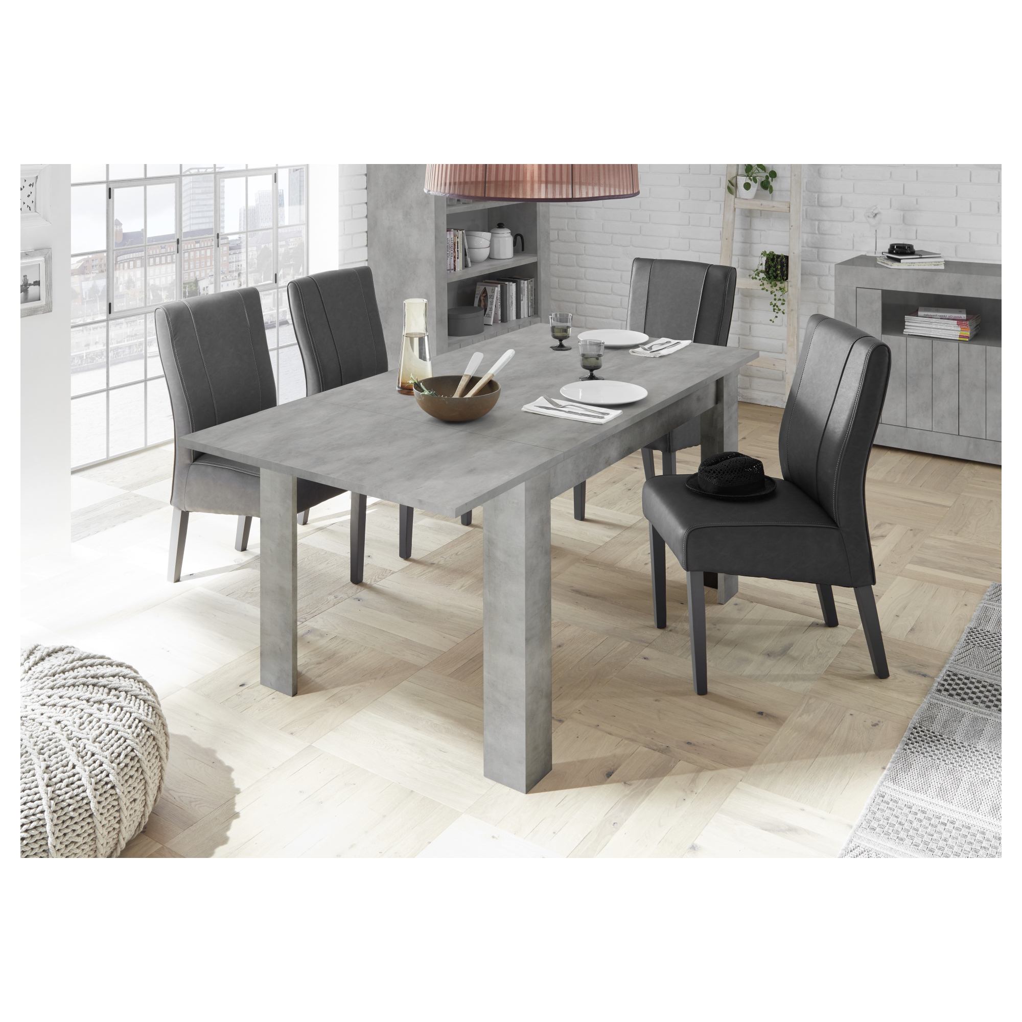 Vyrobený je z laminovaných, veľmi kvalitných drevotrieskových dosiek, pre ktoré je typická ľahká udržiavateľnosť aj dlhá životnosť. Ladený je do dekora betónu. Stabilitu zaisťuje štvorica robustných nôh. Stôl je možné rozšíriť o prídavnú dosku (súčasťou balenia) na 185 cm.