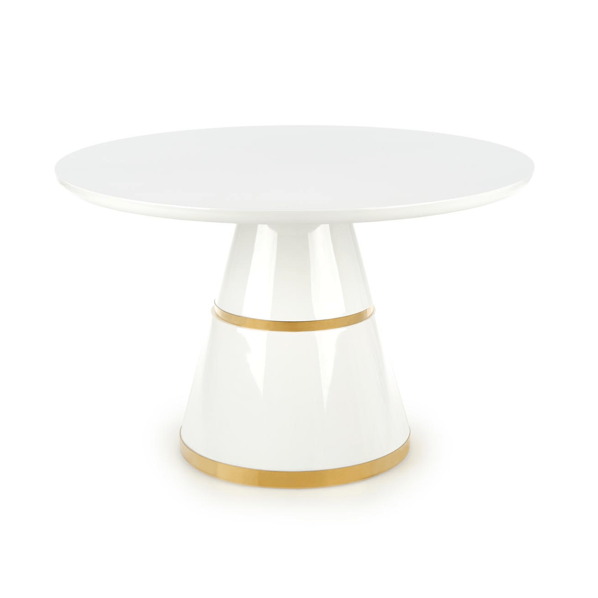 Kruhová doska v bielom odtieni je vyrobená z drevovláknitého materiálu MDF, ktorý sa vyznačuje ľahkou udržiavateľnosťou a dlhou životnosťou. Maximálnu stabilitu zaisťuje robustná stredová noha s dekoratívnymi zlatými pruhmi. Nosnosť jedálenského stola VIGOS je 40 kg.