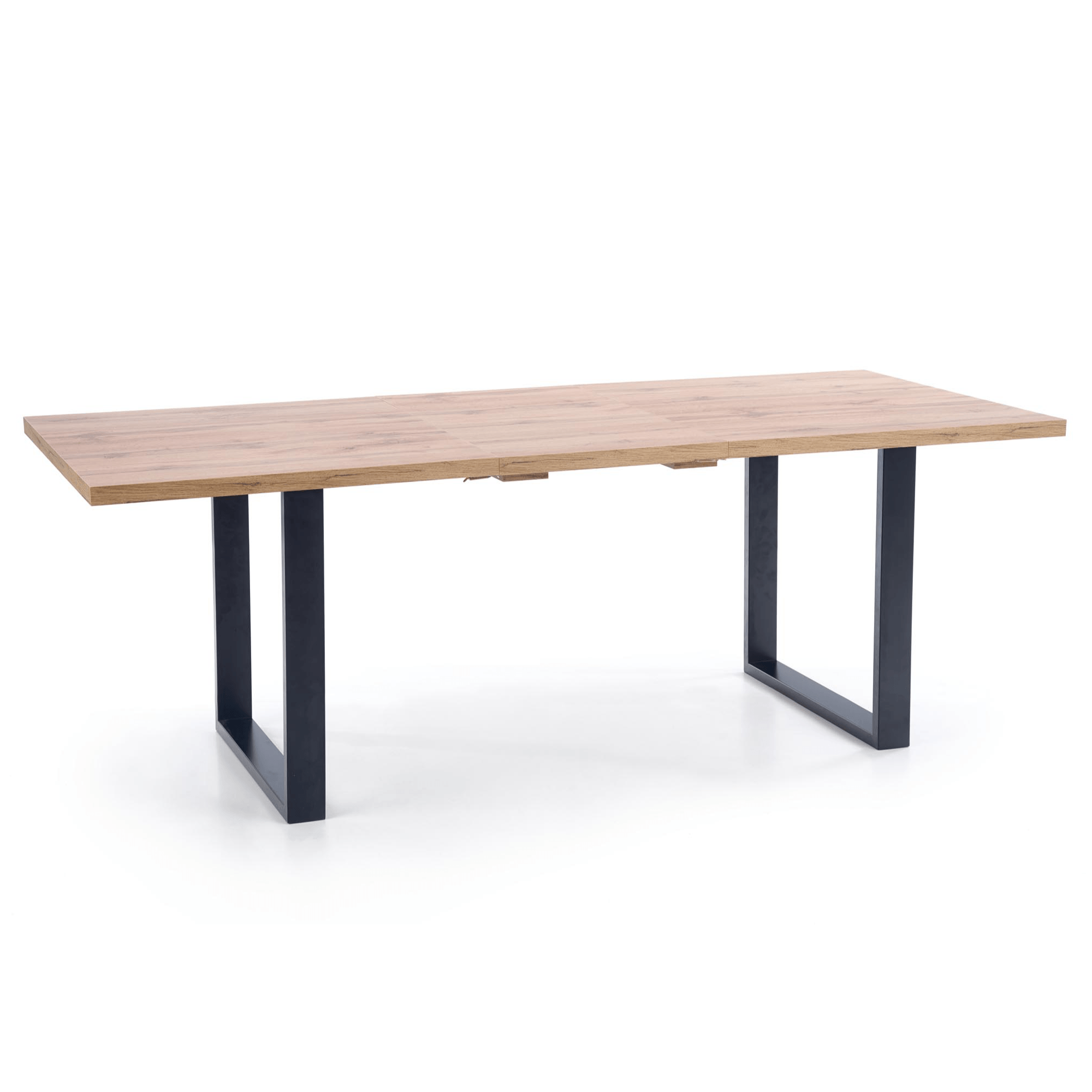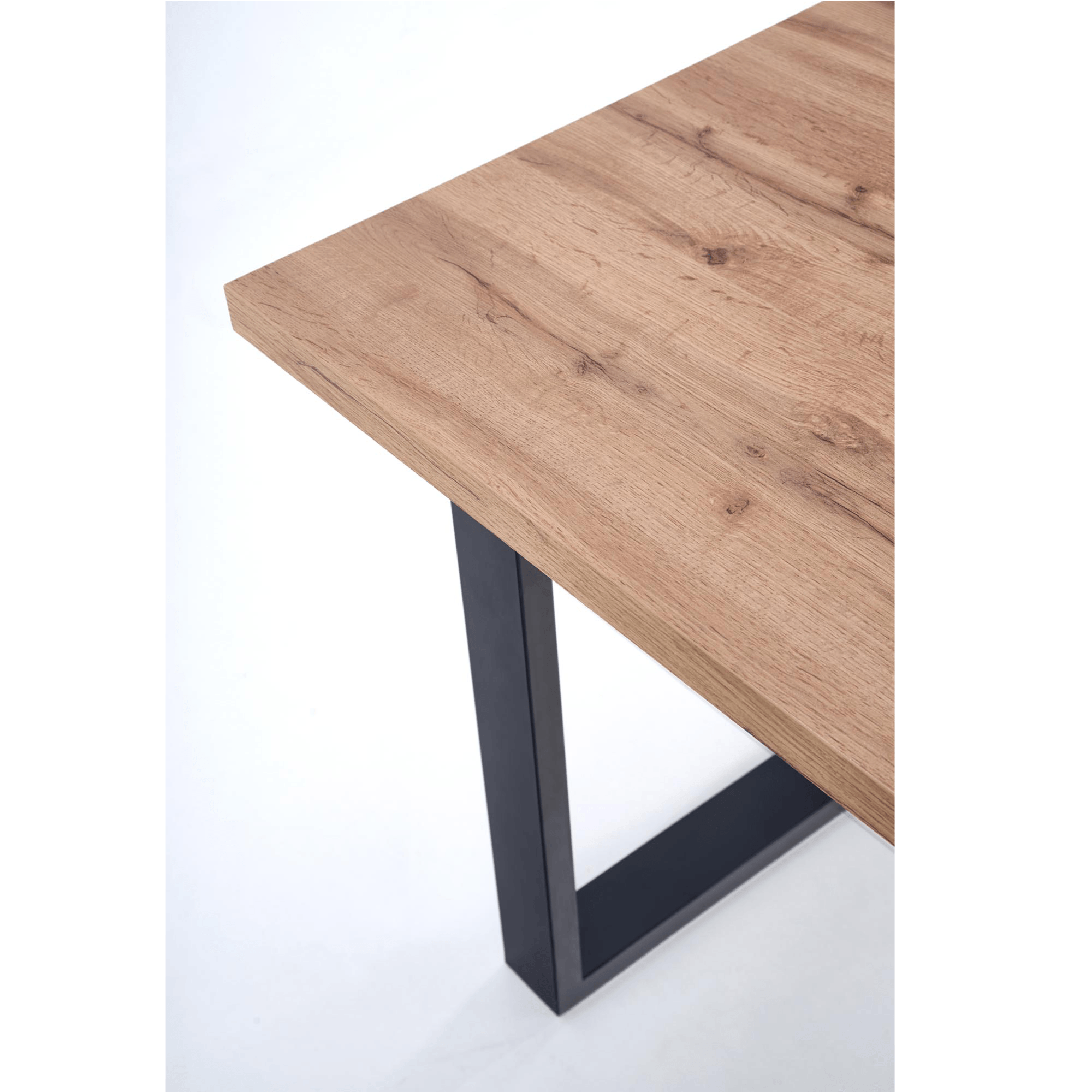 Hlavná doska je vyrobená z laminovaného dreveného materiálu, ktorý sa vyznačuje ľahkou udržiavateľnosťou aj dlhou životnosťou. Ladená je do dekora duba wotan, ktorý interiér obohatí o prírodný nádych. Doska navyše disponuje ABS hranami, ktoré eliminujú riziko mechanického poškodenia. Maximálnu stabilitu zaisťuje podnož z kovu – tá je ošetrená čiernym práškovým lakom. Komfort stolovania je podporený funkciou rozloženia na dostatočných 185 cm. Nosnosť je 60 kg.