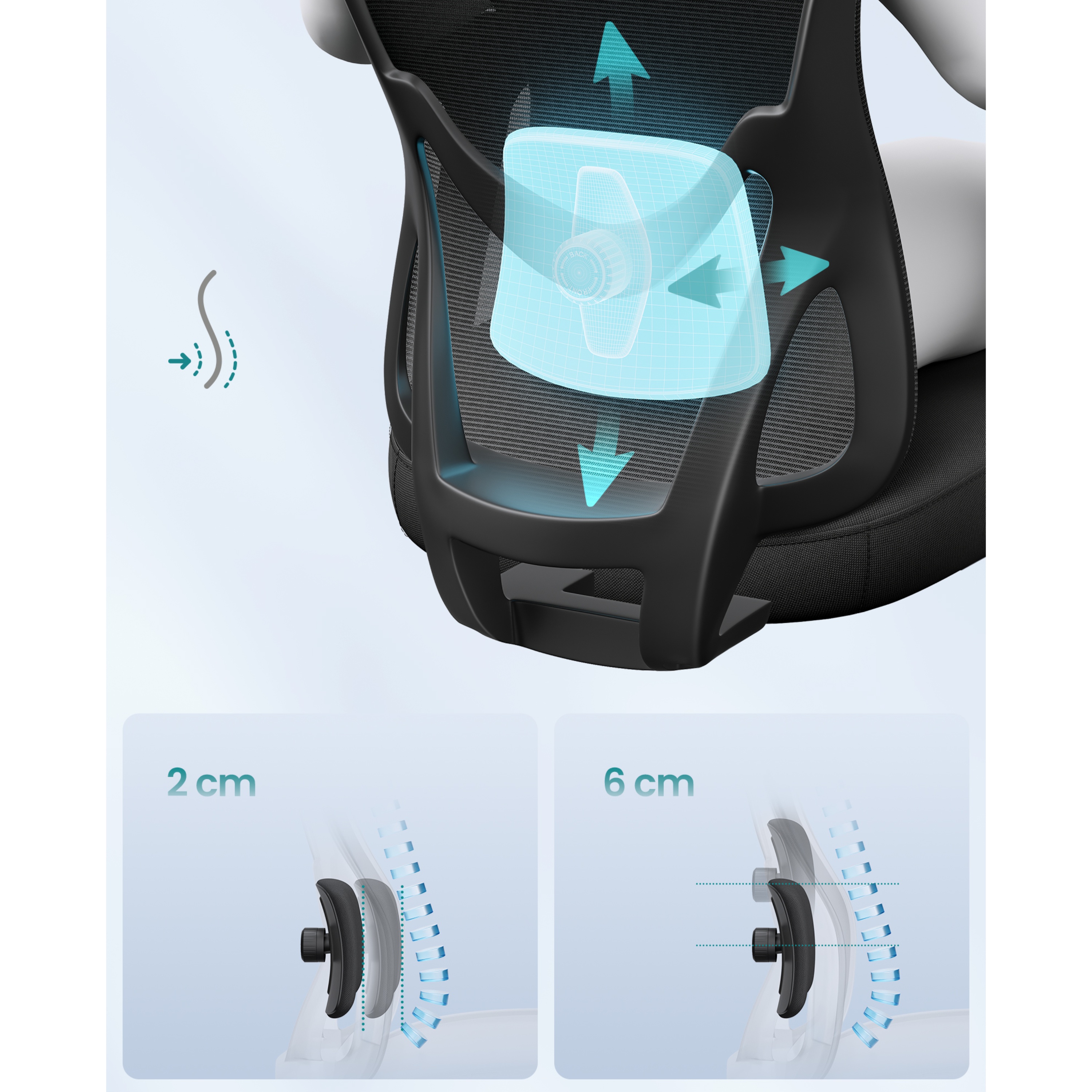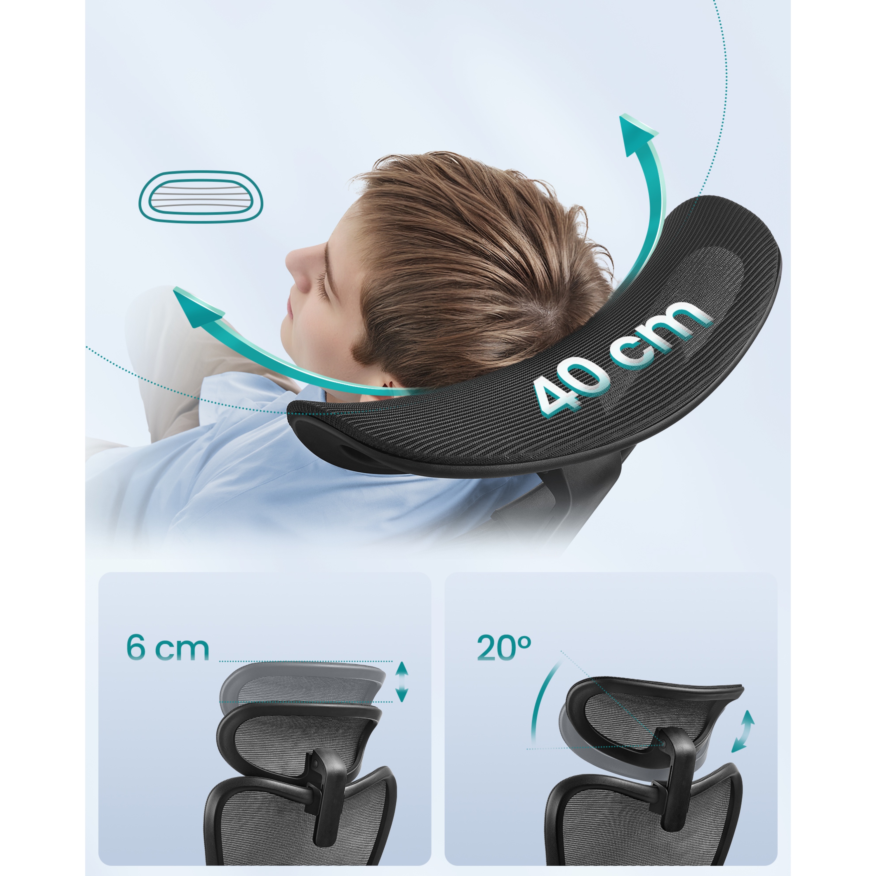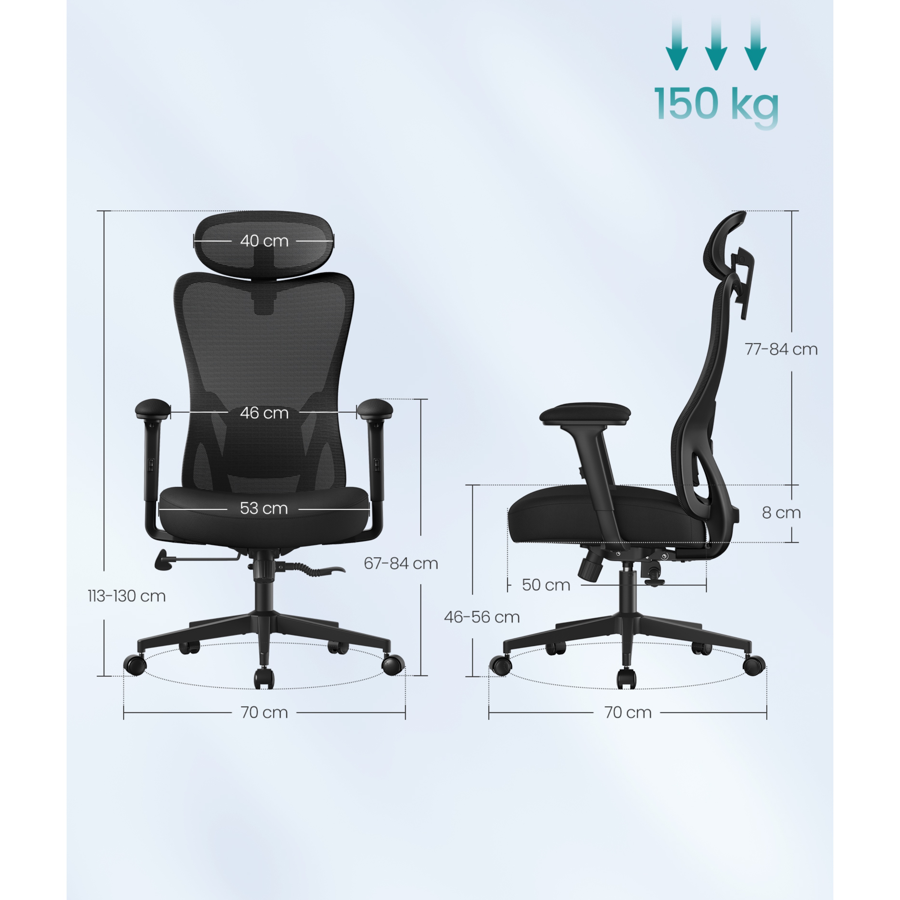 Súčasťou tejto nadčasovej stoličky je potiahnuté sedadlo, ktoré dopĺňa chrbtové operadlo a opierka hlavy z kvalitnej a priedušnej sieťoviny. Ruky si môžete pohodlne oprieť o nastaviteľné podrúčky s mäkkou vrchnou vrstvou. Opierku hlavy a bedrovú opierku je možné nastaviť podľa vašich preferencií pre čo najkomfortnejšie sedenie. Stoličku je možné výškovo nastaviť pomocou plynového piestu, tuhosť hojdania si zase prispôsobíte skrutkou pod sedadlom. Maximálna nosnosť až 150 kg.