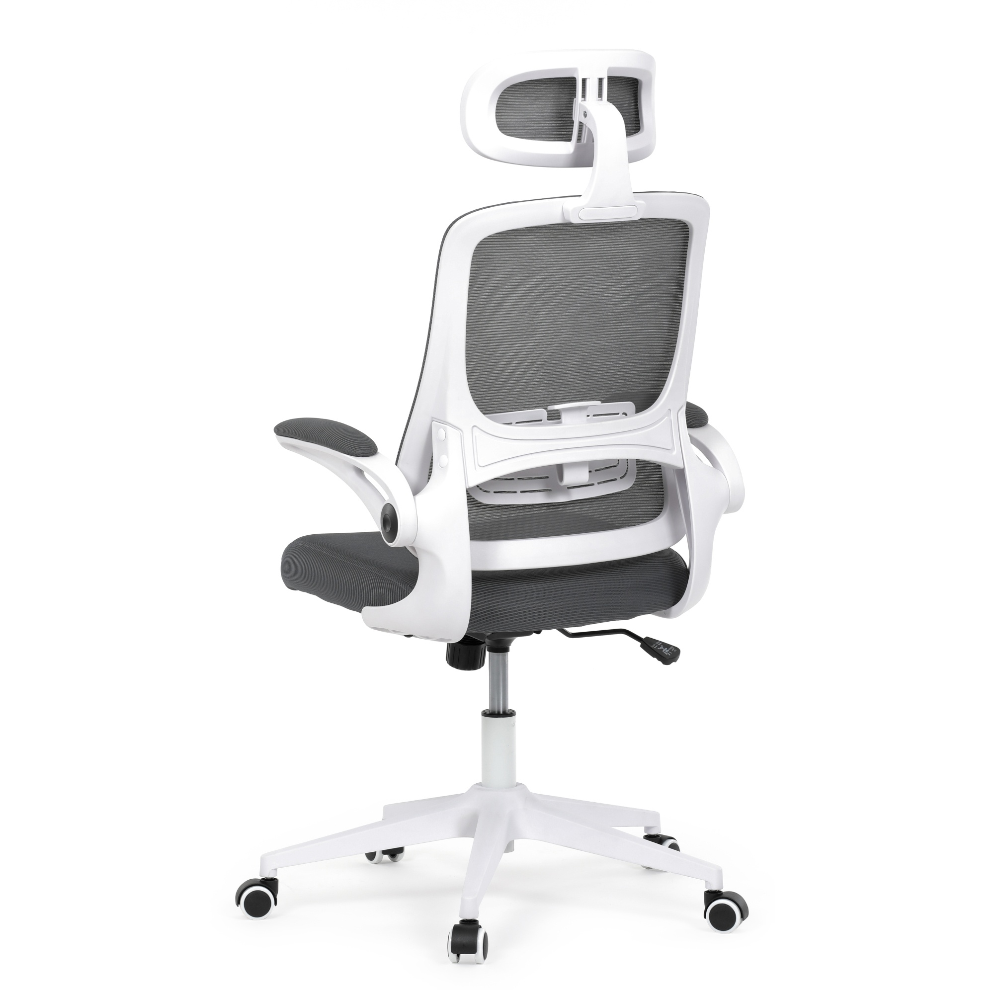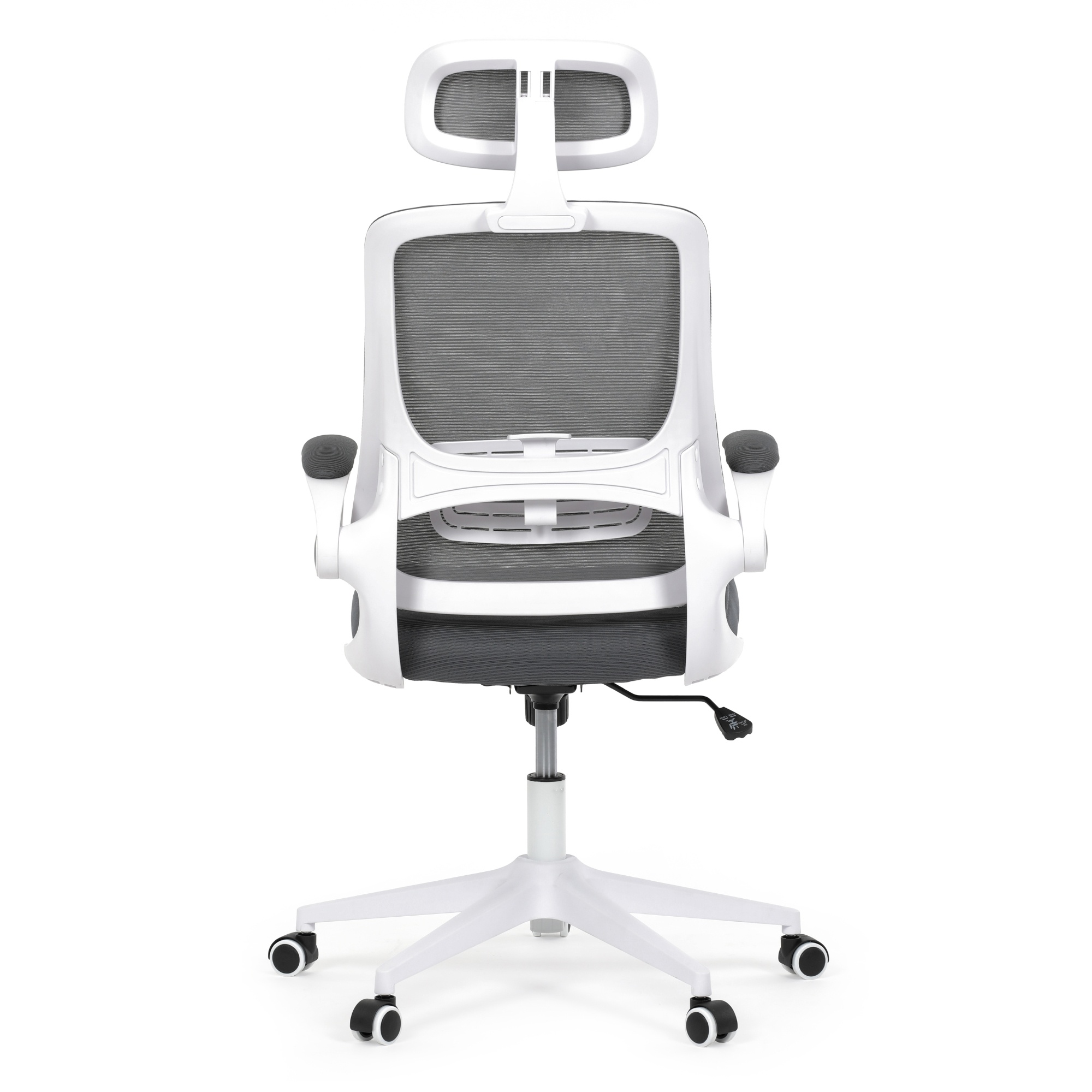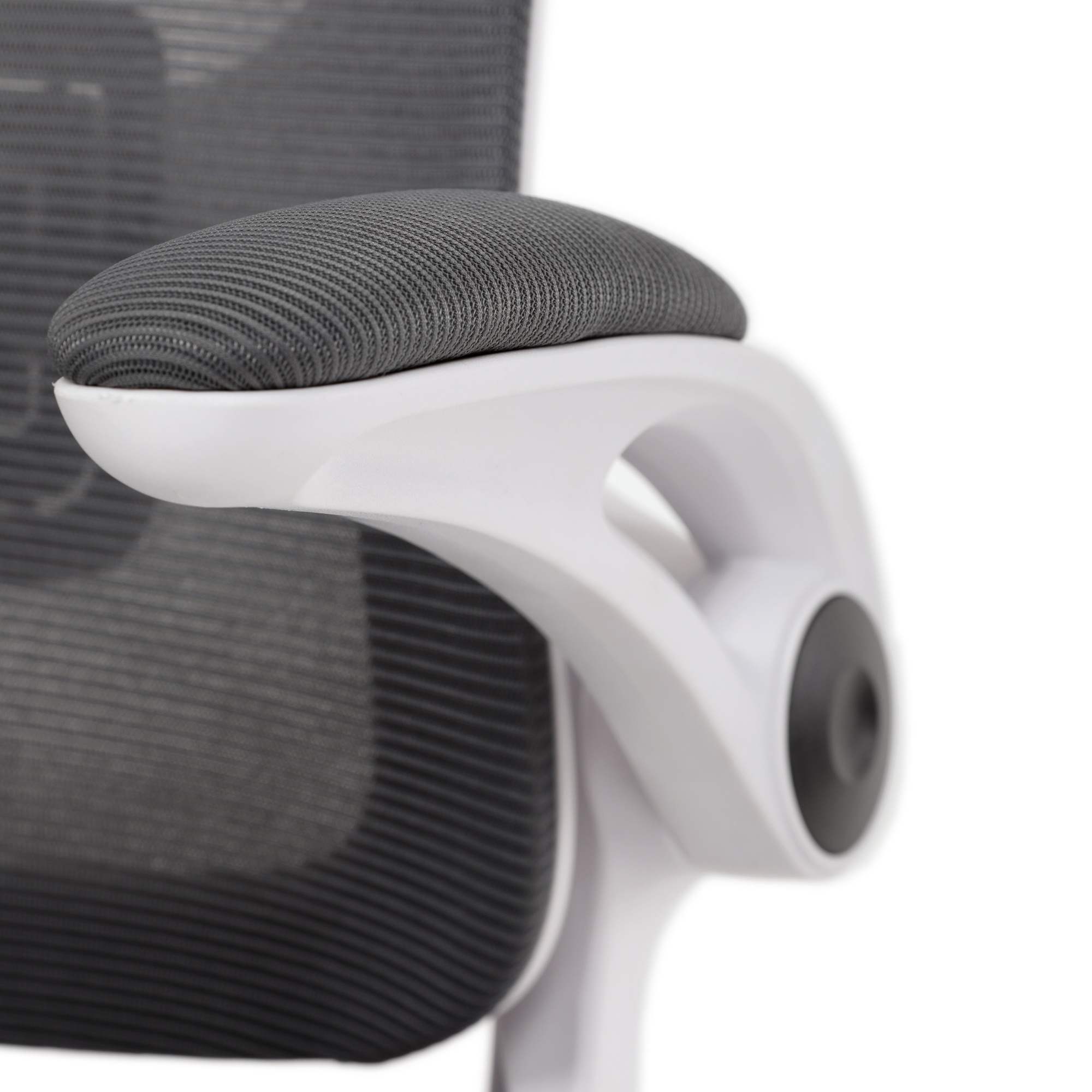 Táto stolička so sieťovaným poťahom a PU penovou výplňou ponúka skvelé odvetrávanie a pohodlie aj pri dlhom sedení. Ergonomický dizajn zahŕňa výškovo nastaviteľnú opierku hlavy a bedier, čo zaisťuje optimálnu podporu chrbtice. Nechýba ani možnosť nastavenia výšky sedu. K pohodliu pri sedení prispievajú odklápacie podrúčky a hojdacia mechanika, zatiaľ čo o stabilitu a ľahkú mobilitu sa starajú kolieska na tvrdé povrchy a robustný plastový kríž.