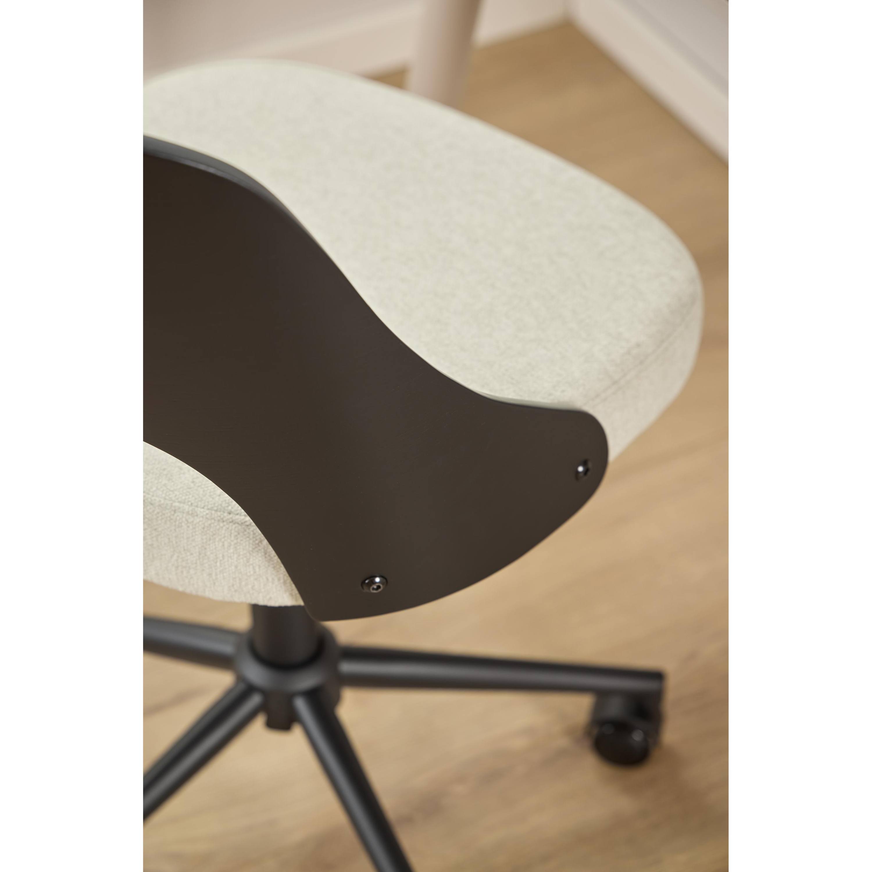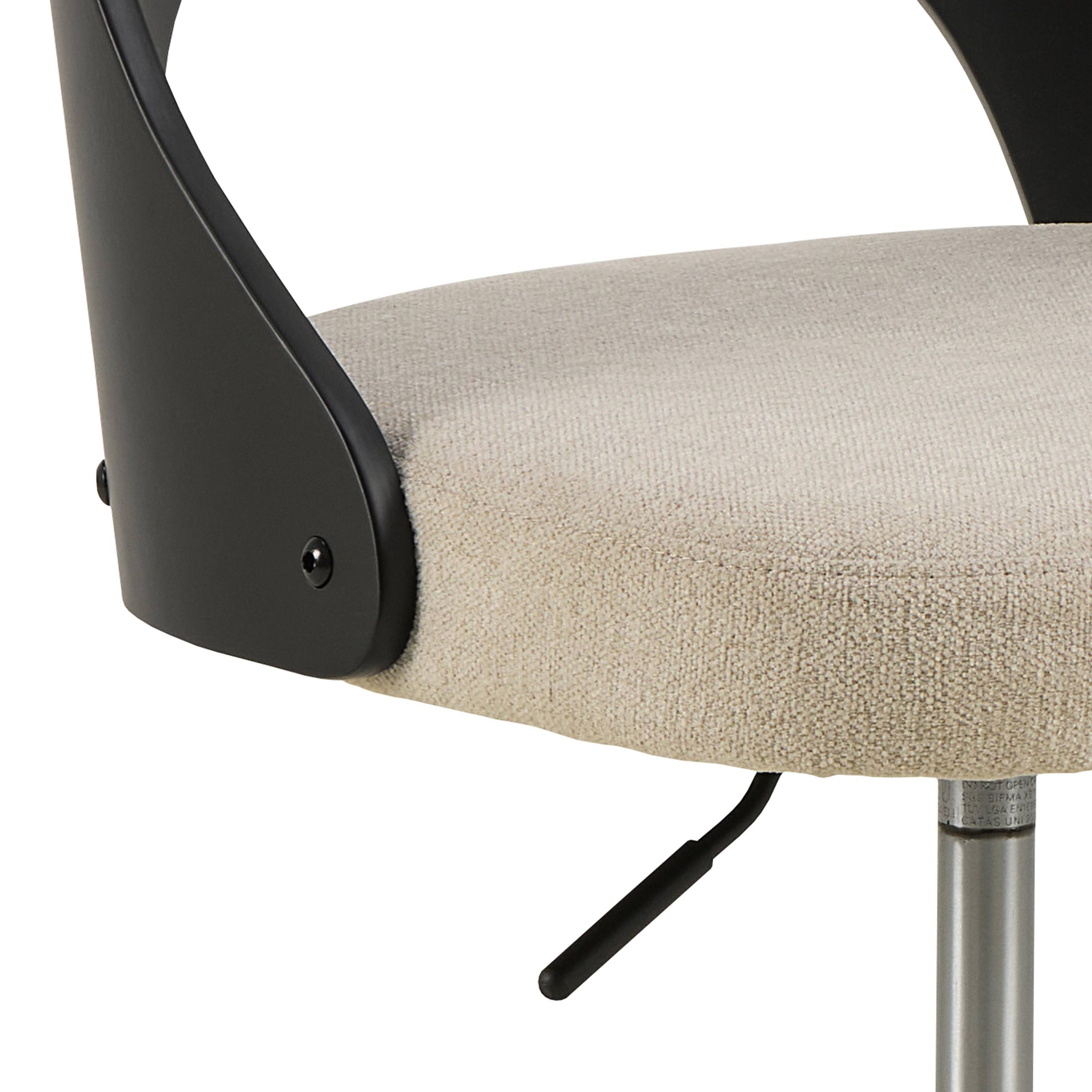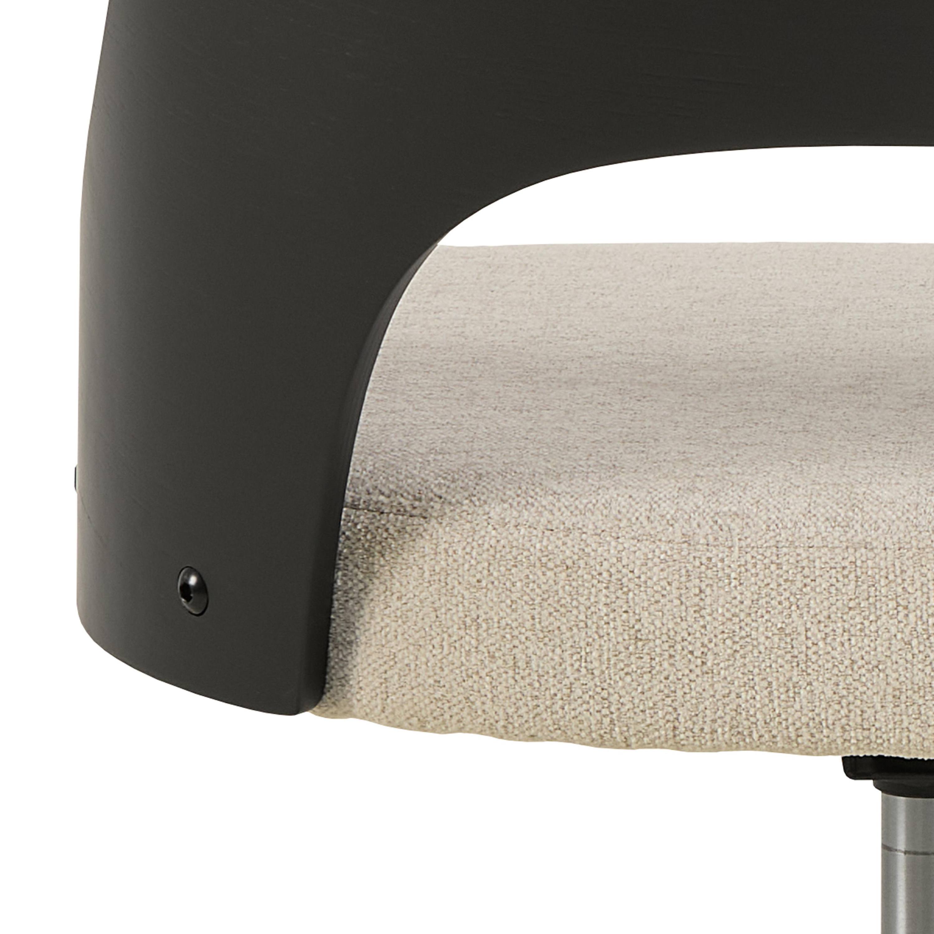 Kvalitný poťah z hladkej tkaniny vyplnený mäkkým polstrovaním a operadlo z dyhovaného duba vám doprajú maximálny komfort. Stolička je výškovo nastaviteľná s päťramenným krížom. Nastaviteľná výška sedu pomocou páčky umožňuje jednoduché prispôsobenie stoličky vašim individuálnym potrebám. Výhodou je aj otočná funkcia.