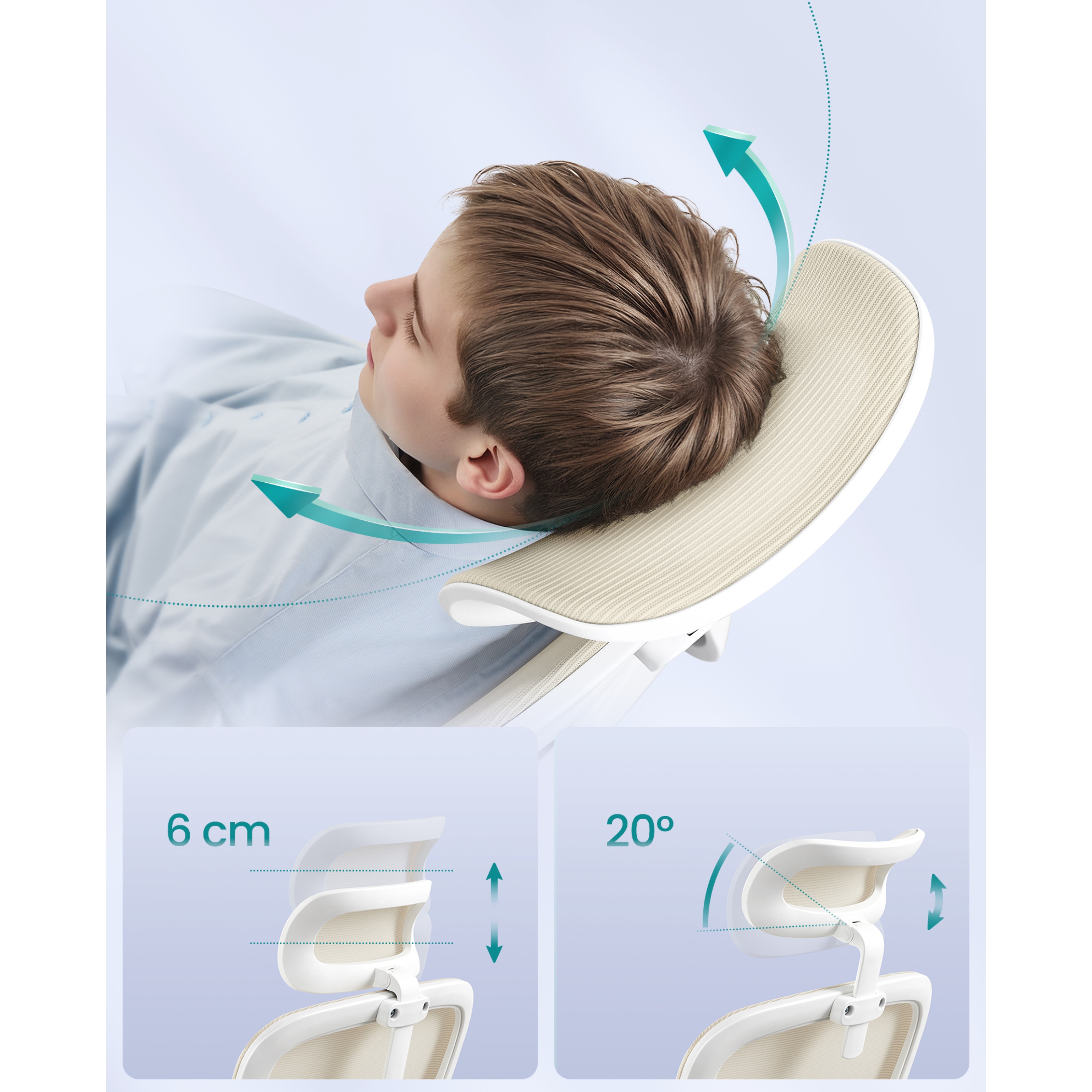 Súčasťou tejto nadčasovej stoličky je potiahnuté sedadlo, ktoré dopĺňa chrbtové operadlo a opierka hlavy z kvalitnej a priedušnej sieťoviny. Ruky si môžete pohodlne oprieť o nastaviteľné podrúčky s mäkkou vrchnou vrstvou. Opierku hlavy a bedrovú opierku je možné nastaviť podľa vašich preferencií pre čo najkomfortnejšie sedenie. Stoličku je možné výškovo nastaviť pomocou plynového piestu, tuhosť hojdania si zase prispôsobíte skrutkou pod sedadlom. Maximálna nosnosť až 120 kg.