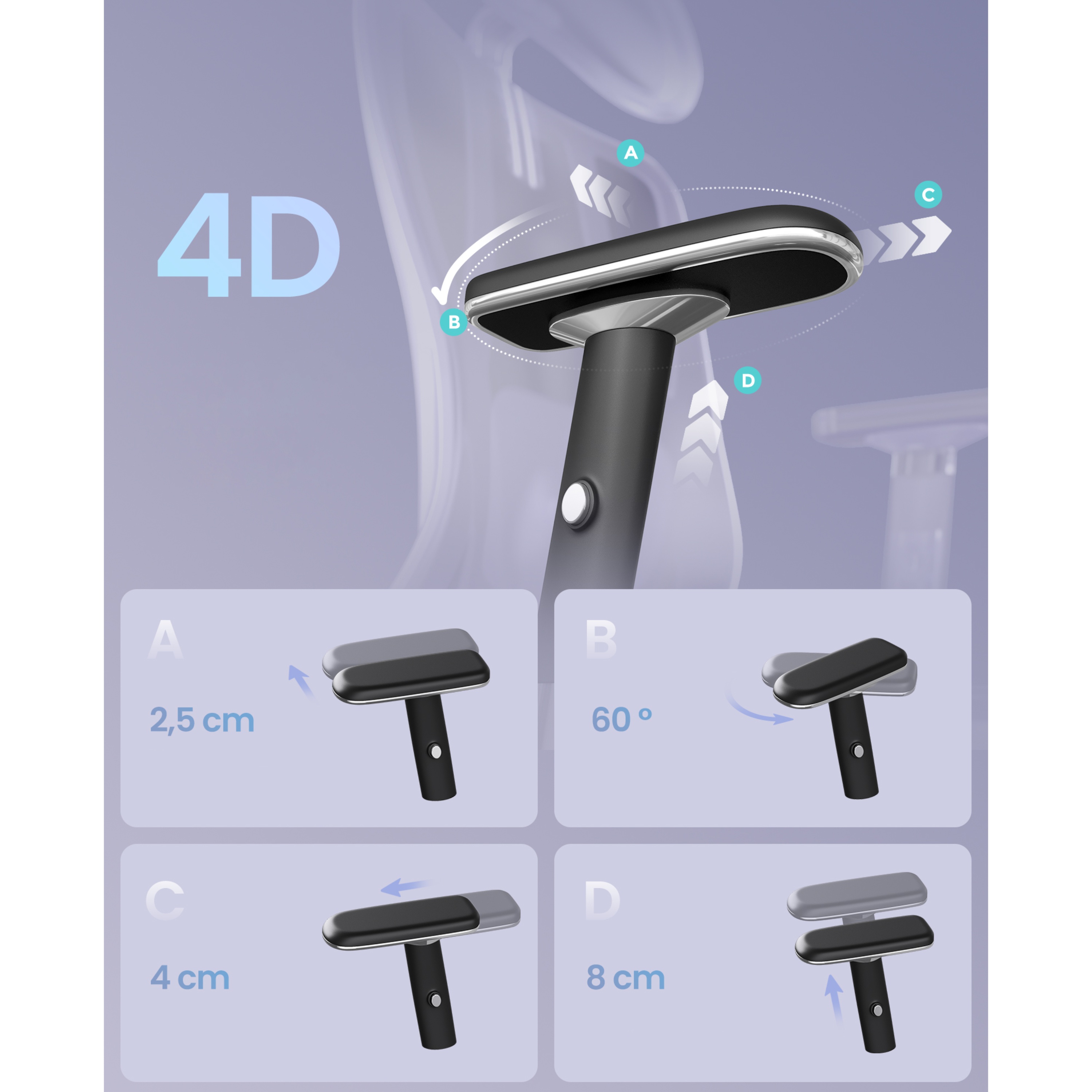 Súčasťou tejto nadčasovej stoličky je potiahnuté sedadlo, ktoré dopĺňa chrbtové operadlo a opierka hlavy z kvalitnej a priedušnej sieťoviny. Ruky si môžete pohodlne oprieť o nastaviteľné podrúčky. Opierku hlavy, chrbtovú a bedrovú opierku je možné nastaviť podľa vašich preferencií pre čo najkomfortnejšie sedenie. Stoličku je možné výškovo nastaviť pomocou plynového piestu. Maximálna nosnosť až 150 kg.