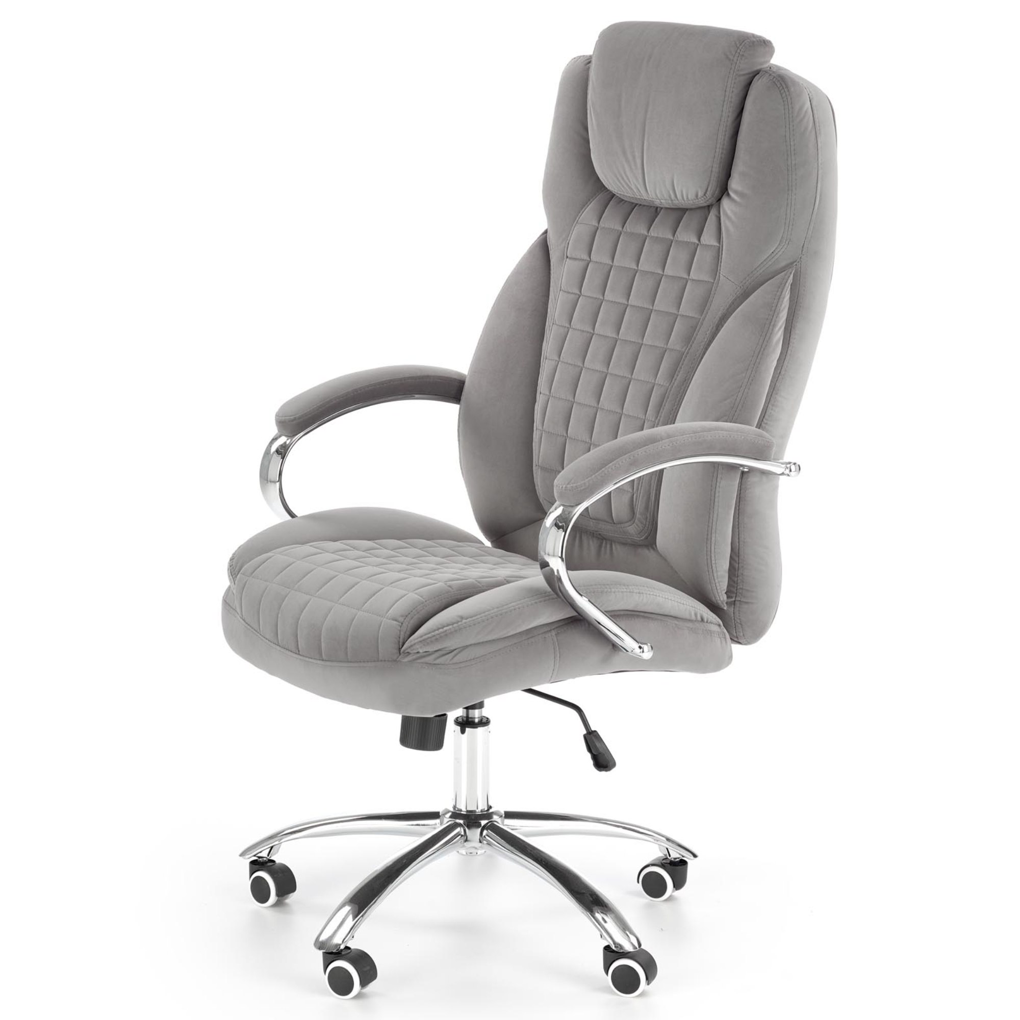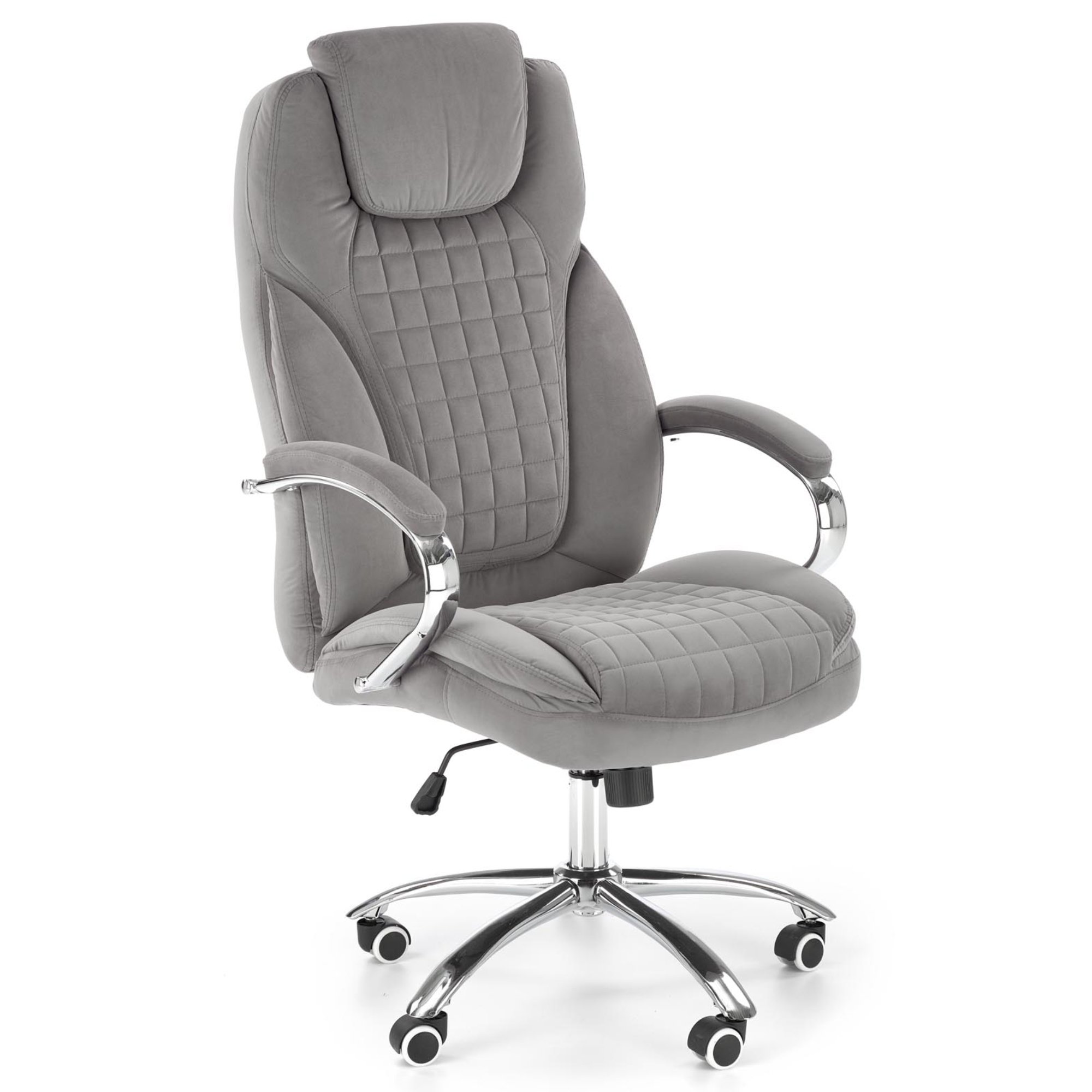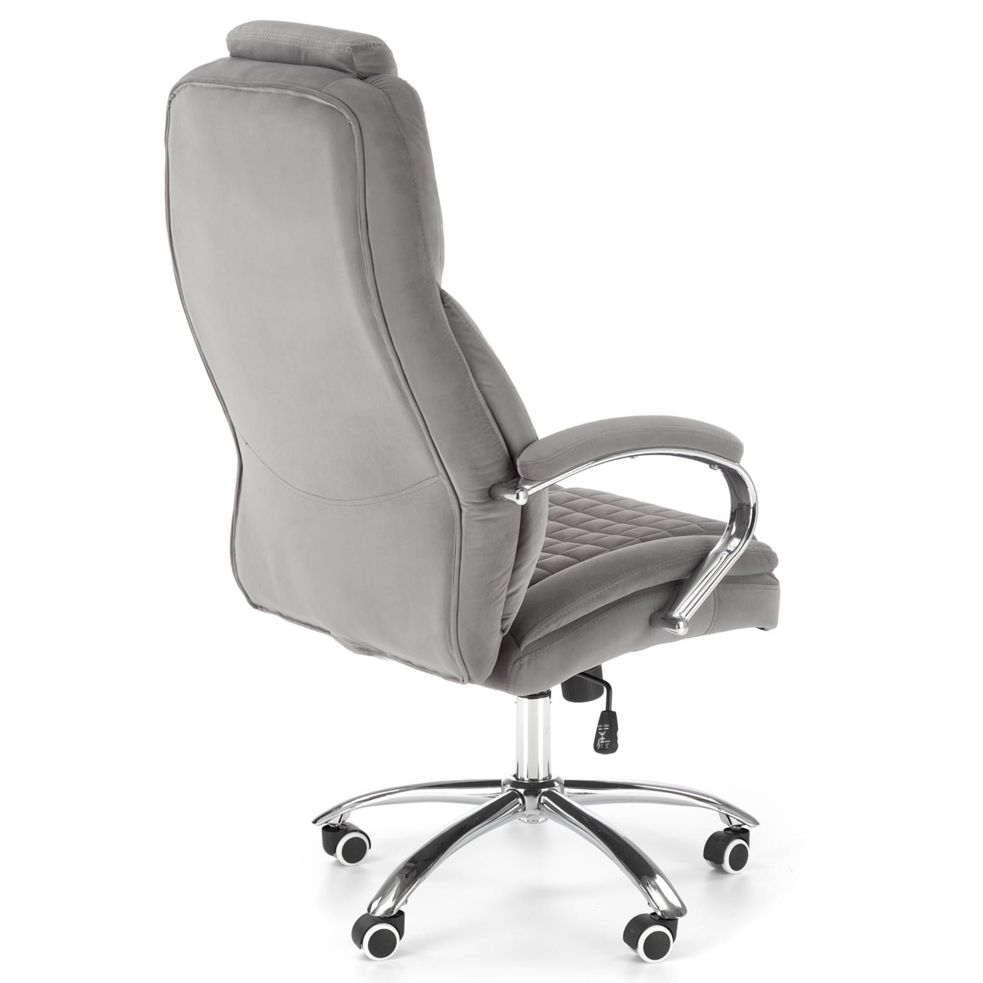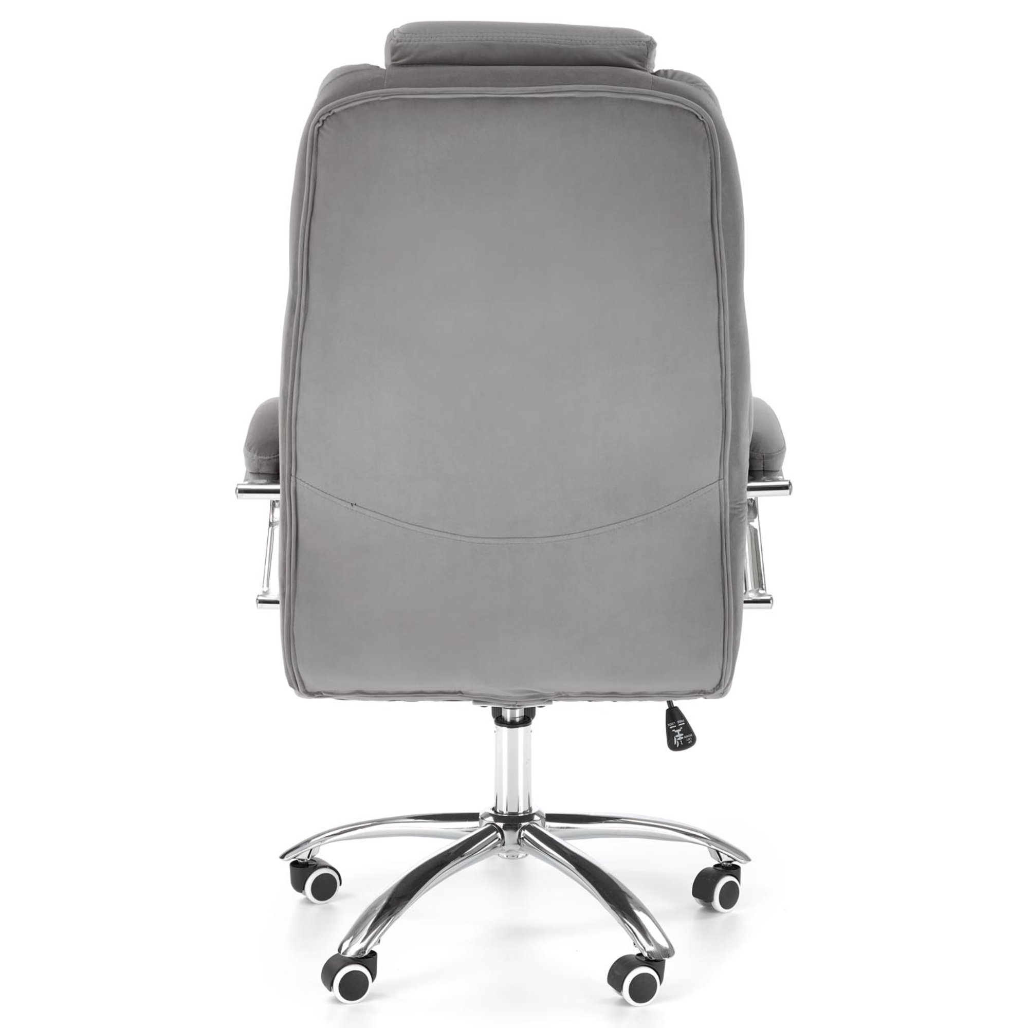 Luxusné kancelárske kreslo KANG 2 vám dopraje maximálny komfort pri každodennej práci u vás v kancelárii, či doma v pracovni. Poťah z hladkej tkaniny zamatového vzhľadu spoločne s mäkkým čalúnením v oblasti sedadla, podrúčok a chrbtovej opierky pridáva na celkovej pohodlnosti. Sivé vyhotovenie pôsobí čistým dojmom a hodí sa tak do akokoľvek zariadeného interiéru. Vďaka pogumovaným kolieskam je vhodné aj na tvrdé podlahy. Kreslo ďalej disponuje hojdacím mechanizmom a výškovo nastaviteľným sedadlom, tuhosť hojdania si prispôsobíte dolnou skrutkou. Maximálna nosnosť 120 kg.