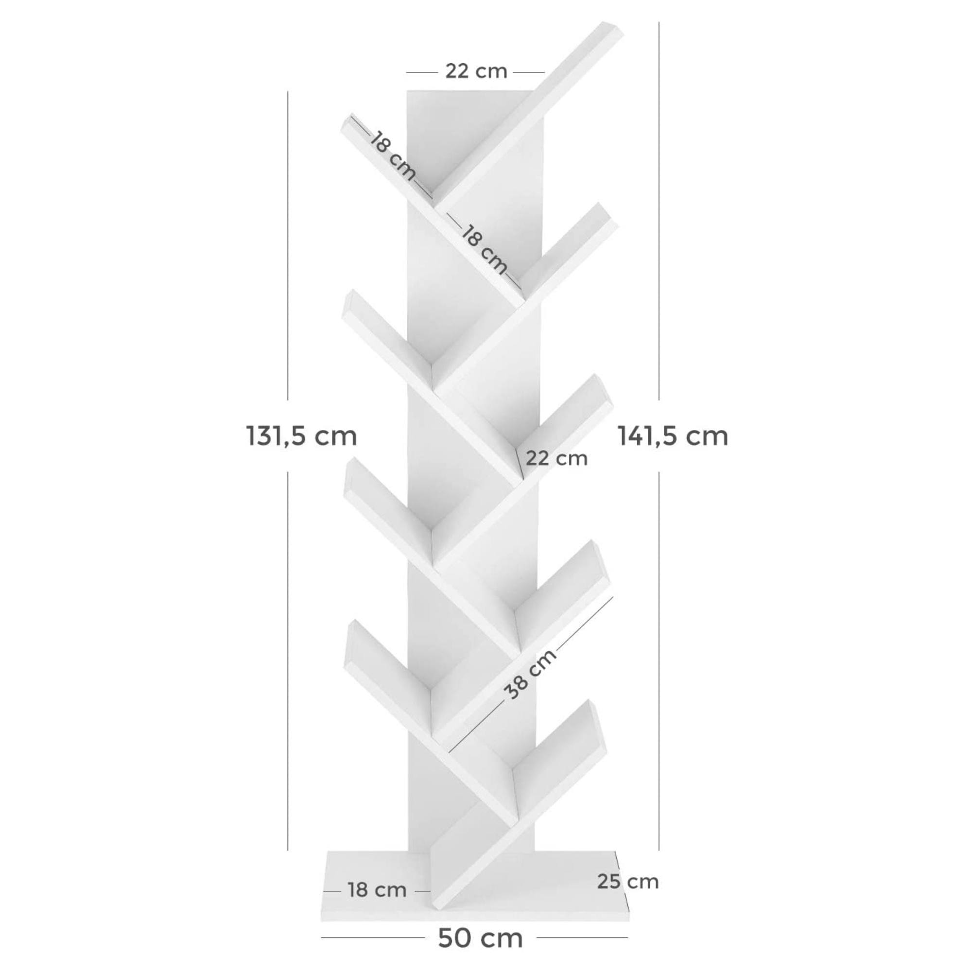 Originálny dizajn knižnice UDDE nemožno prehliadnuť. Tento jedinečný čitateľský strom poskytuje osem rovnakých vetiev vytvárajúcich police, kde ponúka dostatok úložného priestoru s nenáročnosťou na podlahovú plochu. Je ideálnym doplnkom malých interiérov. Aj napriek dobrej stabilite ho odporúčame pripevniť ku stene. Každá z políc dokáže uniesť váhu až 10 kg. Materiálom je drevotrieska a vďaka svojmu vyhotoveniu nebude ťažké knižnicu zakomponovať do už zariadených izieb v rôznych štýloch.