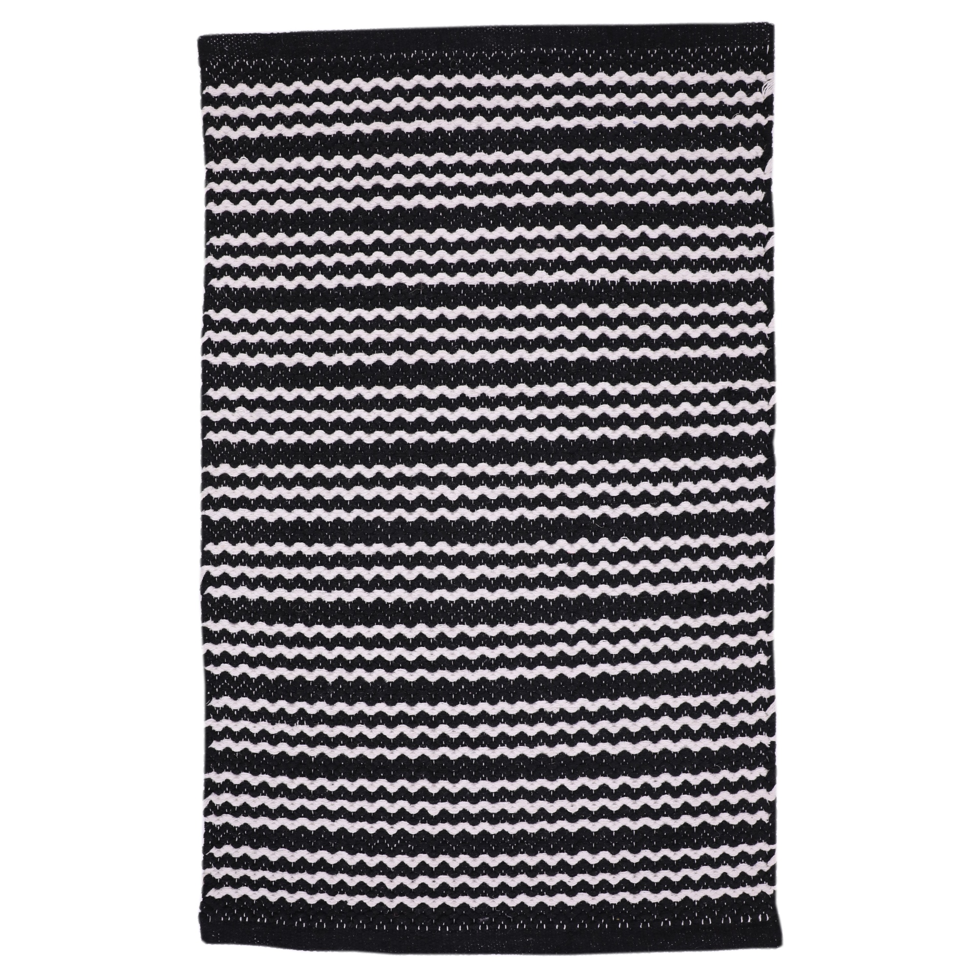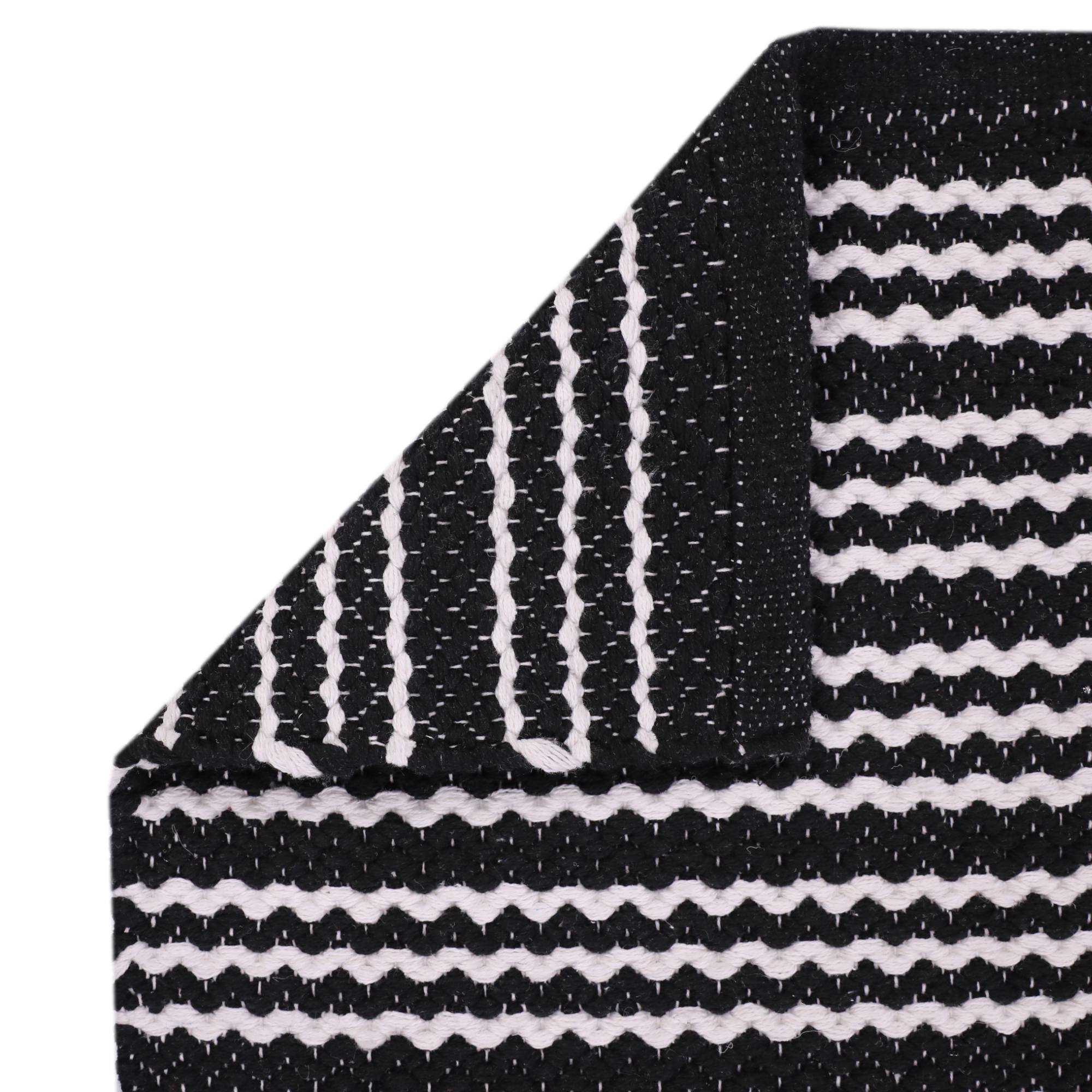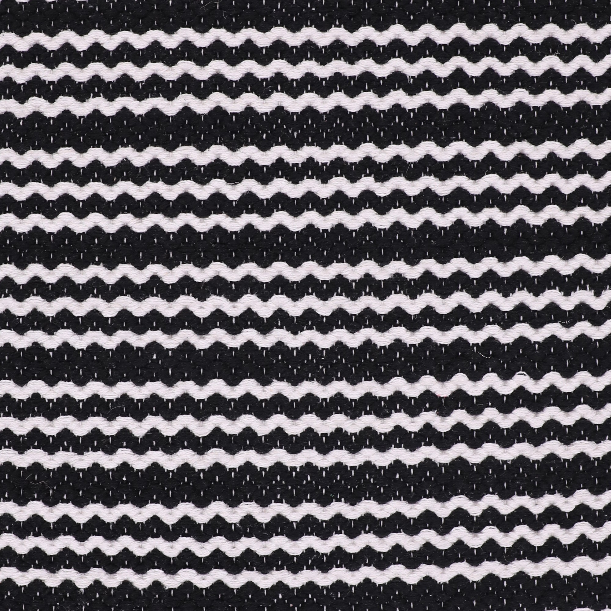 Koberec je strojovo tkaný a vyrobený zo zmesi 90% bavlny a 10% polyesteru. Bavlna sa vyznačuje priedušnosťou a mäkkosťou. Polyester zvyšuje pevnosť a farebnú stálosť. Odporúčame jemné ručné čistenie a nebieliť. Jeho jednoduchý pletený vzor v kontrastnej čiernobielej farbe oživí každý interiér. Koberec možno využiť v obývačke, spálni, predsieni či jedálni.