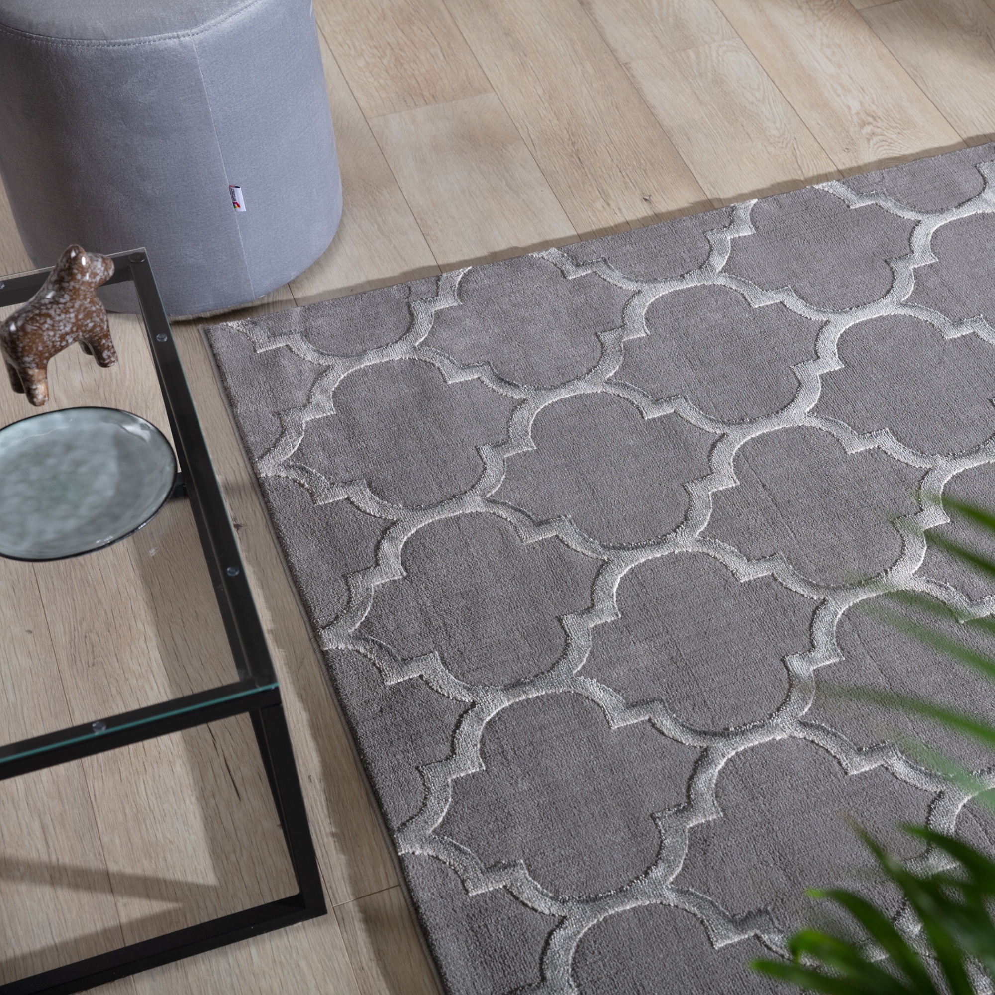 Koberec ELSHER GREY vnesie orientálnu atmosféru do každého interiéru. Vďaka tomuto riešeniu sa symetrický vzor dokonale hodí do svetlých, priestranných izieb s elegantným nábytkom.