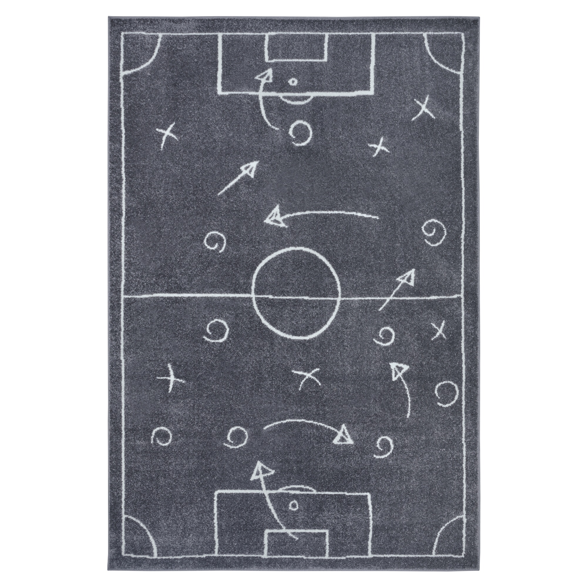 Koberec je strojovo všívaný a vyrobený vo vysoko kvalitnom spracovaní. Strihaný vlas s výškou 5 mm je vyrobený zo 100% polypropylénu. Ponúka mäkký a pohodlný povrch, ktorý poslúži ako podložka na hranie aj pekný doplnok detskej izby. Svojím motívom futbalového ihriska doplneného o nákresy taktiky poteší všetkých malých futbalových fanúšikov. Bude praktickým doplnkom a zábavnou hrou v jednom.