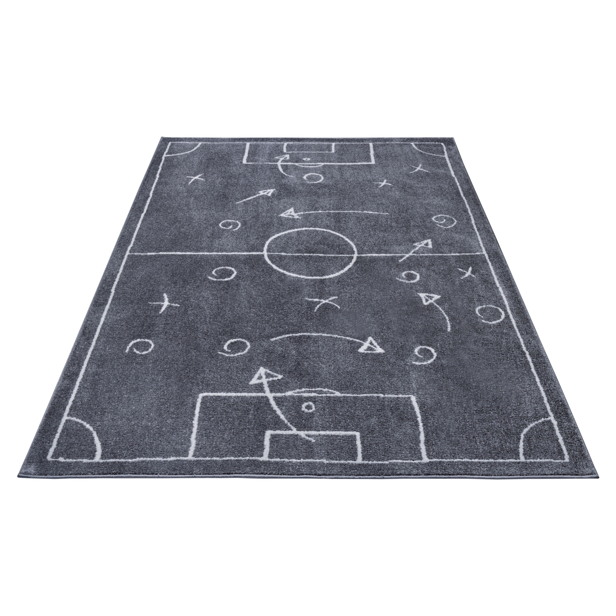 Koberec je strojovo všívaný a vyrobený vo vysoko kvalitnom spracovaní. Strihaný vlas s výškou 5 mm je vyrobený zo 100% polypropylénu. Ponúka mäkký a pohodlný povrch, ktorý poslúži ako podložka na hranie aj pekný doplnok detskej izby. Svojím motívom futbalového ihriska doplneného o nákresy taktiky poteší všetkých malých futbalových fanúšikov. Bude praktickým doplnkom a zábavnou hrou v jednom.
