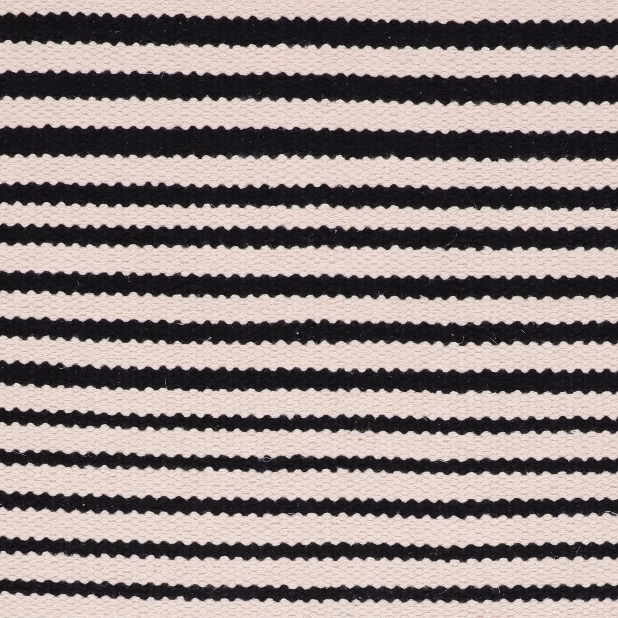 Koberec je strojovo tkaný a vyrobený zo zmesi 90 % bavlny a 10 % polyesteru. Bavlna sa vyznačuje priedušnosťou a mäkkosťou. Polyester zvyšuje pevnosť a farebnú stálosť. Odporúčame jemné ručné čistenie a nebieliť. Jeho jednoduchý pletený vzor v kontrastnej čierno-krémovej farbe oživí každý interiér. Koberec možno využiť v obývačke, spálni, predsieni či jedálni.
