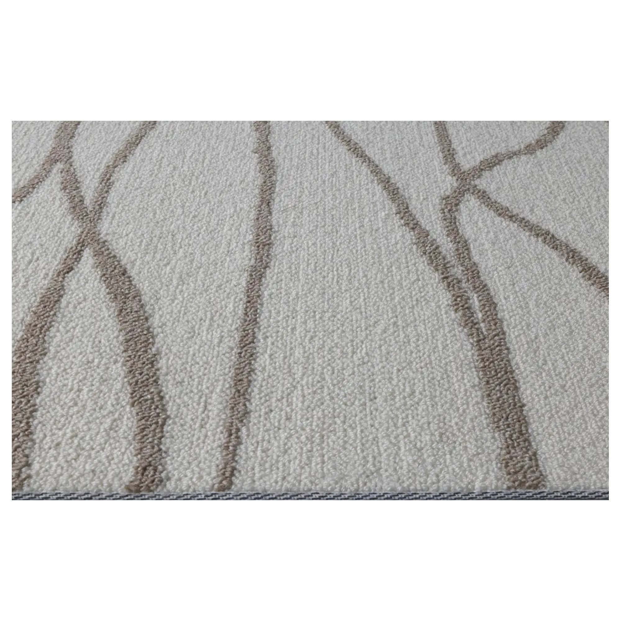 Zaujme svojím jednoduchým vzorom prepletených línií, ktorý krásne vynikne na bielom pozadí. Je strojovo všívaný s výškou vlasu 4 mm so zložením 70% polyesteru a 30% polypropylénu. Polyester zabezpečuje kobercu lepšiu svetlostálosť, vďaka ktorej zostávajú farby živé po dlhšiu dobu. Polypropylén zvyšuje odolnosť voči vlhkosti a škvrnám.