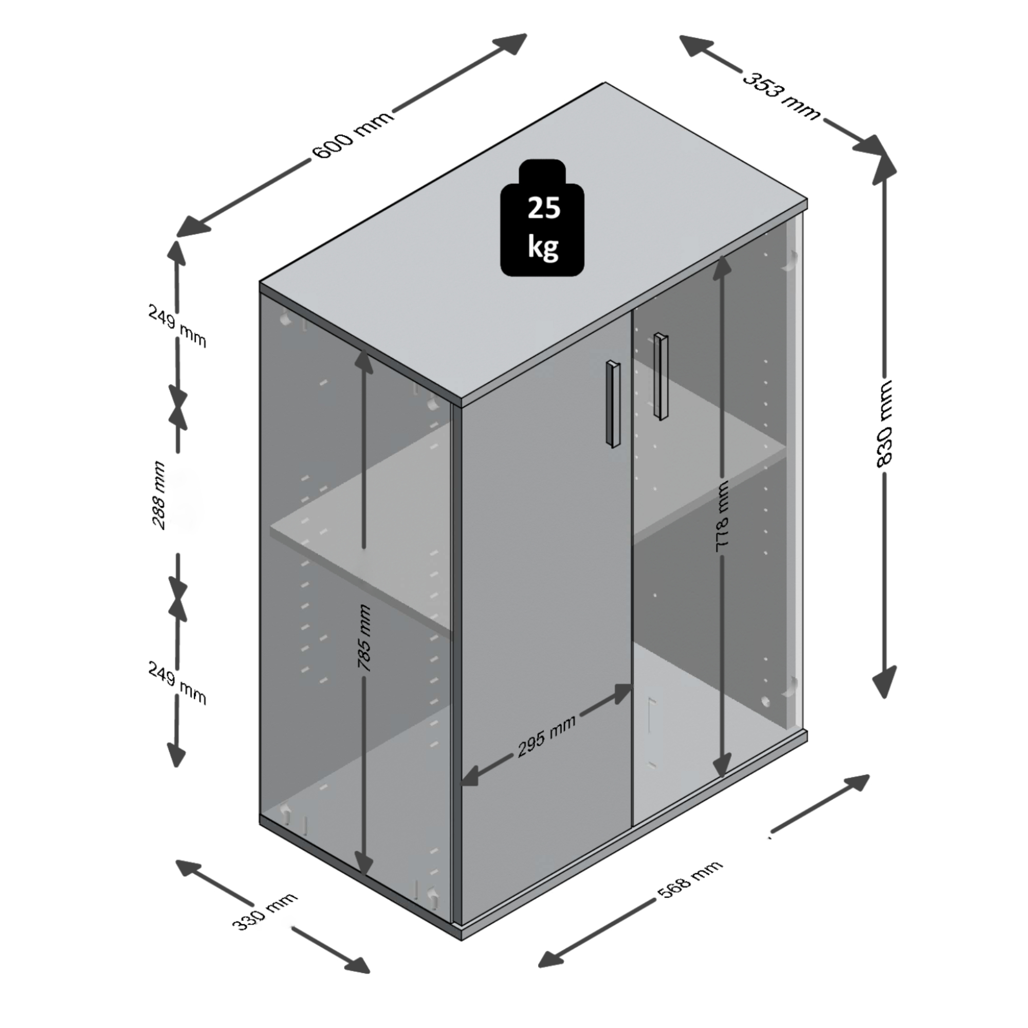 Za jej dvierkami, ktoré sú pre lepšiu manipuláciu vybavené plastovými rúčkami, sa ukrýva 1 vložená polica.