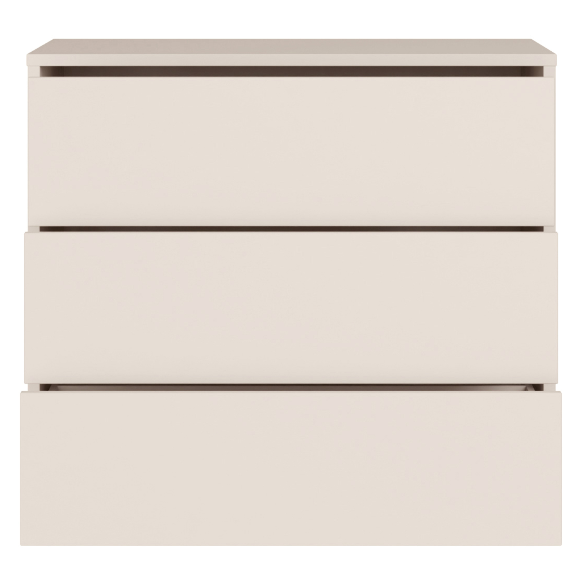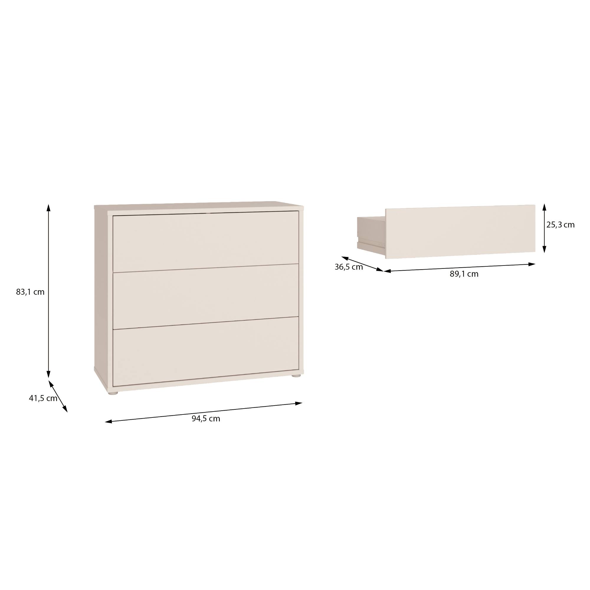 Poskytuje dostatok priestoru na uloženie oblečenia, dokumentov aj ďalších drobností, ktoré chcete mať prehľadne usporiadané. Je vybavená 3 zásuvkami. Disponuje systémom push-to-open, vďaka ktorému zásuvky ľahko otvoríte jednoduchým stlačením. Vyhotovenie bez úchytiek podčiarkuje jej čistý vzhľad, ktorý elegantne doplní obývaciu izbu aj spálňu. Je vyrobená z laminovaného dreveného materiálu, ktorý sa vyznačuje jednoduchou údržbou.