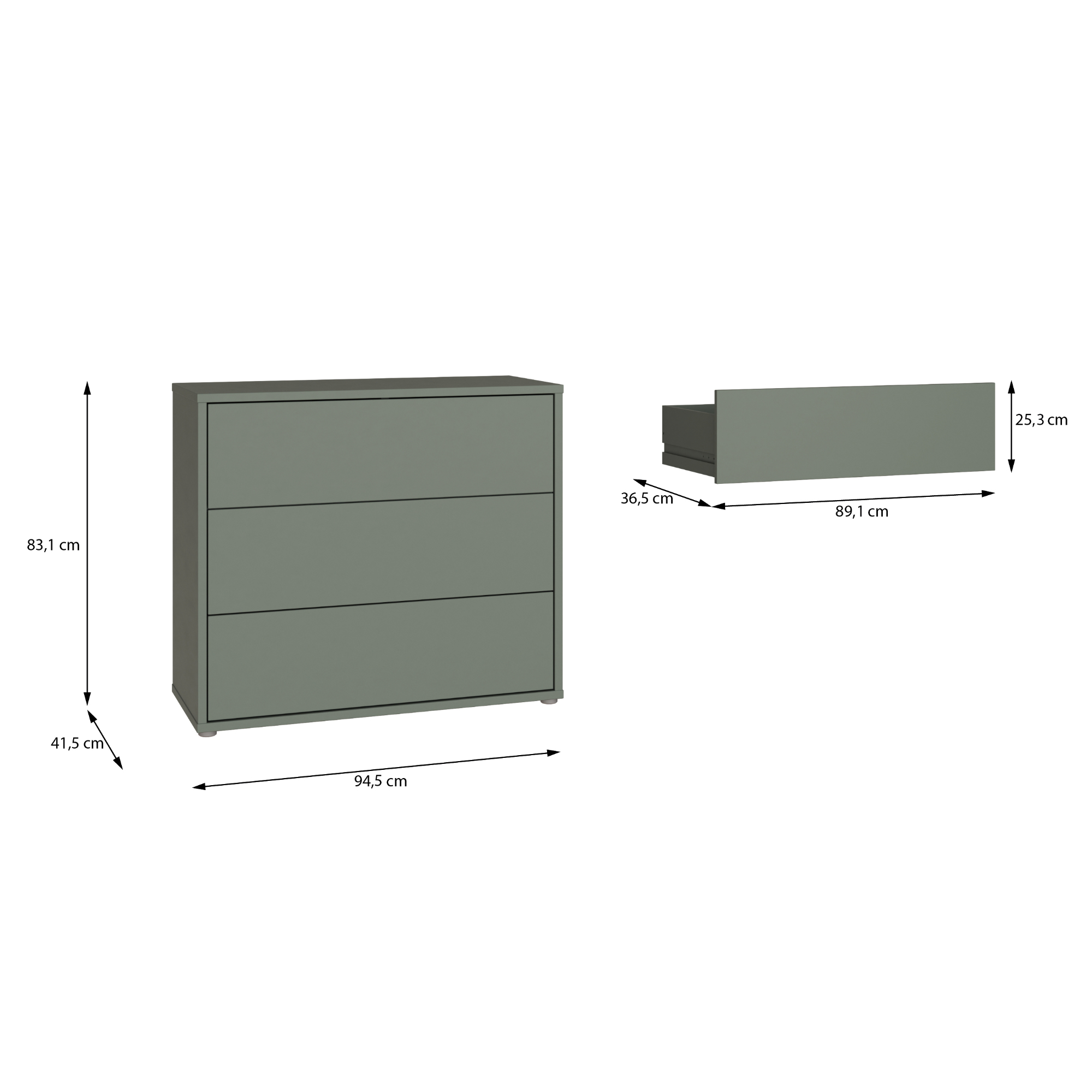 Poskytuje dostatok priestoru na uloženie oblečenia, dokumentov aj ďalších drobností, ktoré chcete mať prehľadne usporiadané. Je vybavená 3 zásuvkami. Disponuje systémom push-to-open, vďaka ktorému zásuvky ľahko otvoríte jednoduchým stlačením. Vyhotovenie bez úchytiek podčiarkuje jej čistý vzhľad, ktorý elegantne doplní obývaciu izbu aj spálňu. Je vyrobená z laminovaného dreveného materiálu, ktorý sa vyznačuje jednoduchou údržbou.