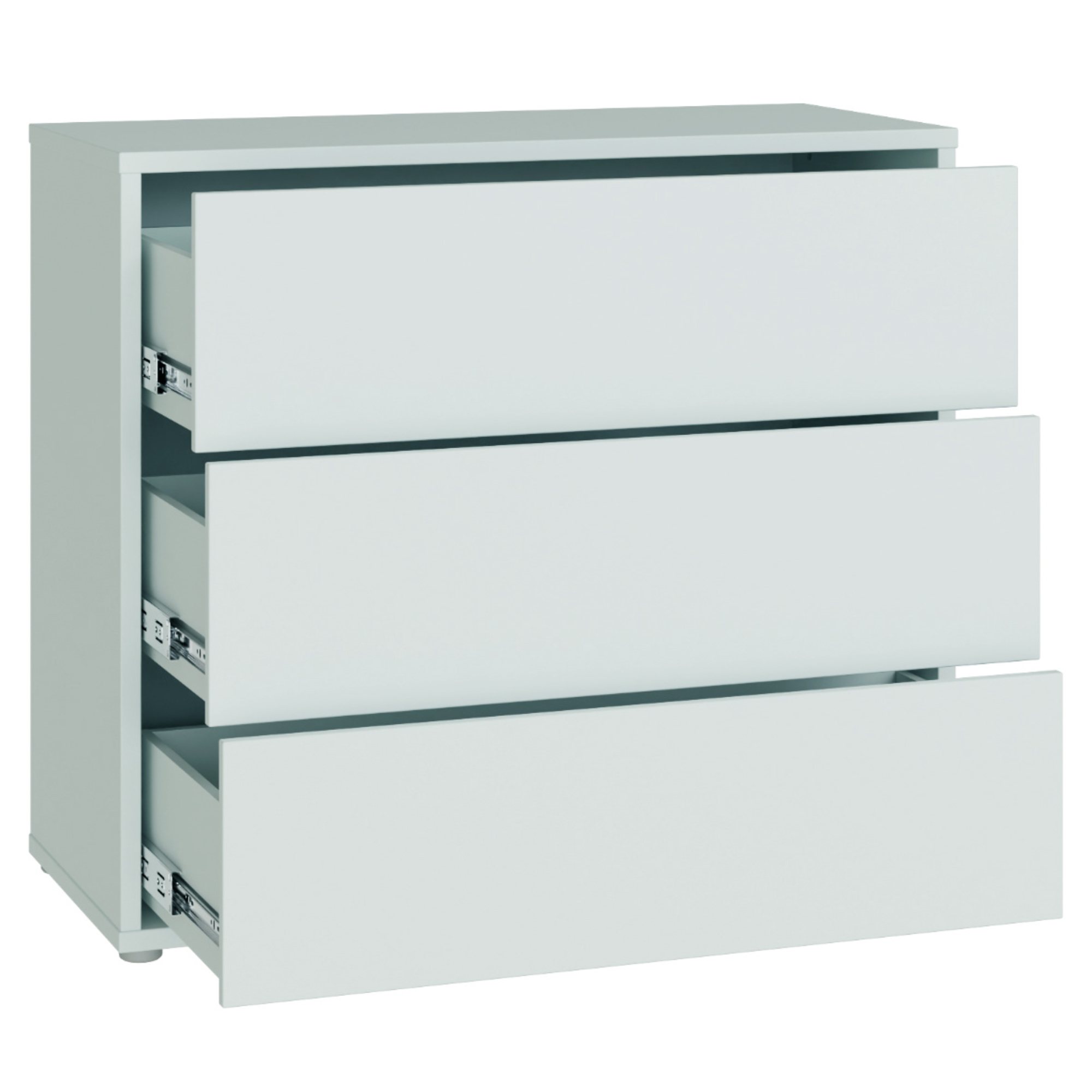 Poskytuje dostatok priestoru na uloženie oblečenia, dokumentov aj ďalších drobností, ktoré chcete mať prehľadne usporiadané. Je vybavená 3 zásuvkami. Disponuje systémom push-to-open, vďaka ktorému zásuvky ľahko otvoríte jednoduchým stlačením. Vyhotovenie bez úchytiek podčiarkuje jej čistý vzhľad, ktorý elegantne doplní obývaciu izbu aj spálňu. Je vyrobená z laminovaného dreveného materiálu, ktorý sa vyznačuje jednoduchou údržbou.