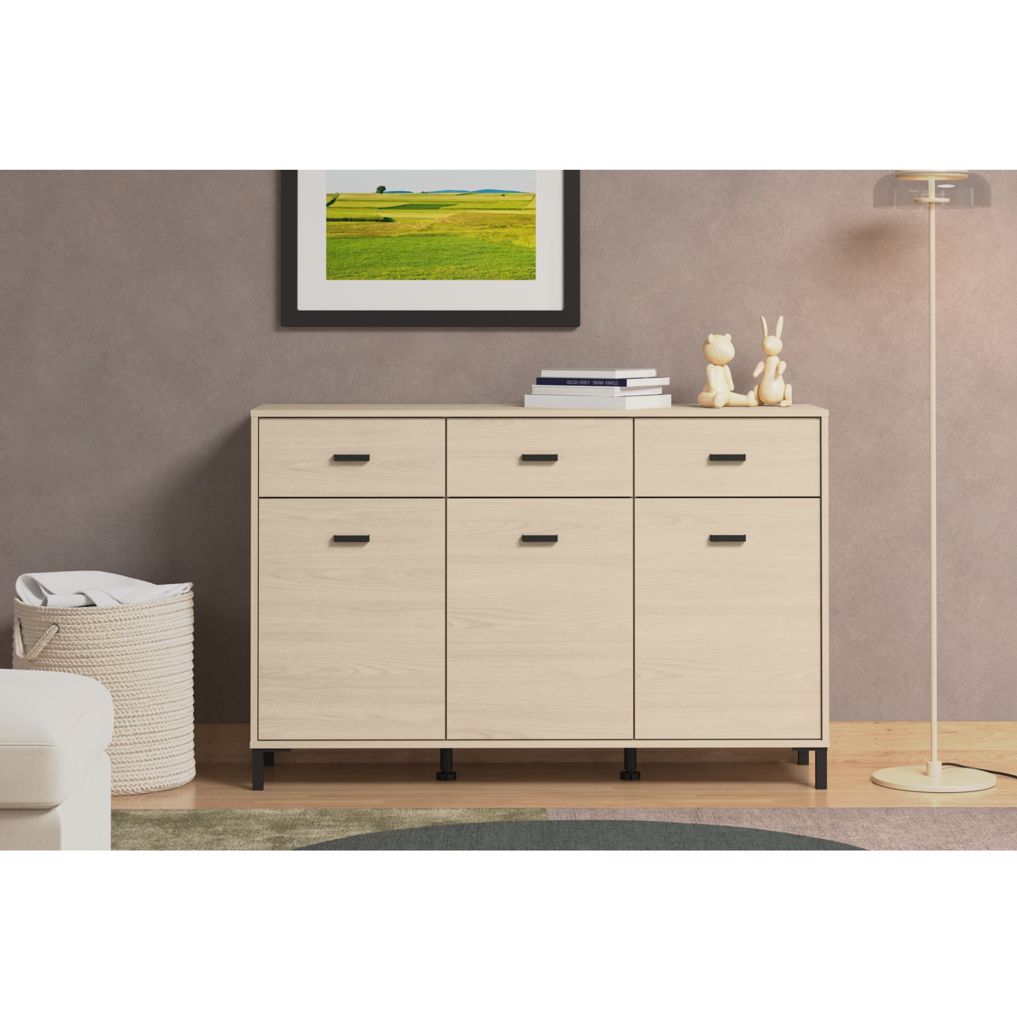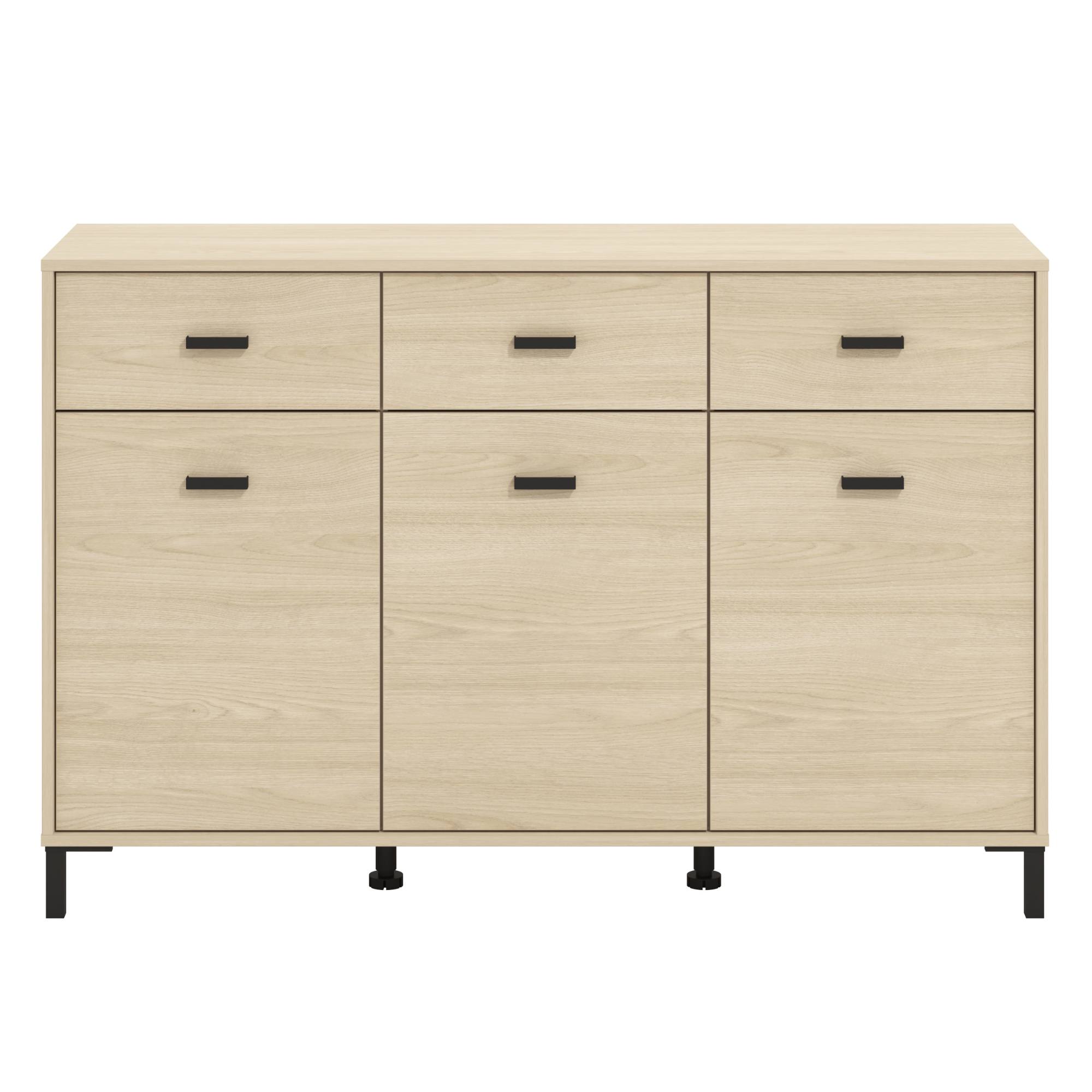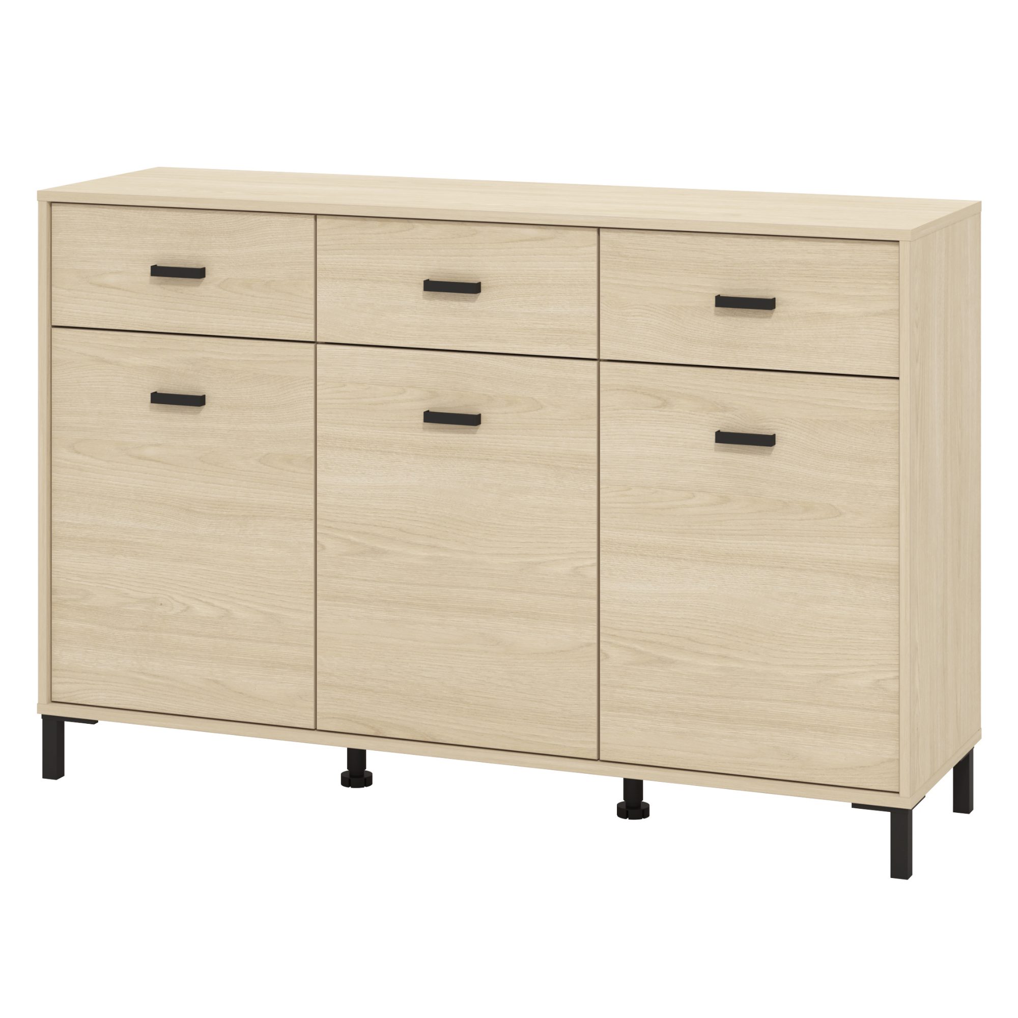 Na komode ARABELA oceníte aj dostatok úložného priestoru. Jej súčasťou sú 3 zásuvky a 3 vložené police, ktoré sa nachádzajú za dvierkami. Aby sa s dvierkami aj zásuvkami ľahšie manipulovalo, sú vybavené praktickými rúčkami.