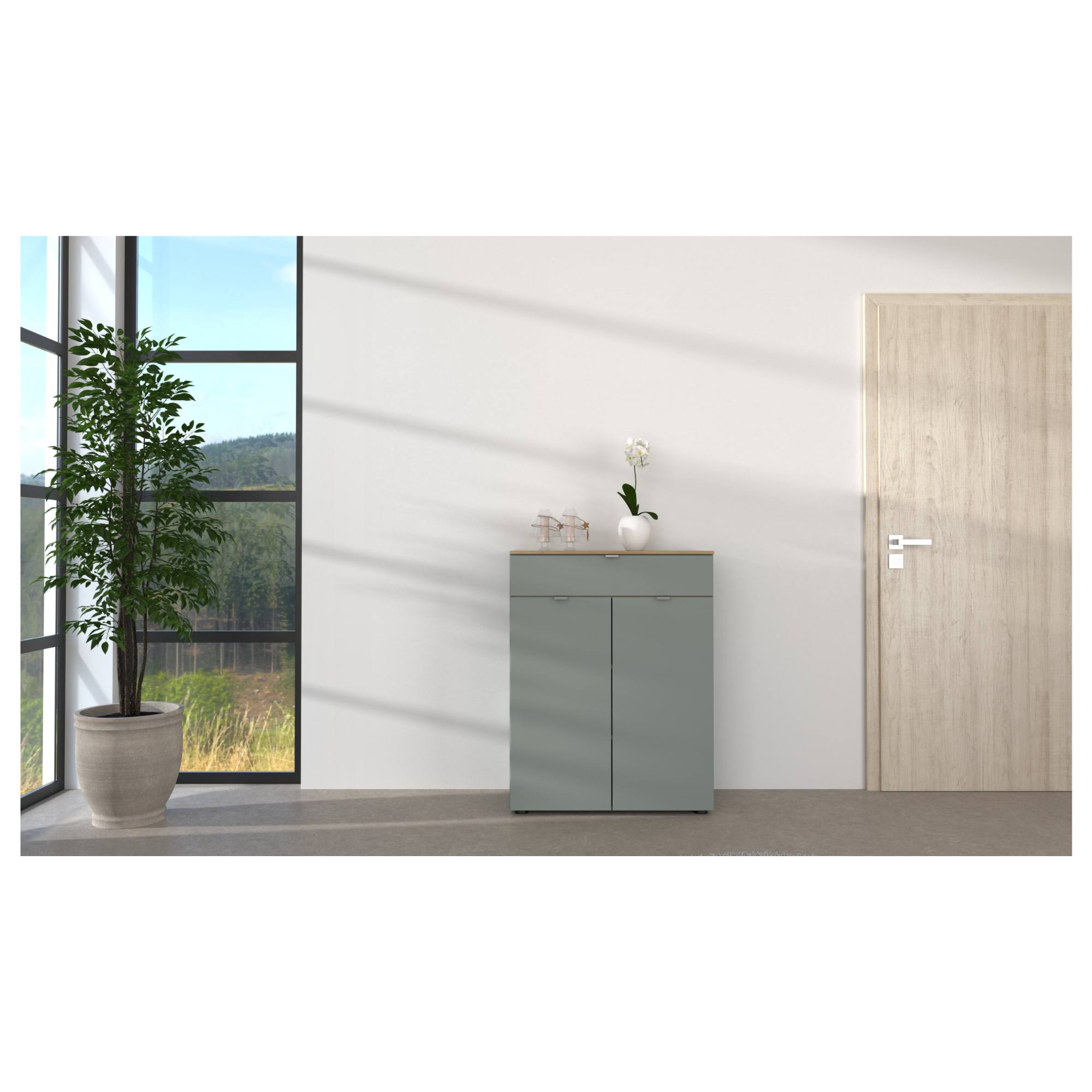 Komoda BARI 1 - trstinovozelená/dub artisan