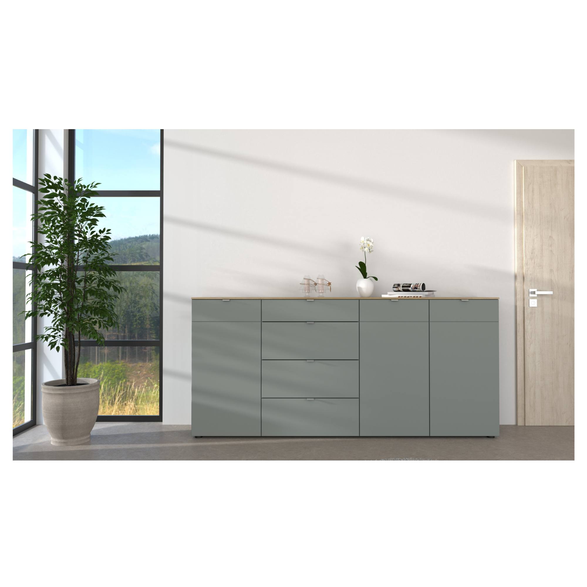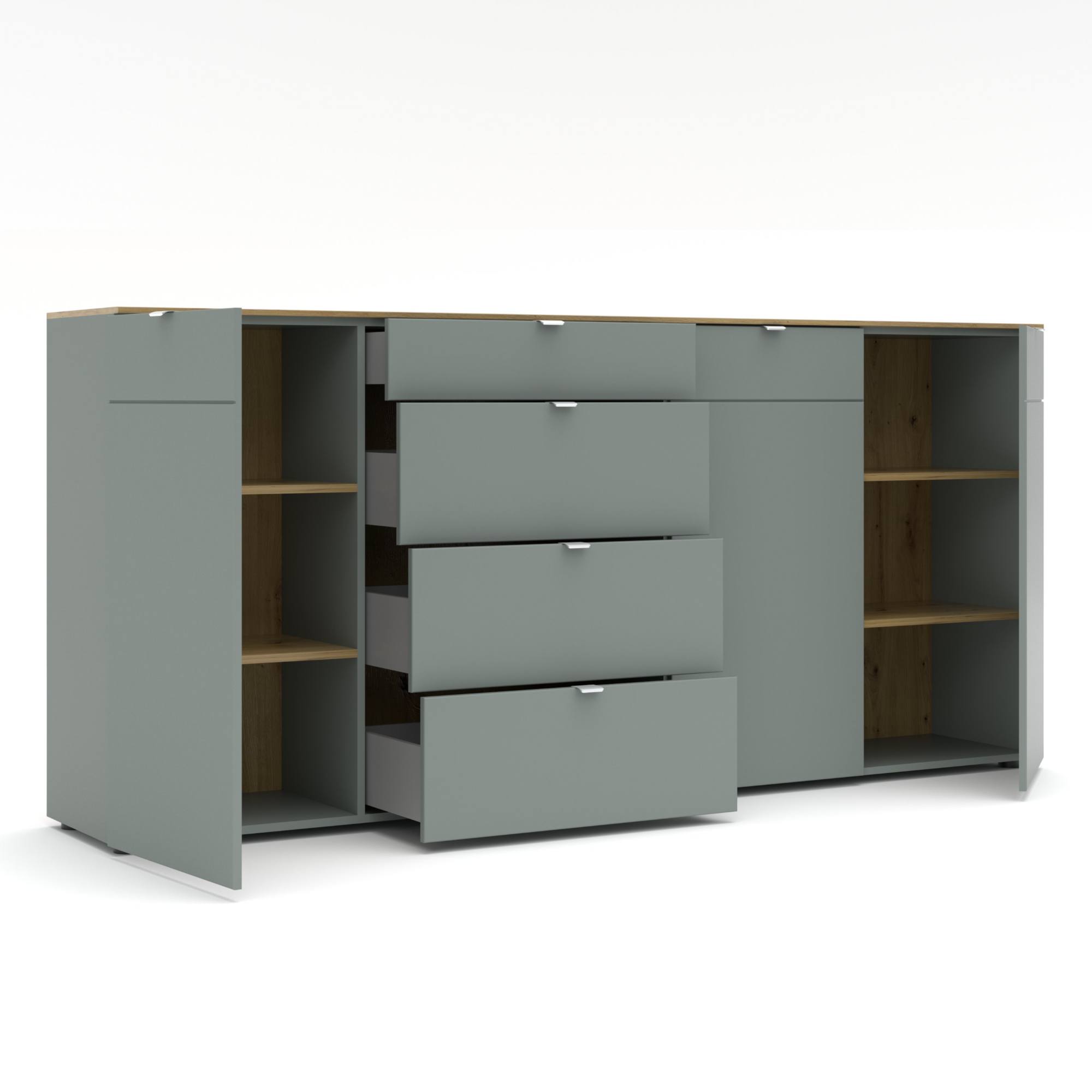 Komoda BARI 3 - trstinovozelená/dub artisan