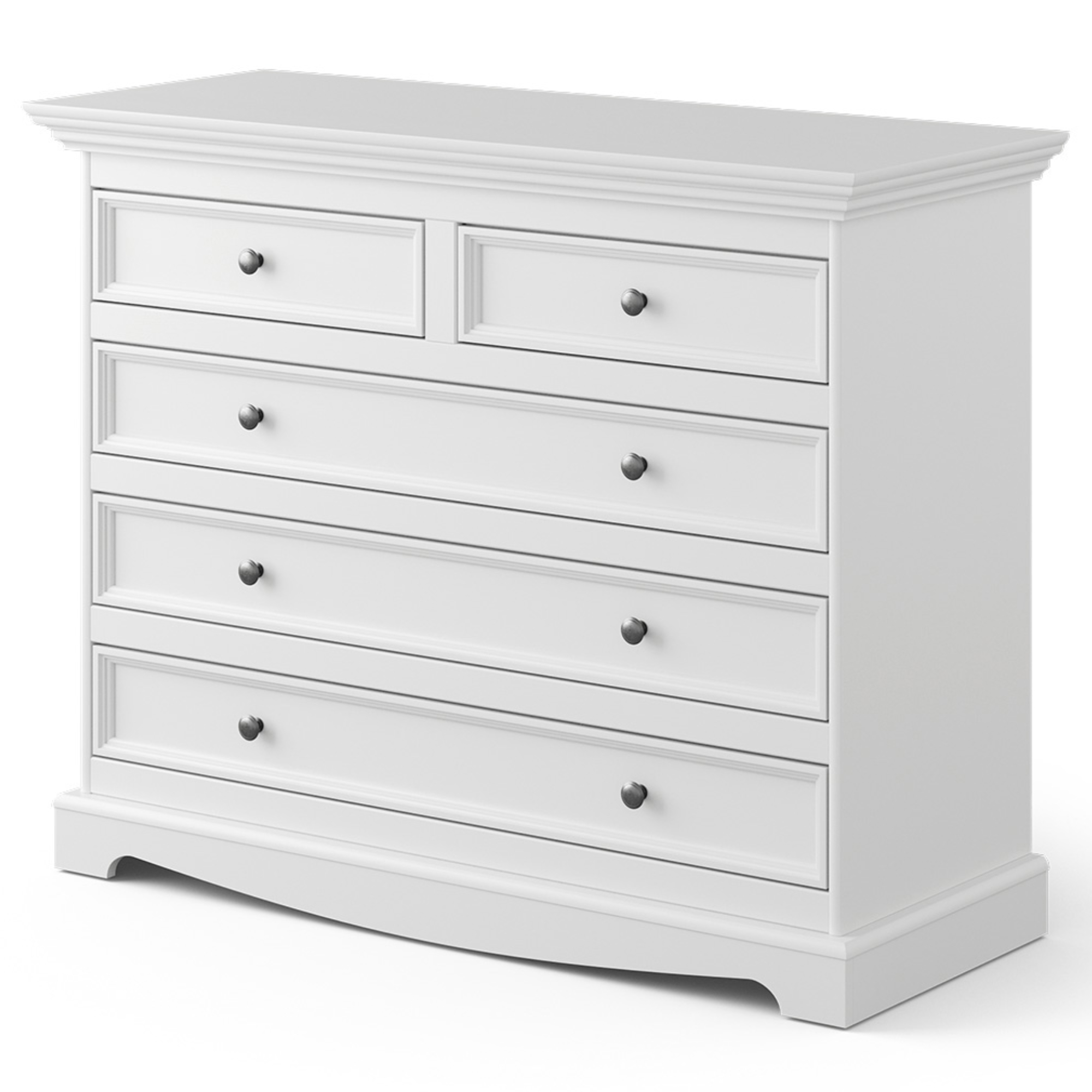 Komoda BELLU 5S sa vyznačuje ozdobnými prvkami zdôrazňujúcimi charakter provensálskeho štýlu. Použité drevo fínskej borovice sa vyznačuje vysokou plasticitou a mäkkosťou. Ekologické drevo borovice je ľahko spracovateľné, a pritom odolné.
