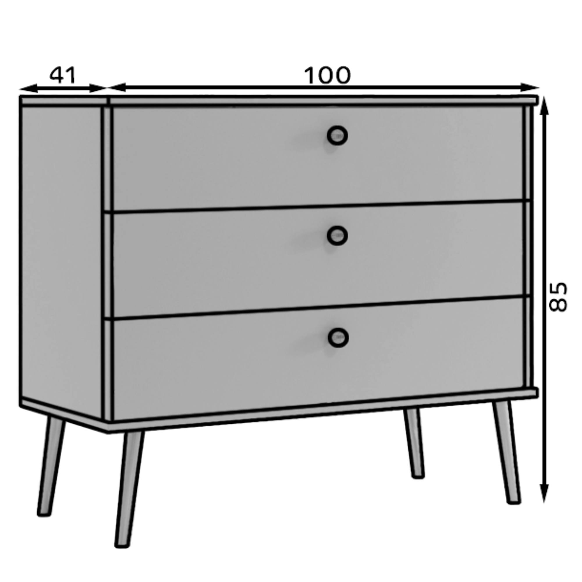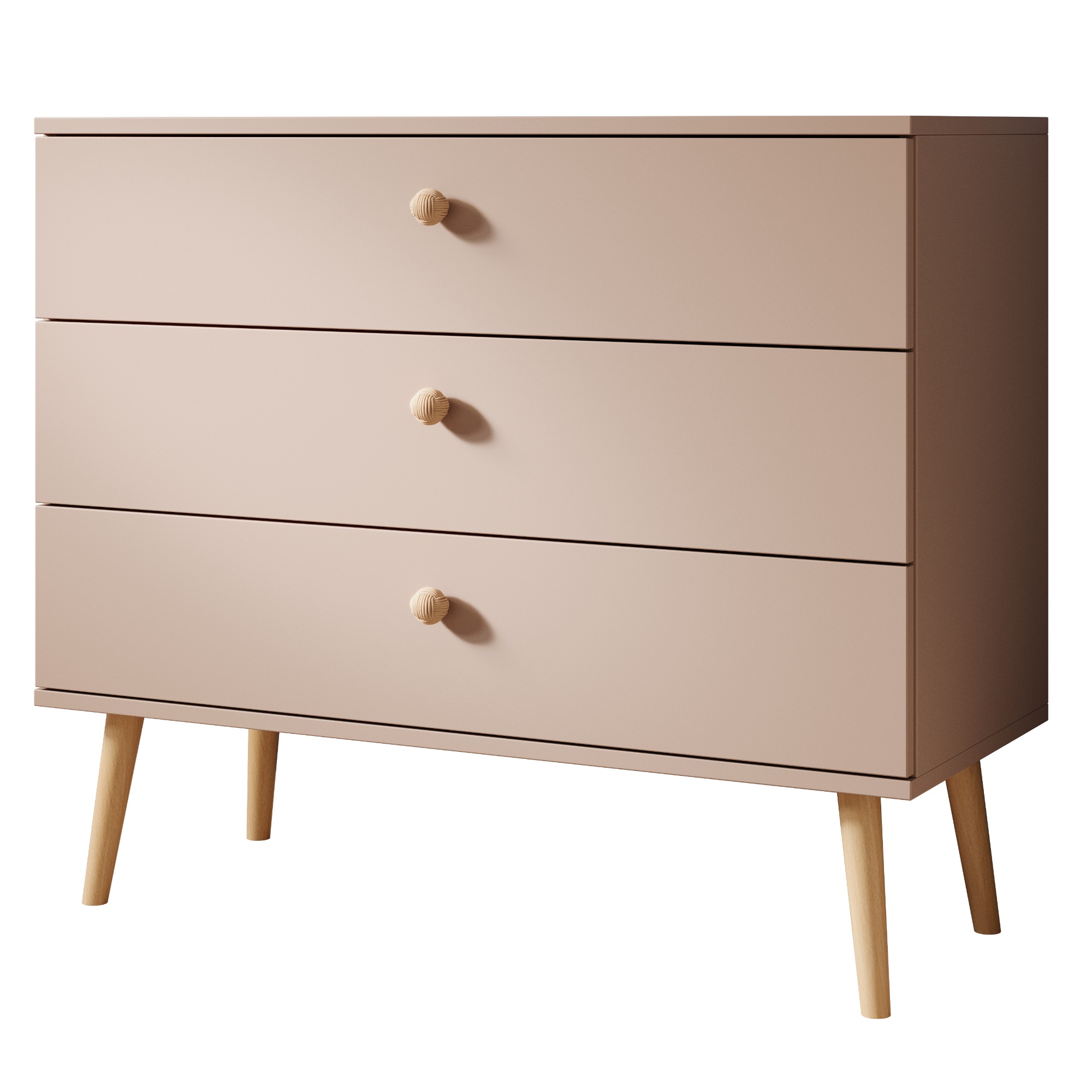 Vďaka 3 zásuvkám ponúka komoda dostatok úložného priestoru. Aby sa so zásuvkami dobre manipulovalo, sú vybavené originálnymi šnúrkovými rúčkami.