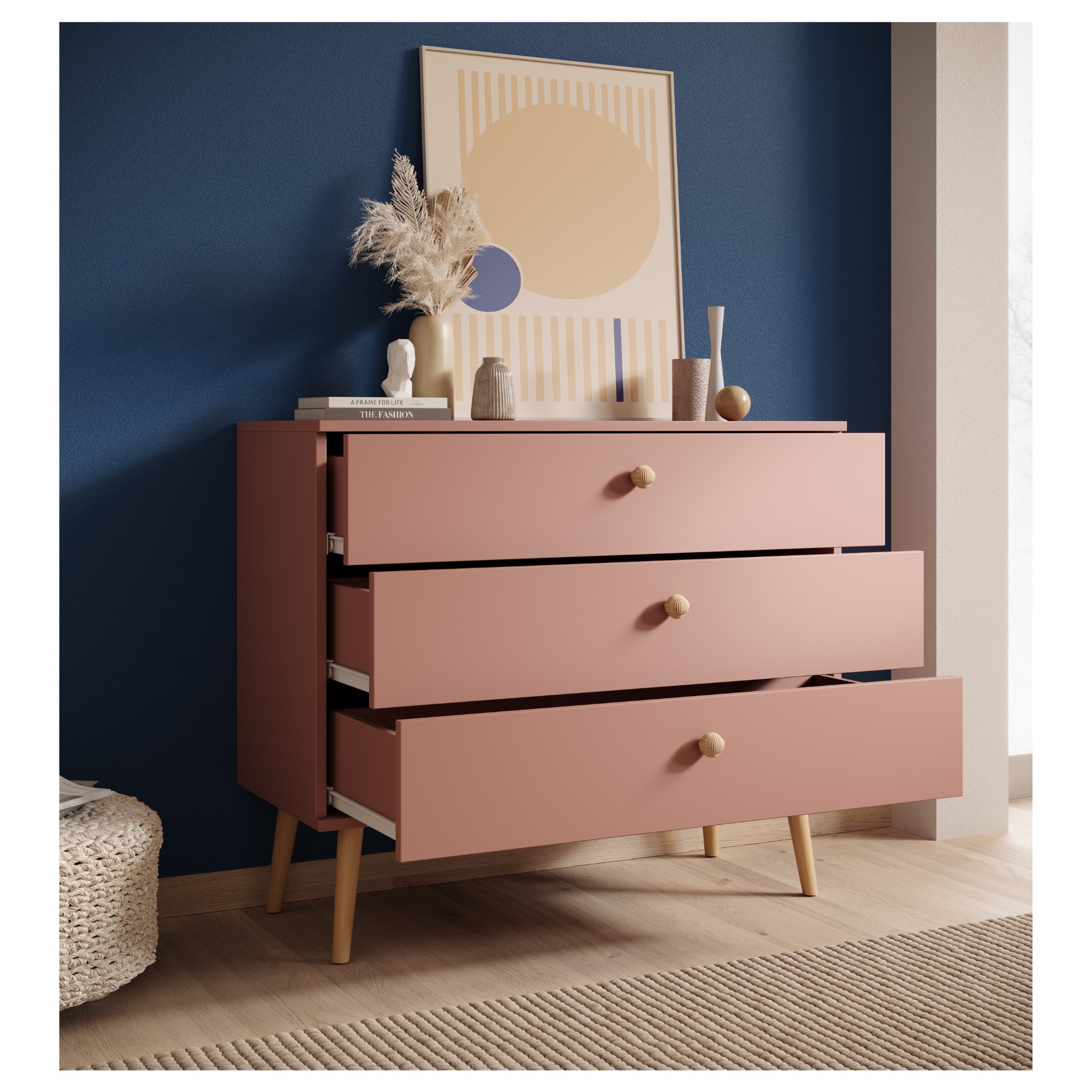 Vďaka 3 zásuvkám ponúka komoda dostatok úložného priestoru. Aby sa so zásuvkami dobre manipulovalo, sú vybavené originálnymi šnúrkovými rúčkami.