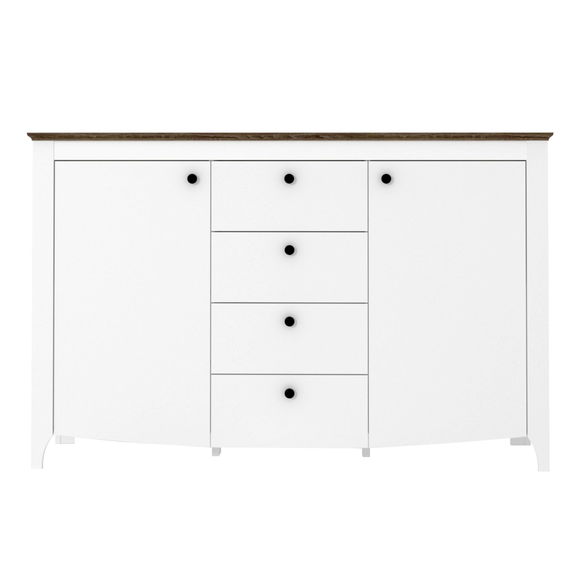 Komoda vám ponúkne dostatok úložného priestoru. Disponuje 4 zásuvkami a 2 vloženými policami ukrytými za dvierkami, a tak do nej môžete uložiť všetky predmety, ktoré potrebujete mať po ruke.