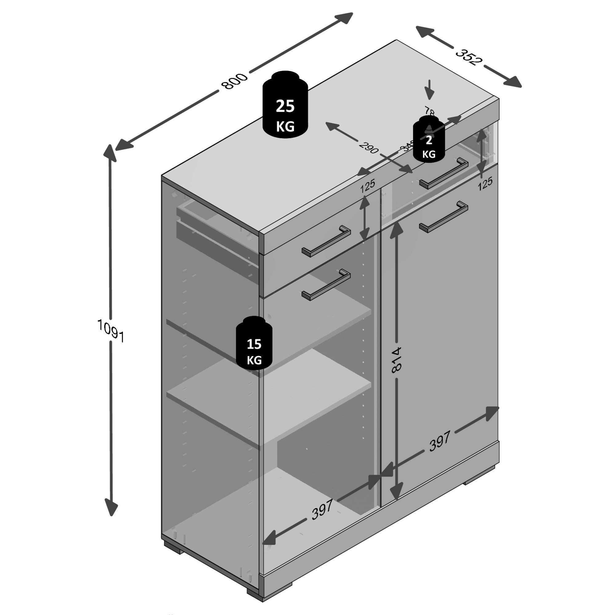 - Rozmer komody: Široká - nad 80 cm, Vysoká - nad 100 cm