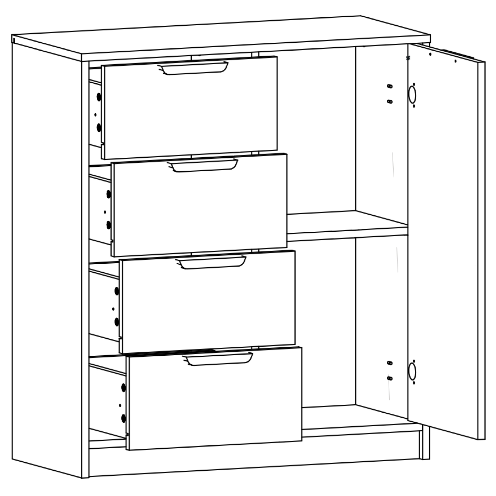 - 4 zásuvky a 1 vnitřní police