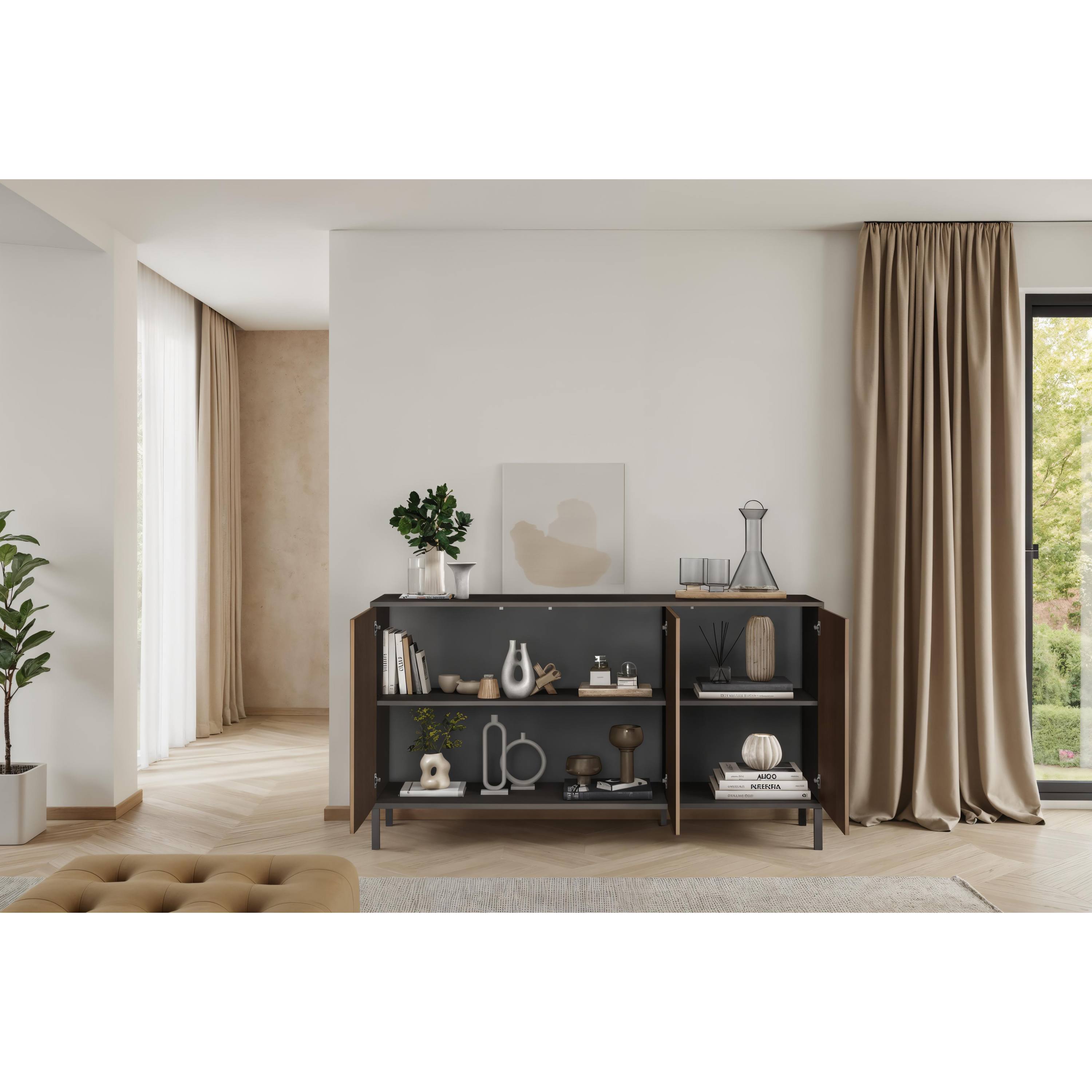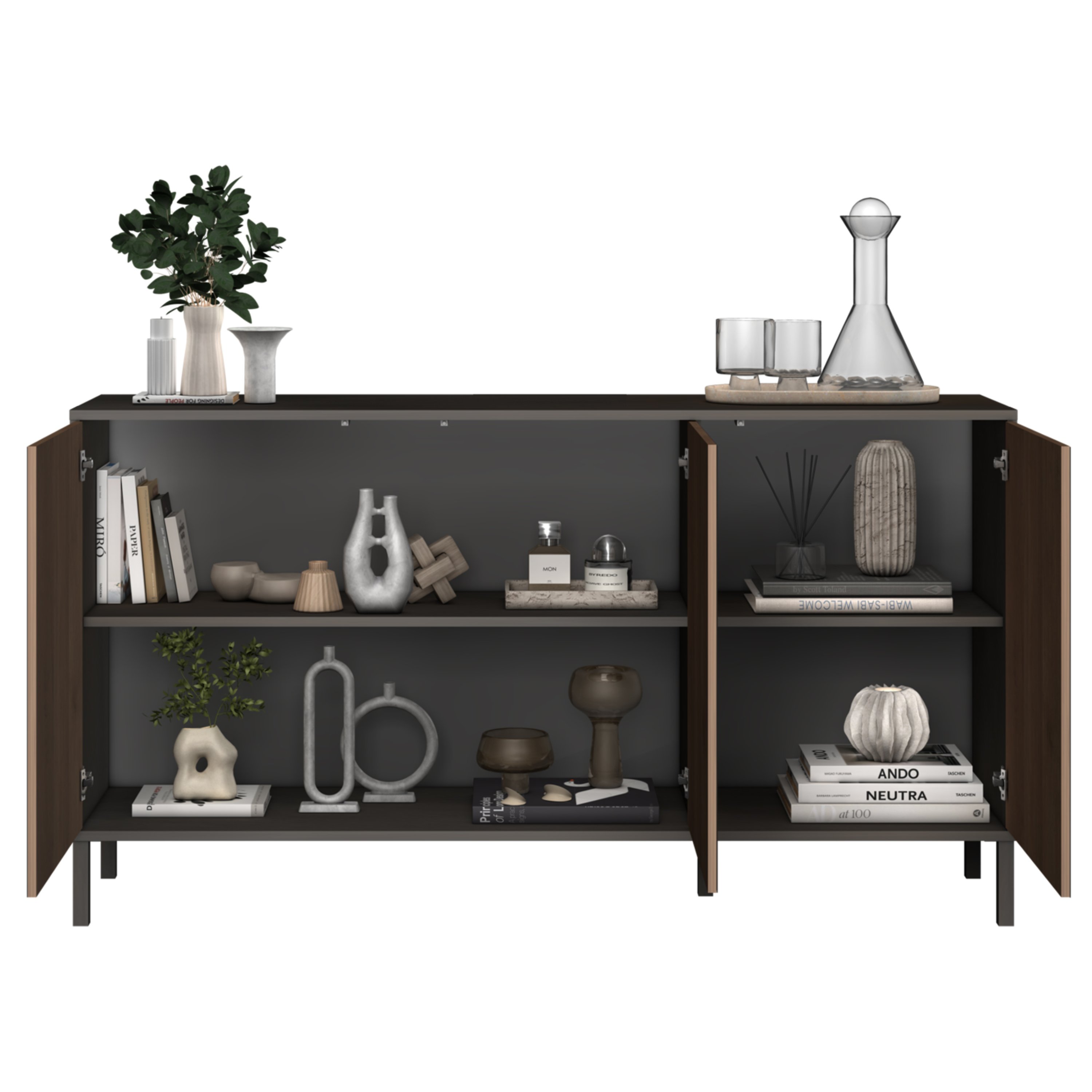 Za dvierkami komody CORTINA 3D sa nachádzajú 2 vložené police, ktoré napomôžu k prehľadnému uloženiu vašich vecí.