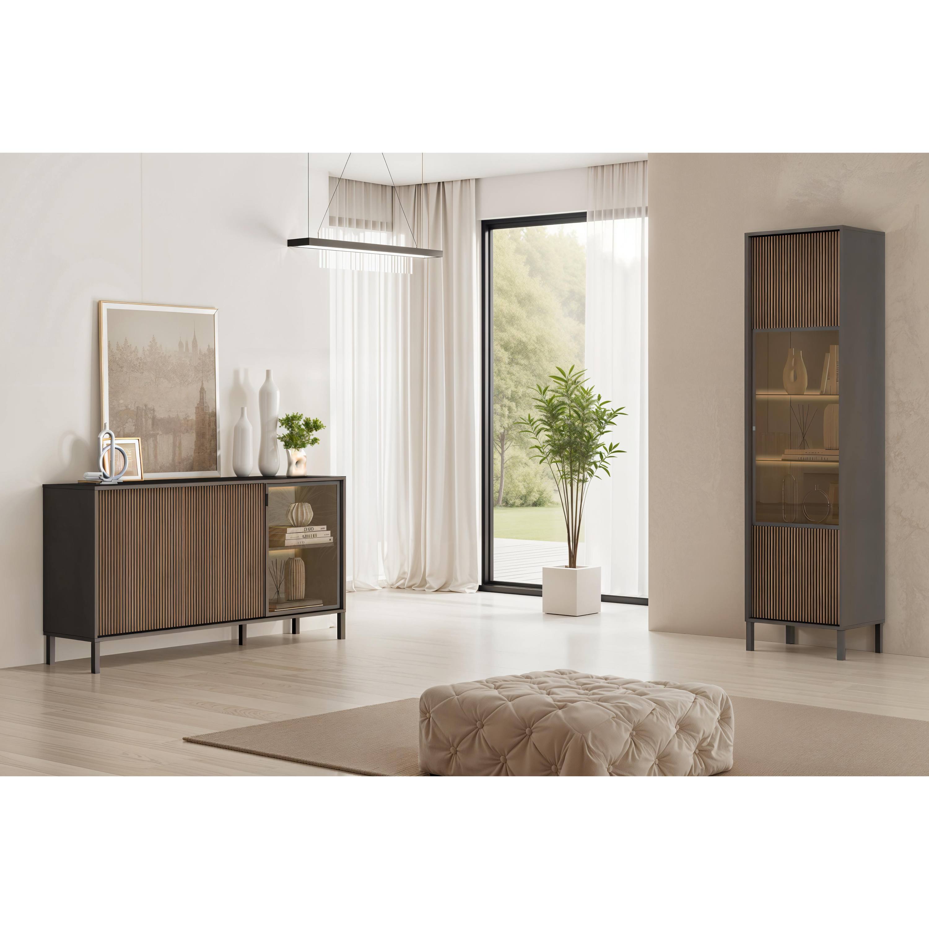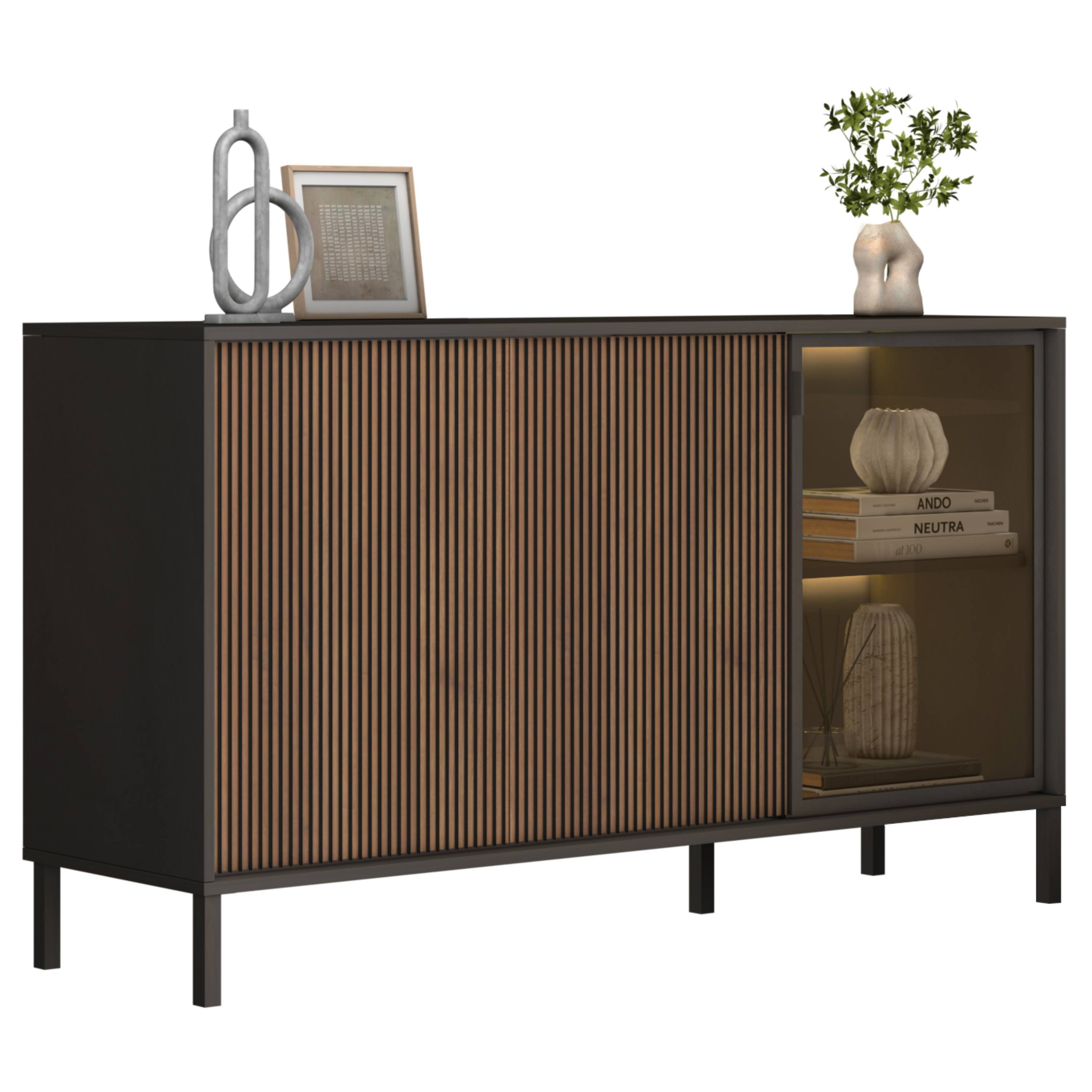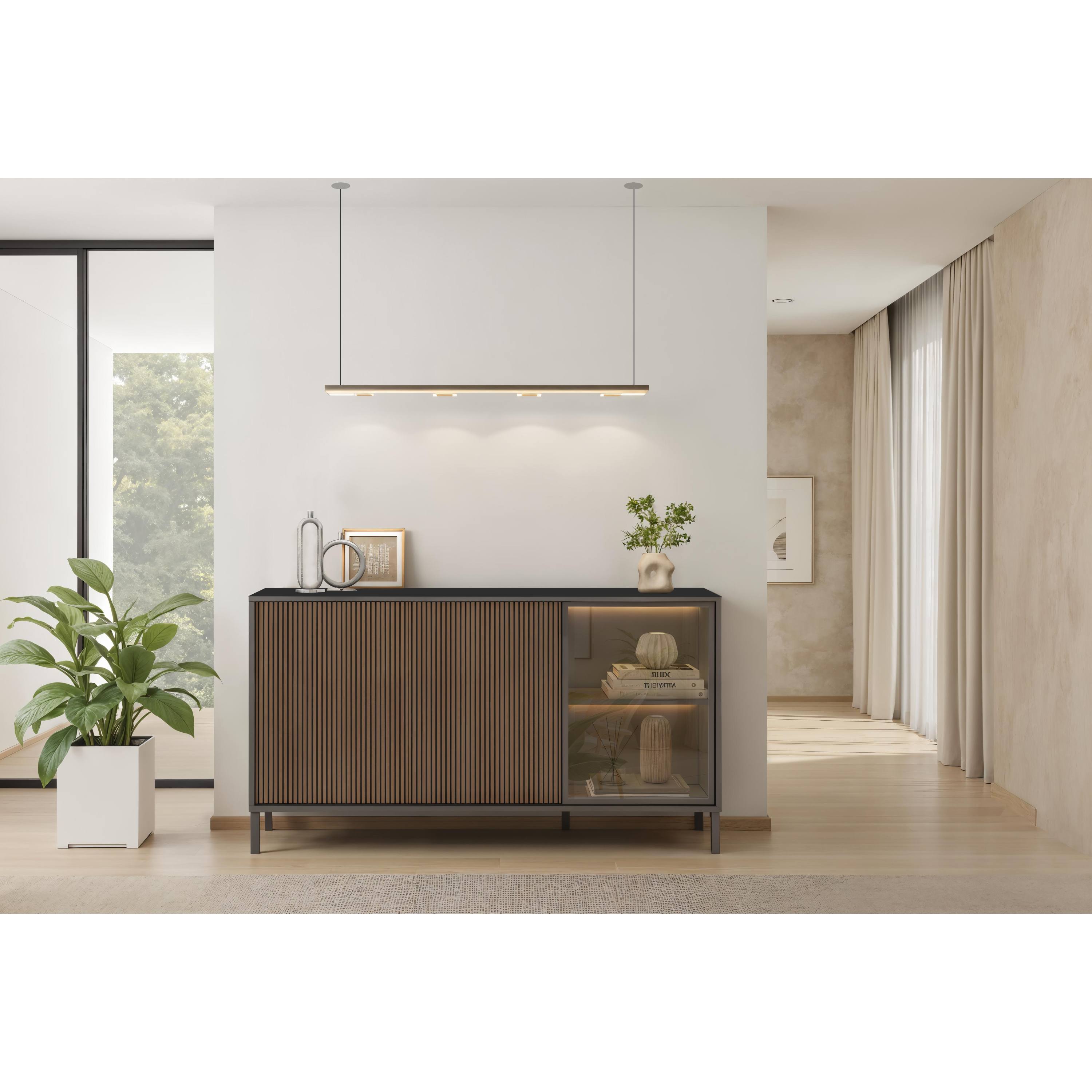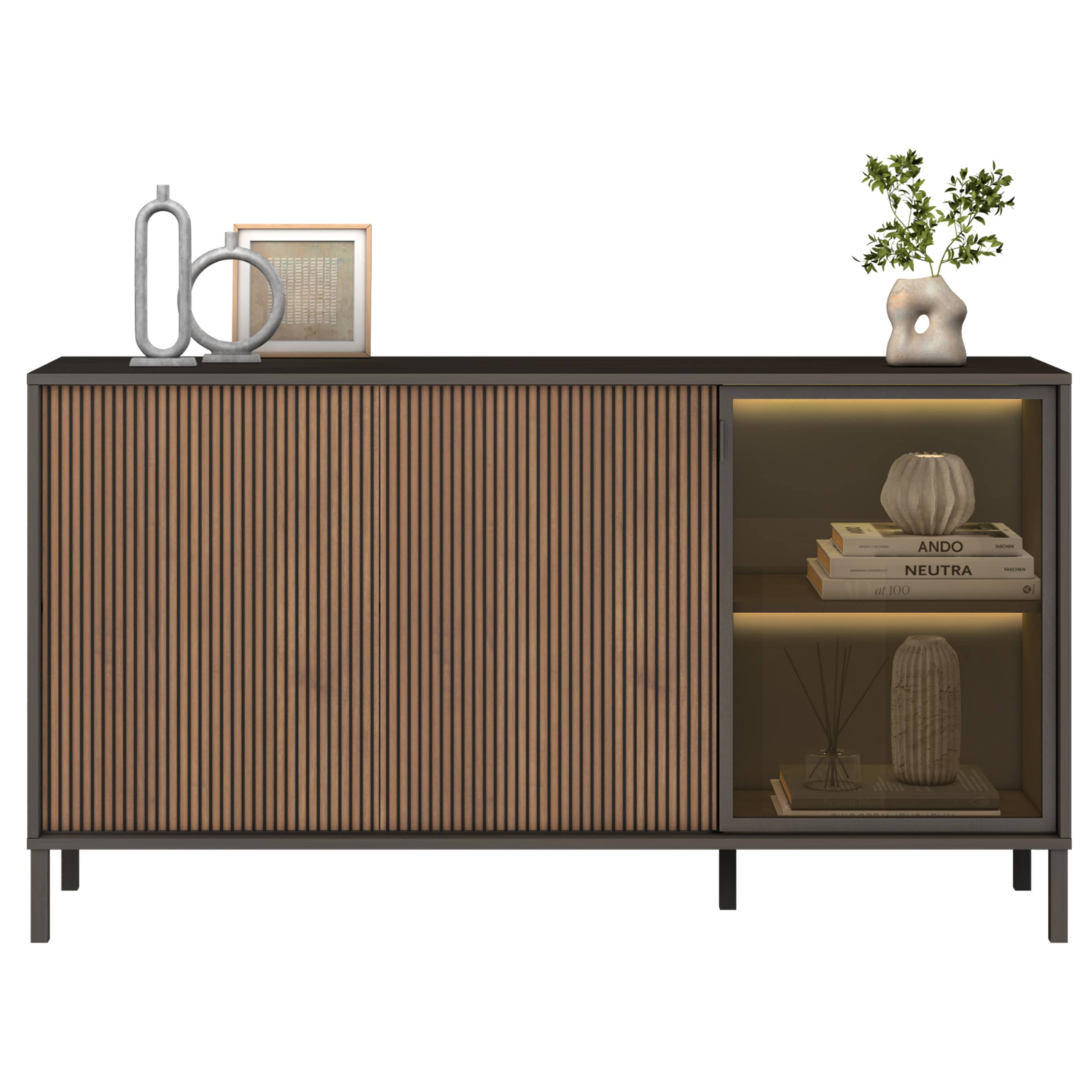 Za štandardnými a presklenými dvierkami komody CORTINA 3DS sa nachádzajú 2 vložené police, ktoré napomôžu k prehľadnému uloženiu vašich vecí. LED osvetlenie je súčasťou balenia.